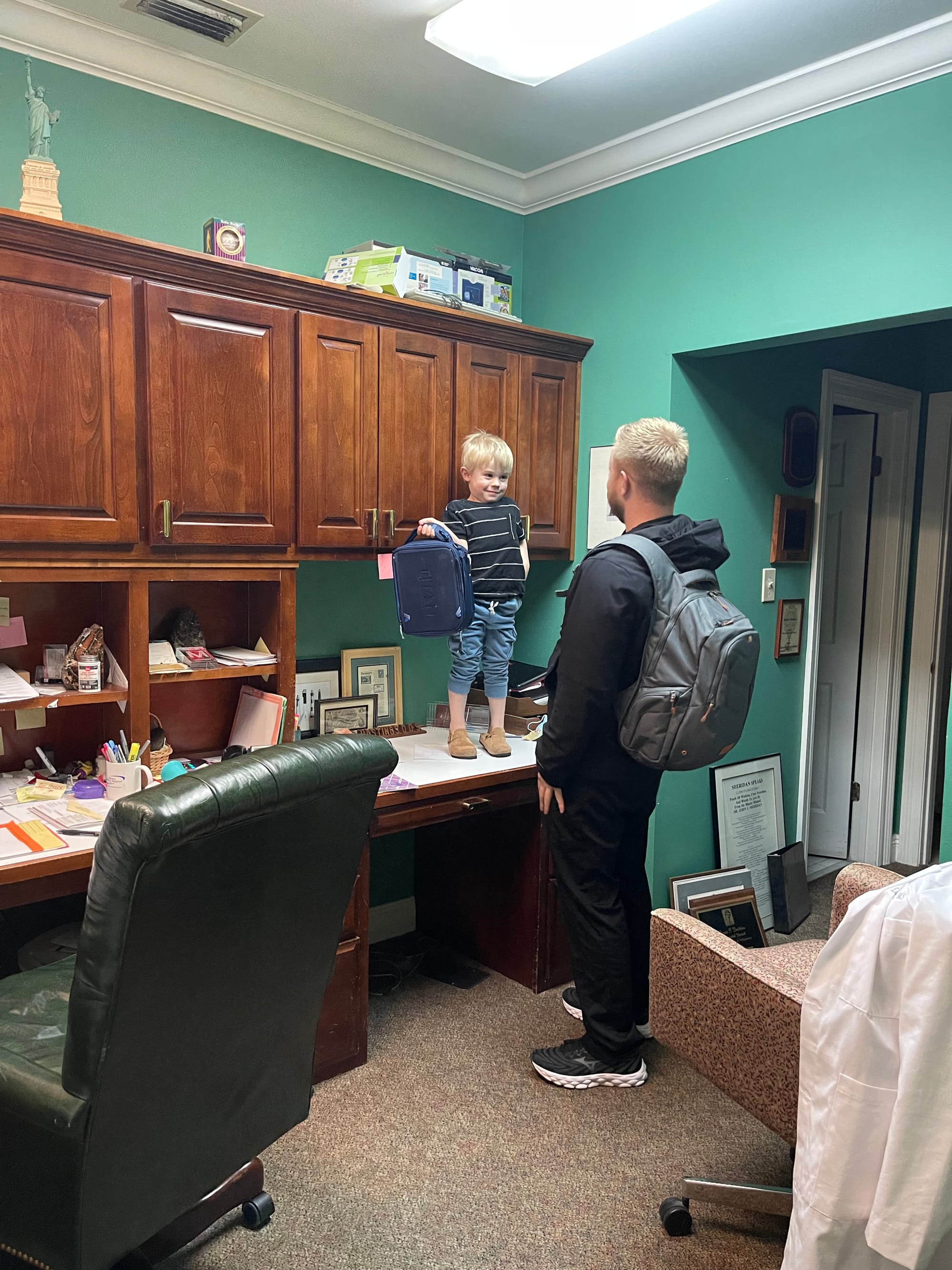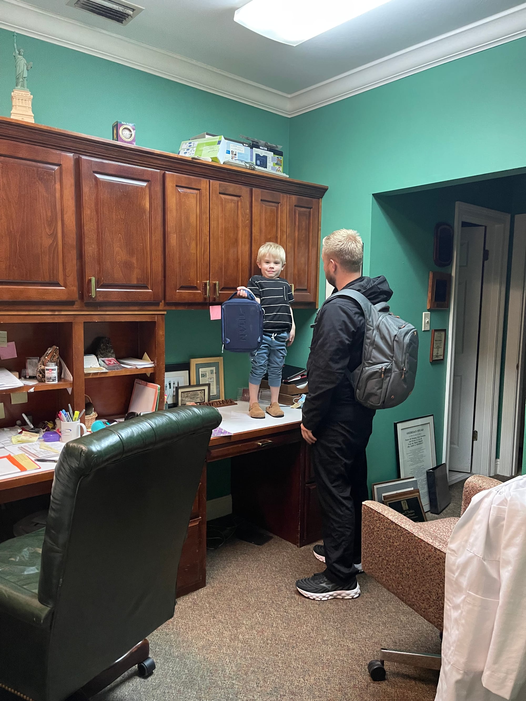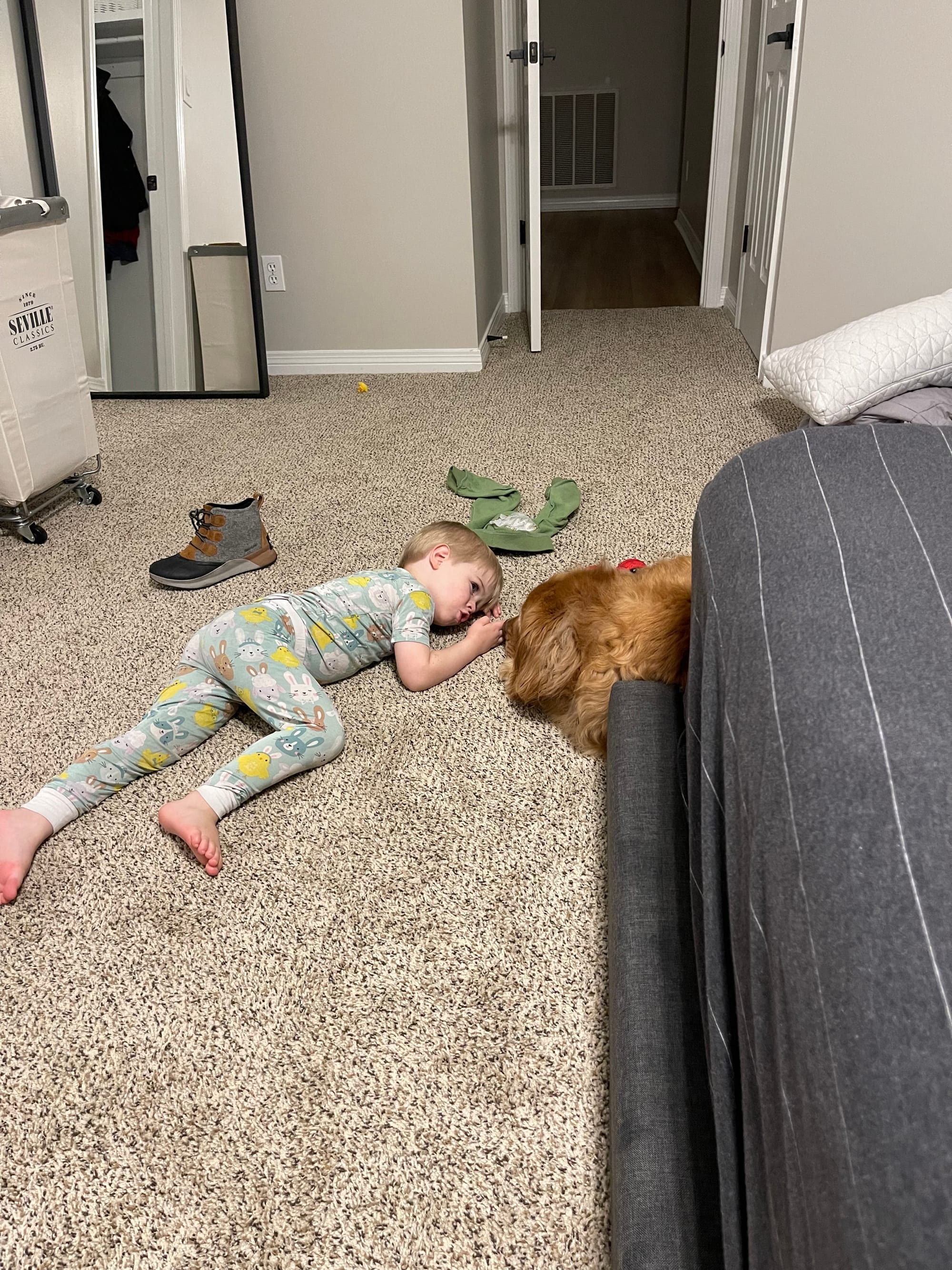 Logan had his first official day of work! Seems crazy we are finally in this stage of life. Ben missed him all day long and insisted on waiting outside for his arrival!