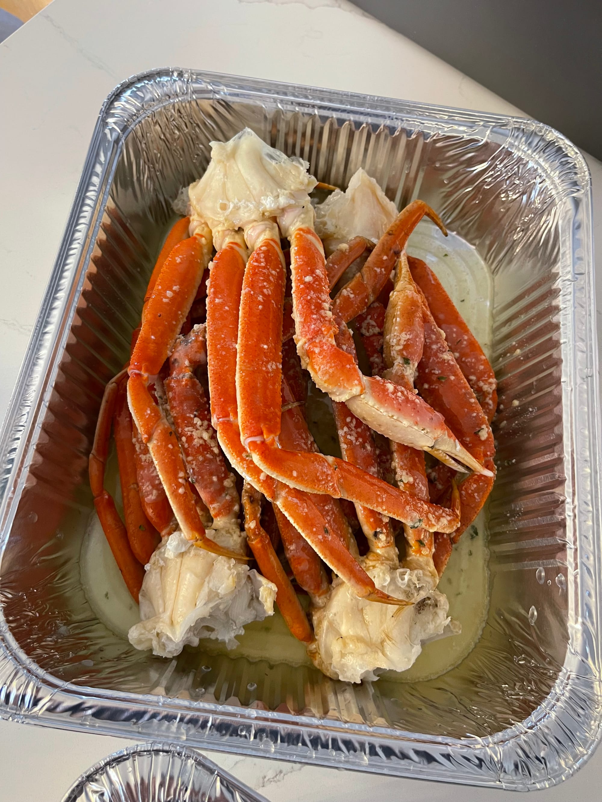 We took a break, came inside and ate some crab legs… and the snow just kept coming!