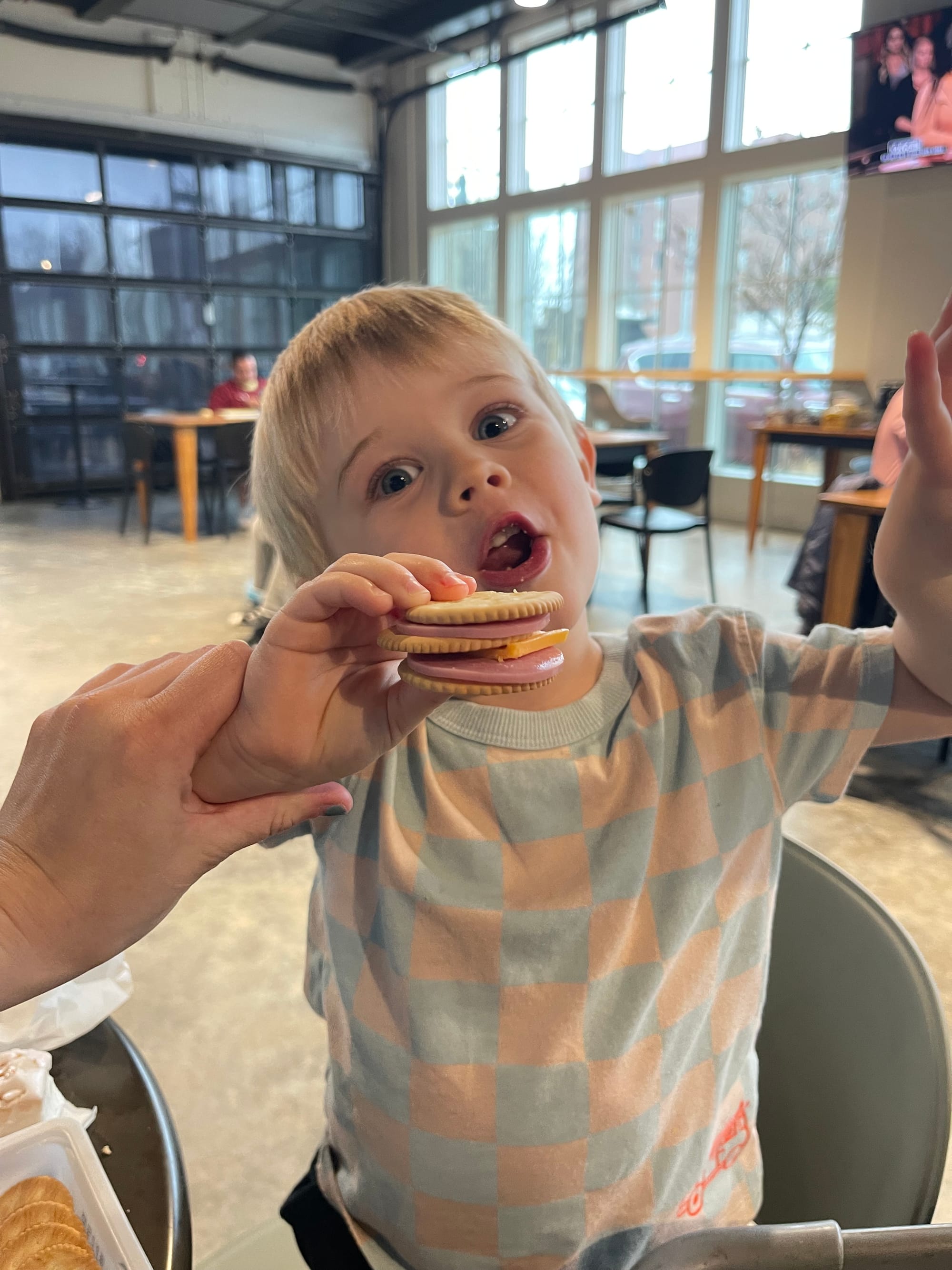 We ended January with a trip to Greer’s St. Louis market. I saw it while trying out the new bakery. So good and fun! Ben enjoying a lunchable. :)