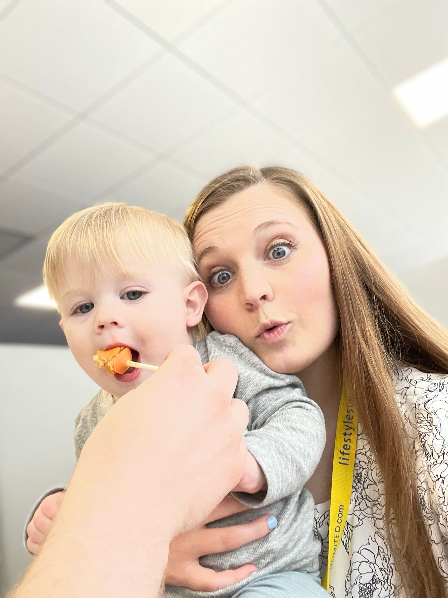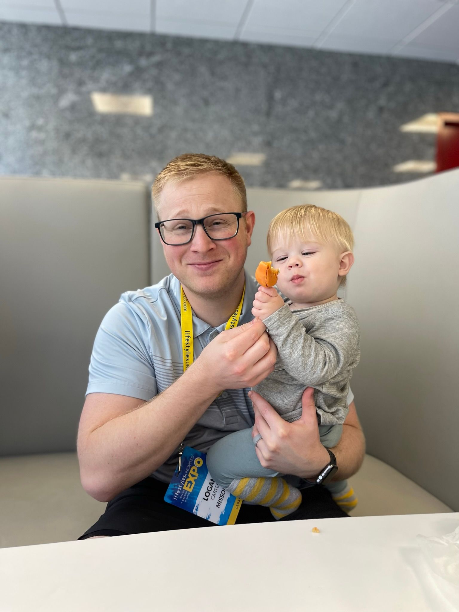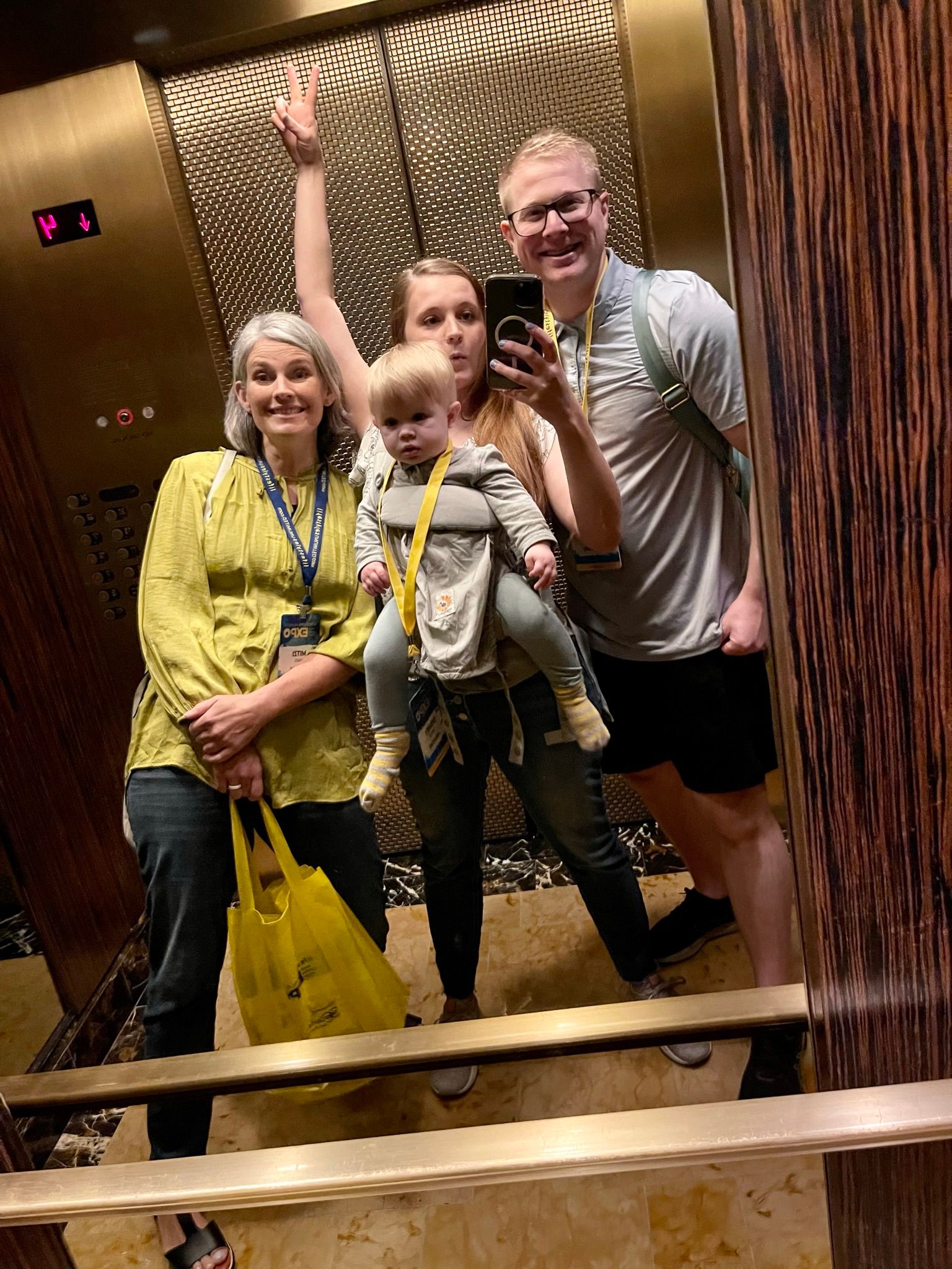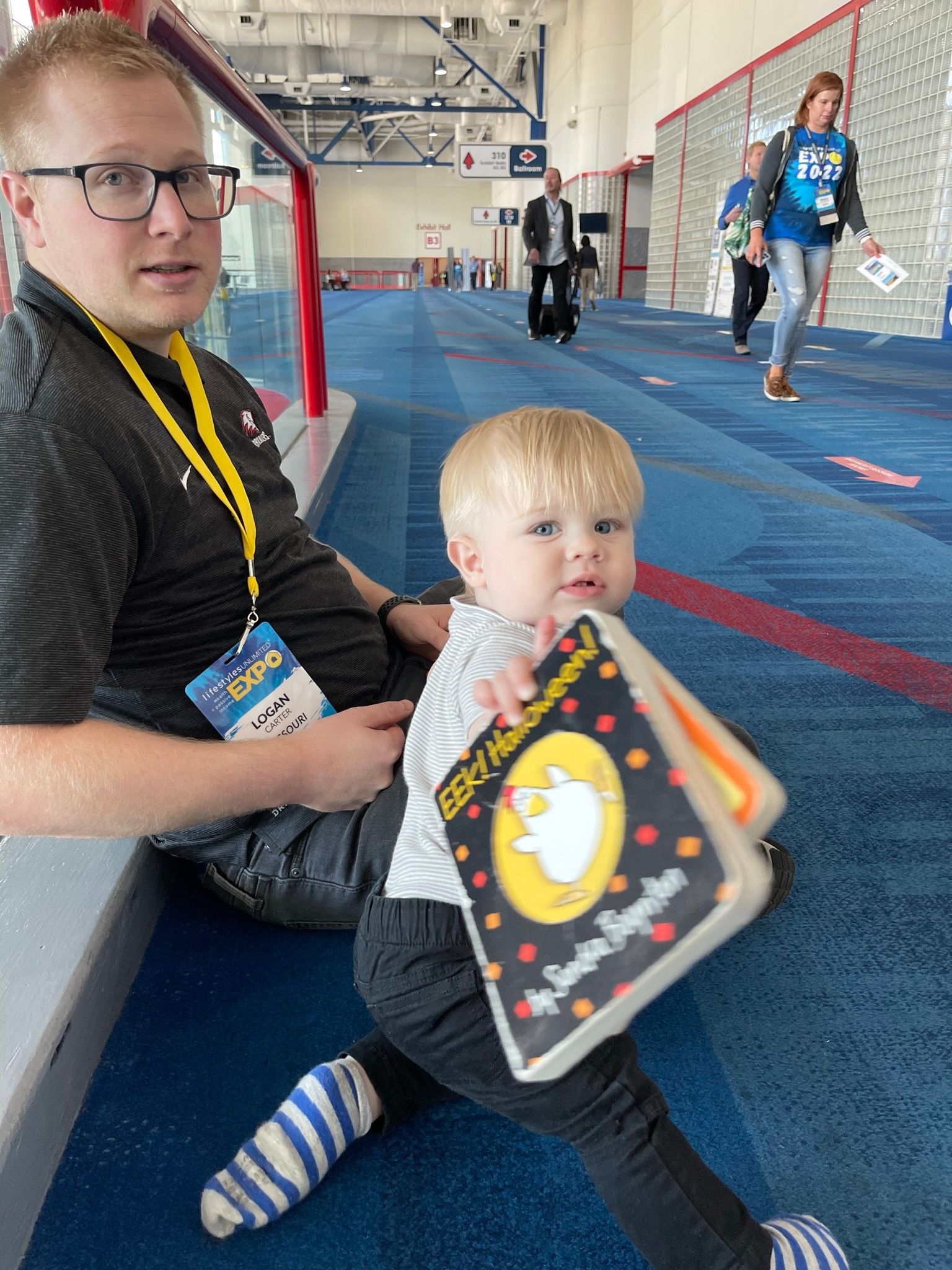 Friday we ate some breakfast, went to the pool, and grabbed some lunch before Damon's Quest class. Benson doesn't care to sit still, so Logan and I roamed the halls of the convention center and enjoyed some Starbucks cake pops. Benson fell asleep and we enjoyed some Starbucks and conversation in the hotel lobby. When he woke up we checked out the hotel lobby store and he found this puppet, he loves his puppy!