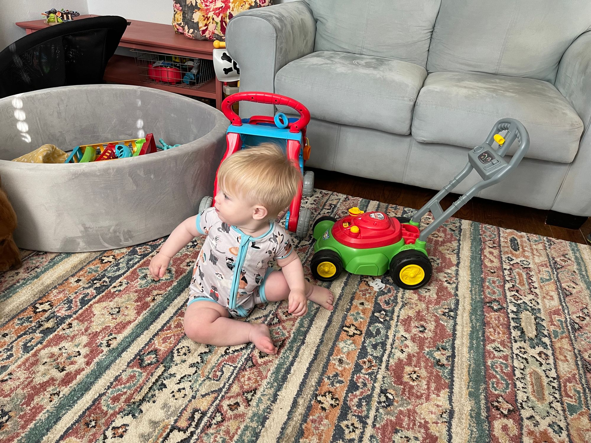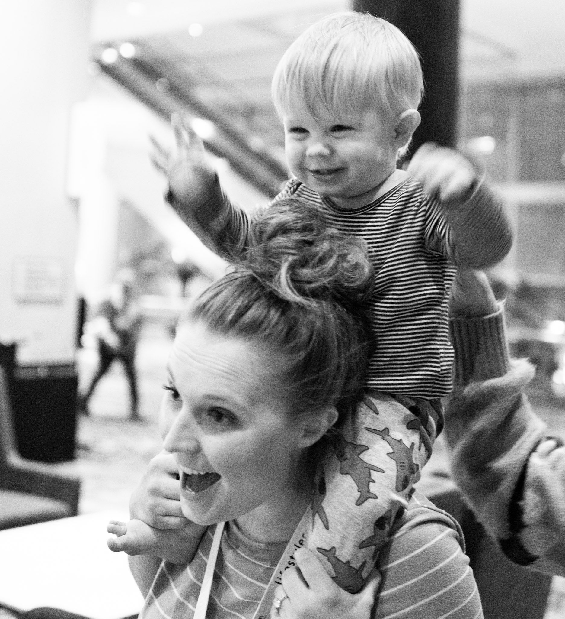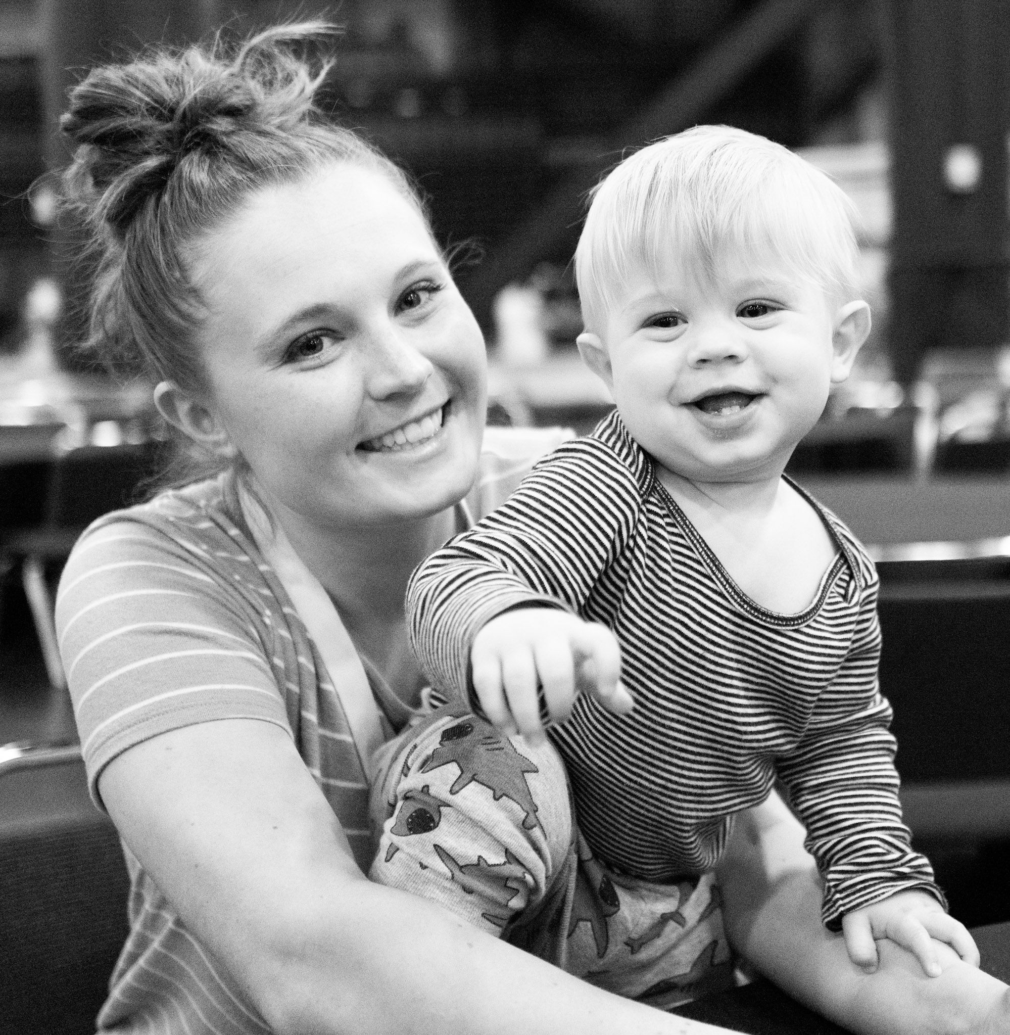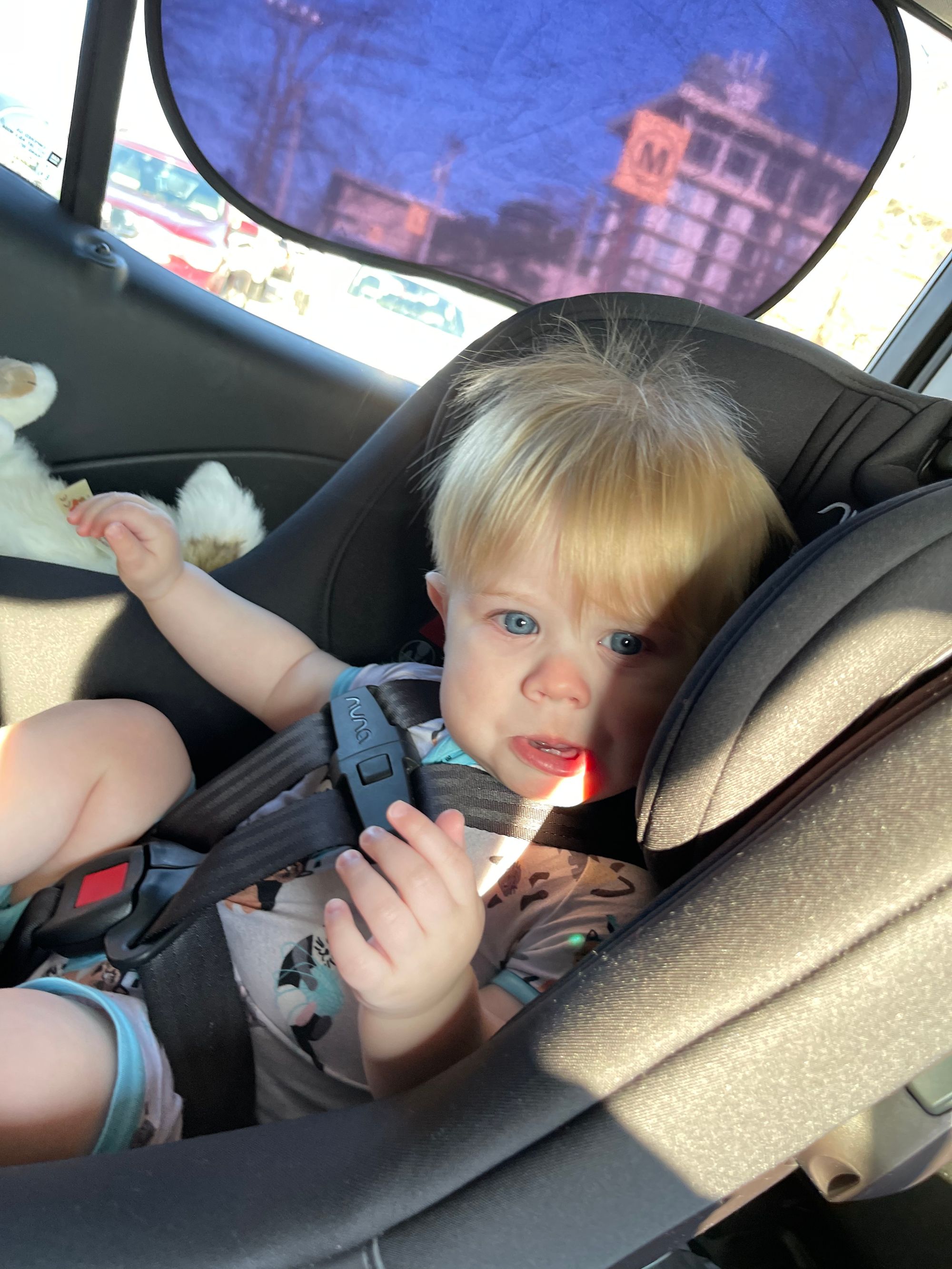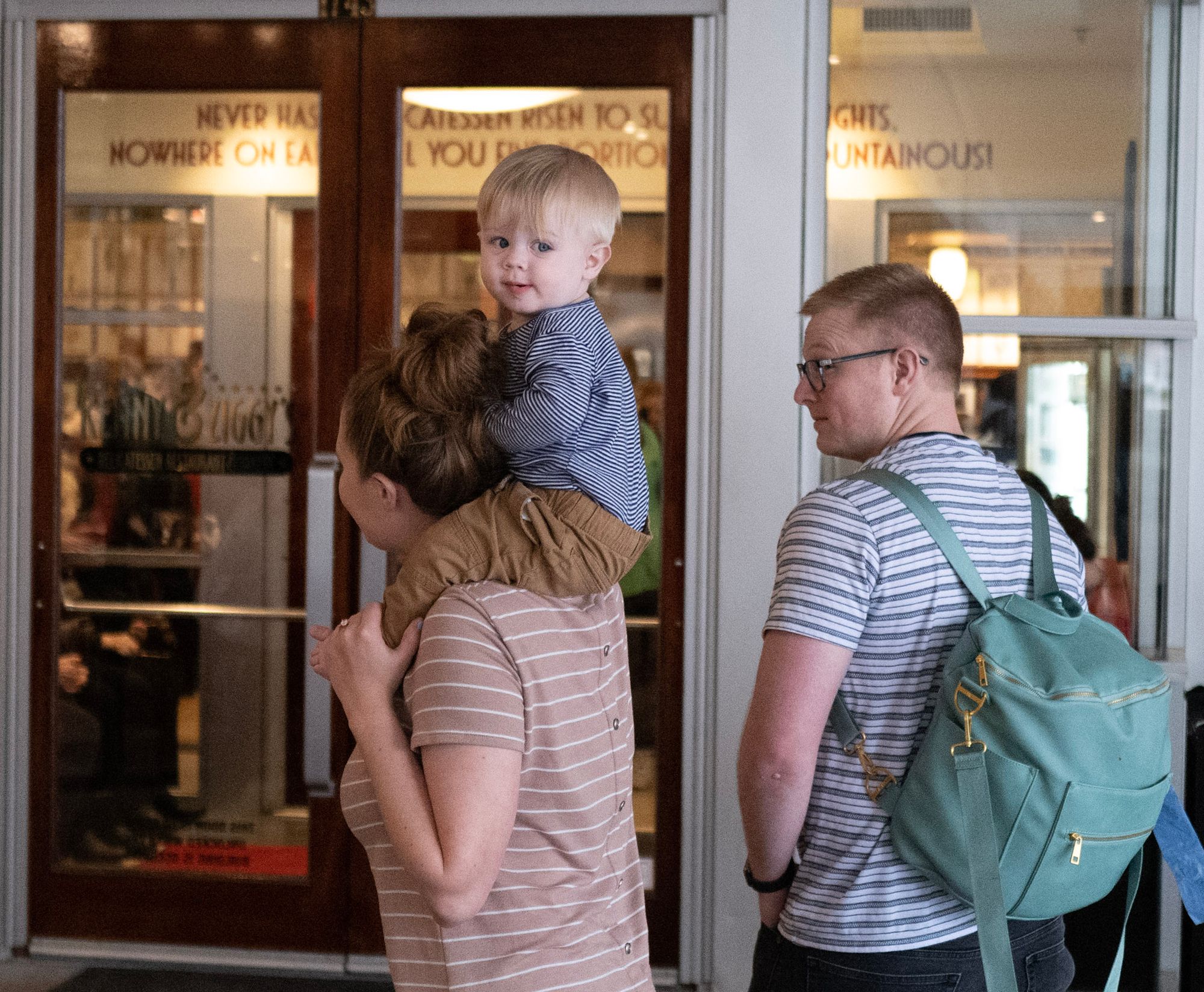 Thursday was a free day! We started the day off with some breakfast and a trip to the pool! Oh does this child love to swim. Emily and Nechemia were in town so we made plans to meet them at a Jewish Deli called Kenny + Ziggy's. We had some time to kill before lunch so we strolled through a few nearby stores. Benson rides the saddle like he knows what he is doing.