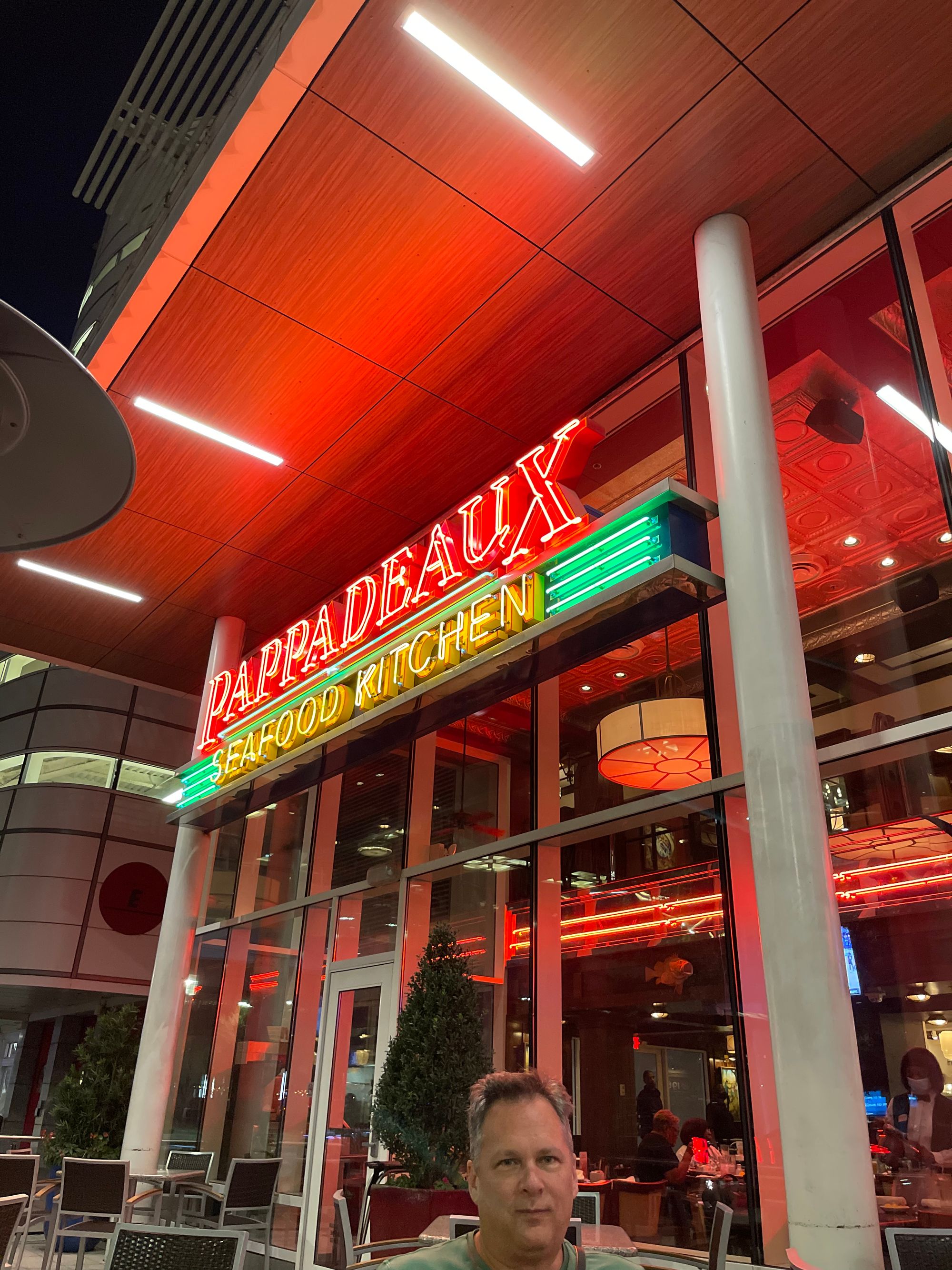 We met back up and decided on dinner at Pappadeaux's. There was about a 45-minute wait, so we played and chatted until they were ready. The service was slow but the food was amazing!! Great company too! Benny ended the night snoozing as we walked back to the hotel.