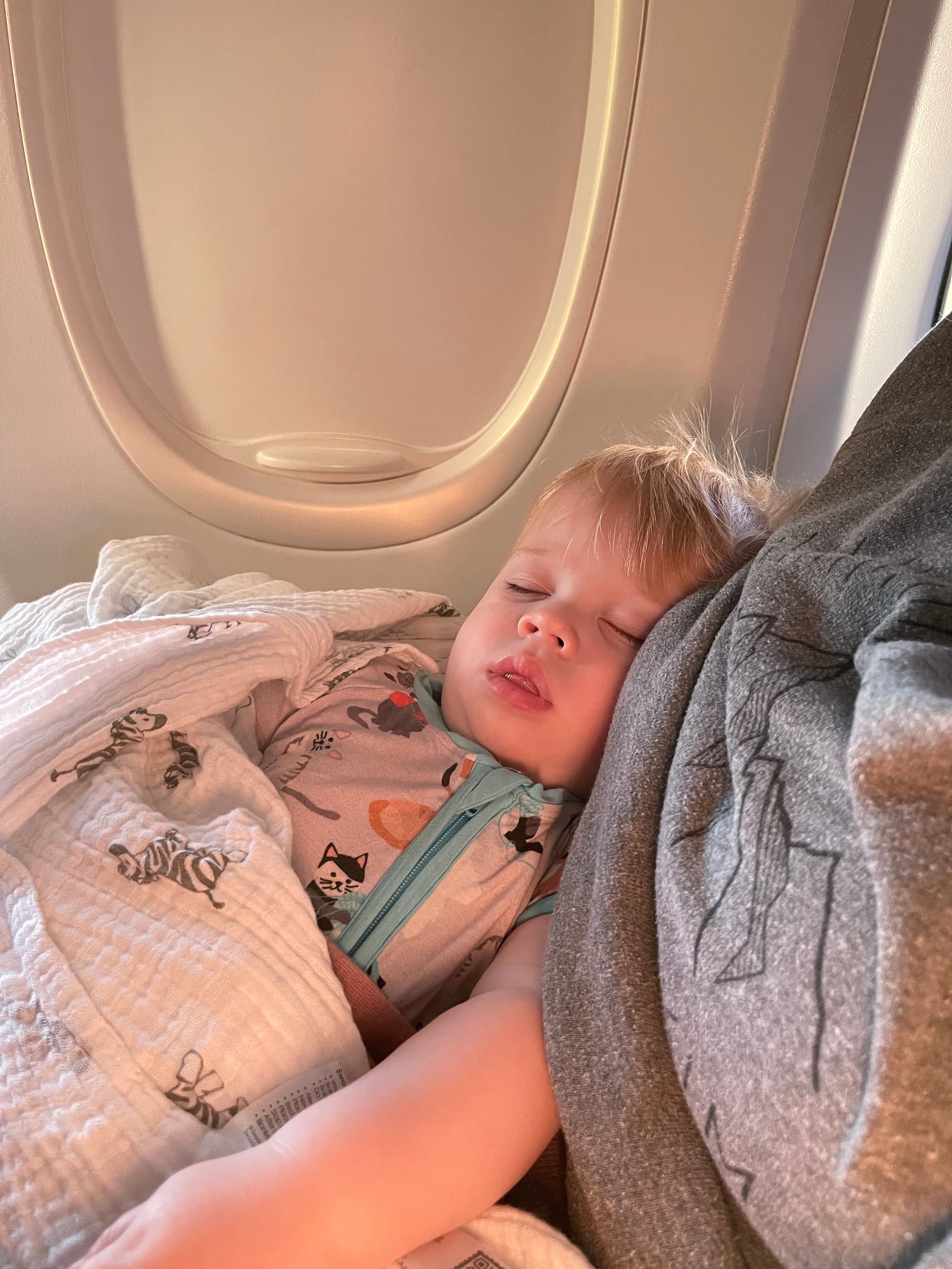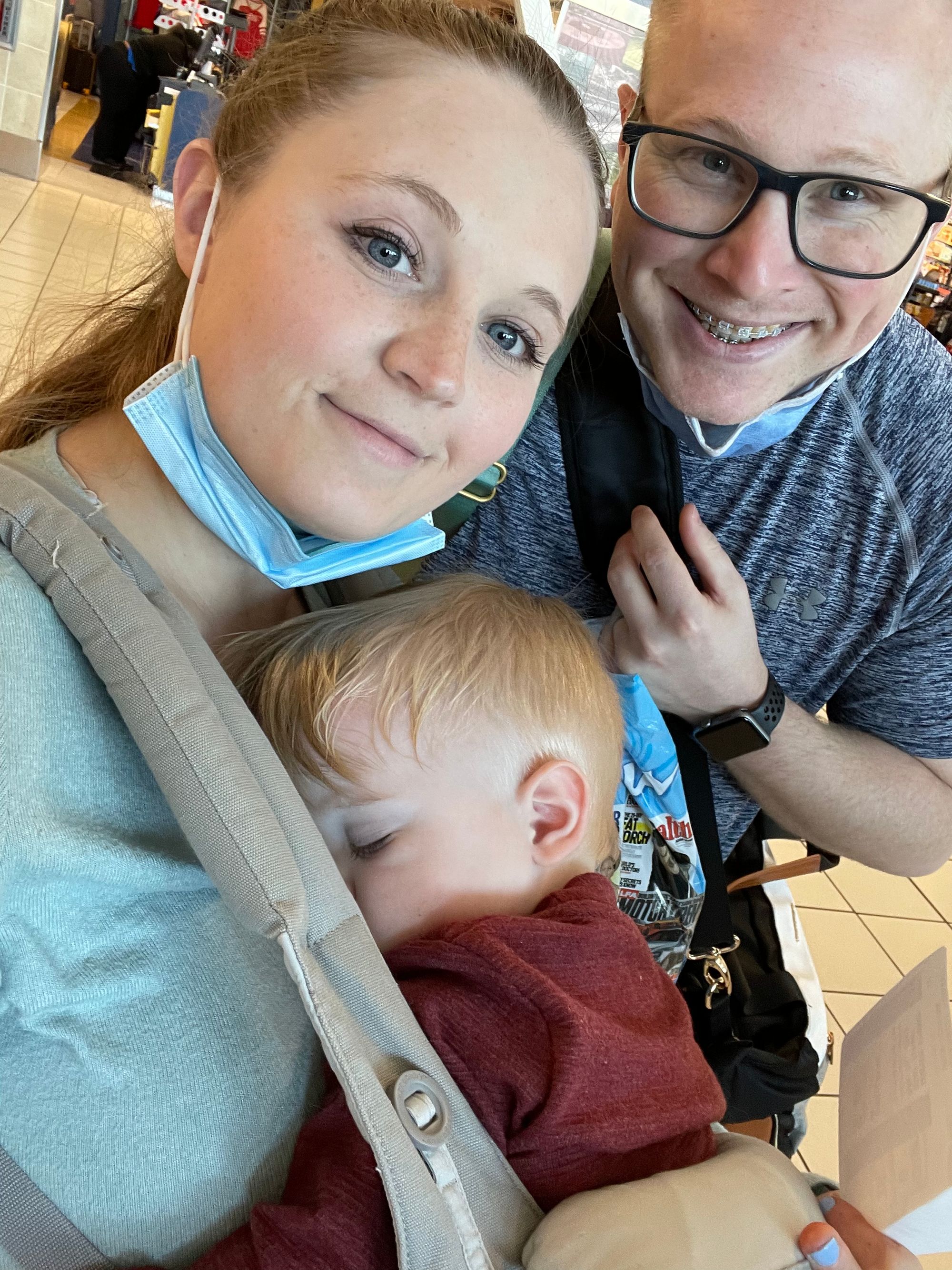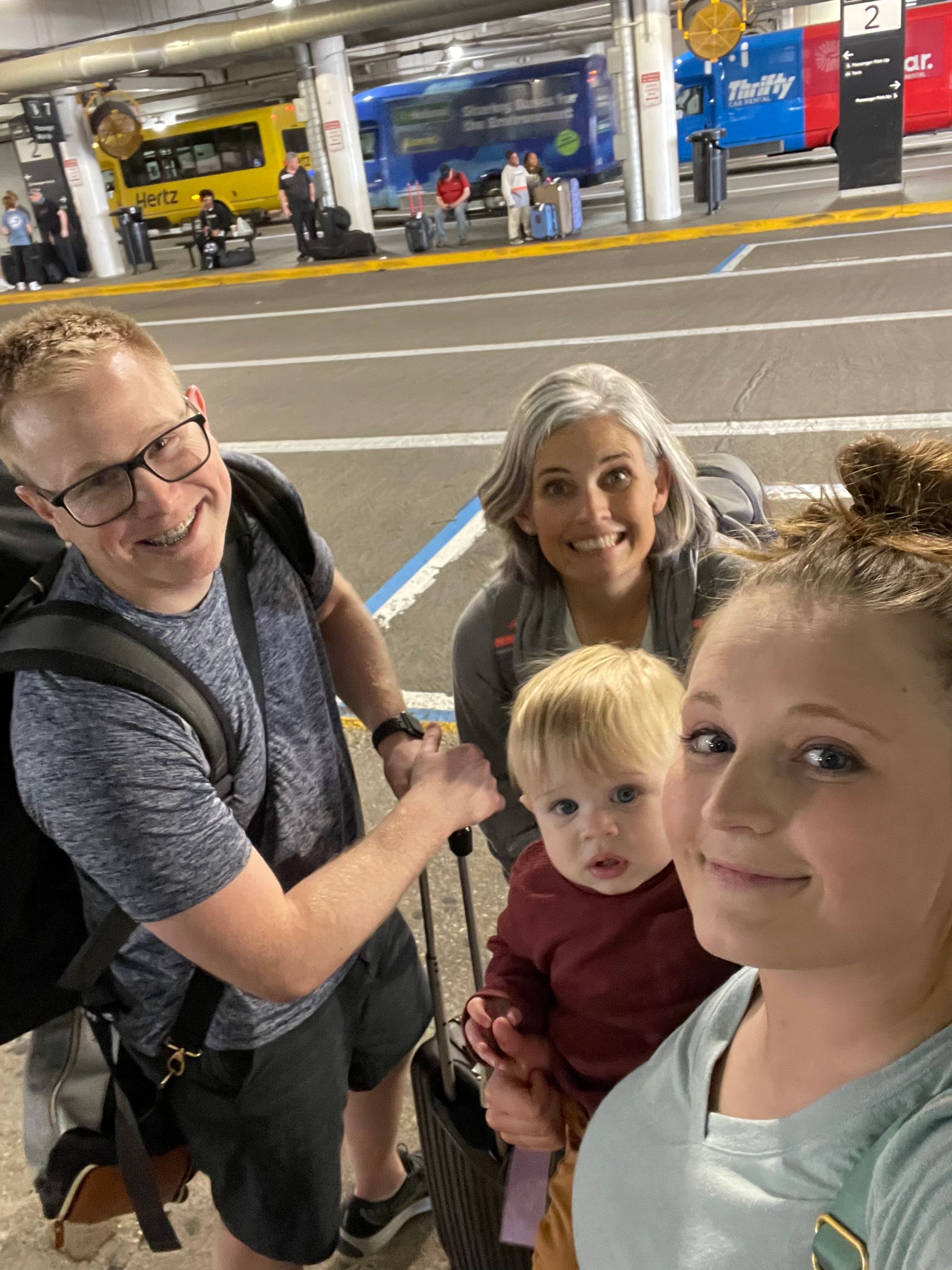 We made it to baggage claim and met some fellow Lifestyles Members from St. Louis. We were chatting with them and waiting for our bags to come out. I saw one bag, we went over and grabbed it when suddenly the cops are trying to evacuate everyone. Logan and I are looking at each other trying to figure out what is going on. I see our other bags coming and I tell Logan go grab those! Right before we are about to get kicked out I see the carseat bag and made Logan run passed the cops to grab it. Sorry Log!