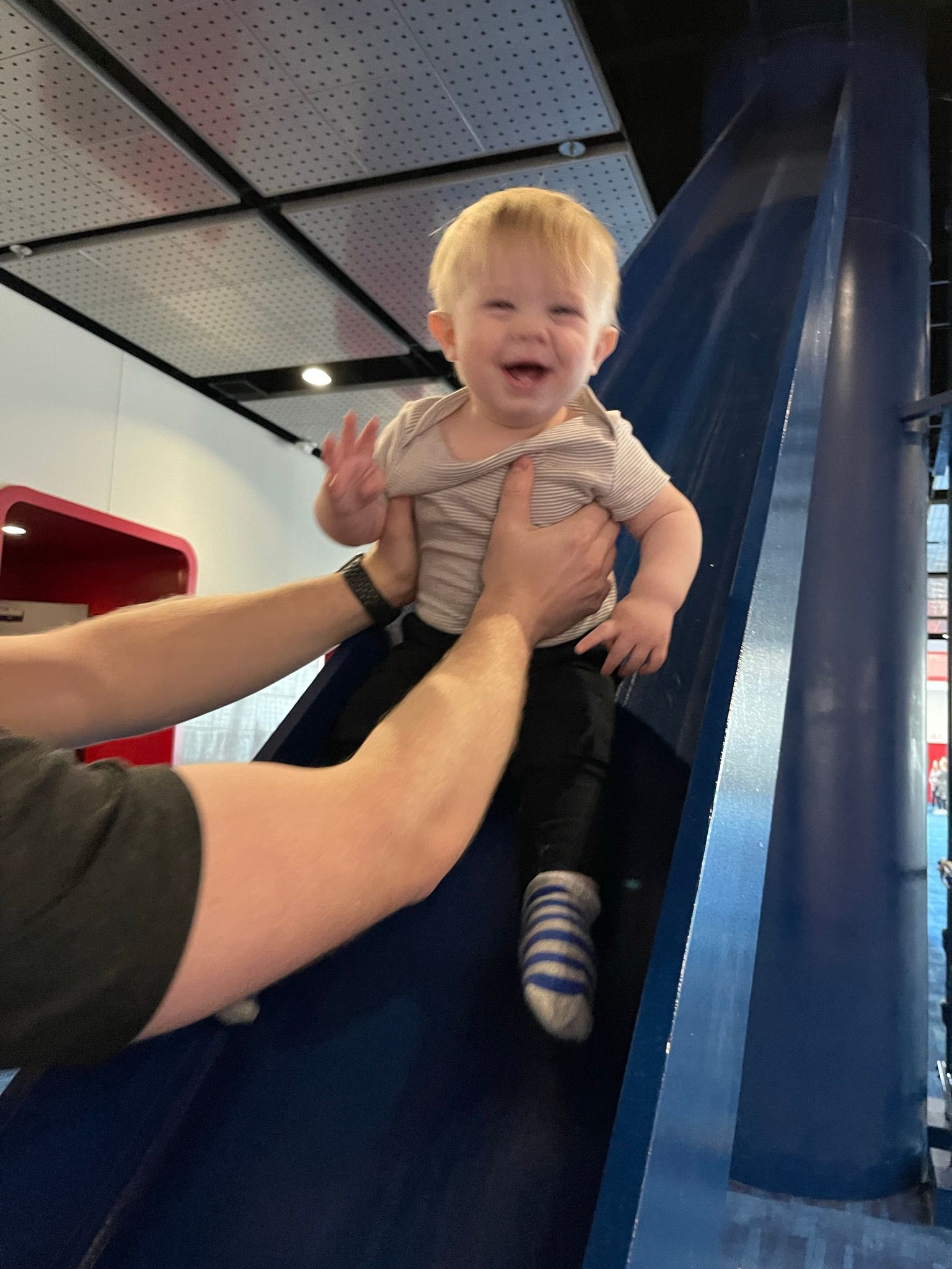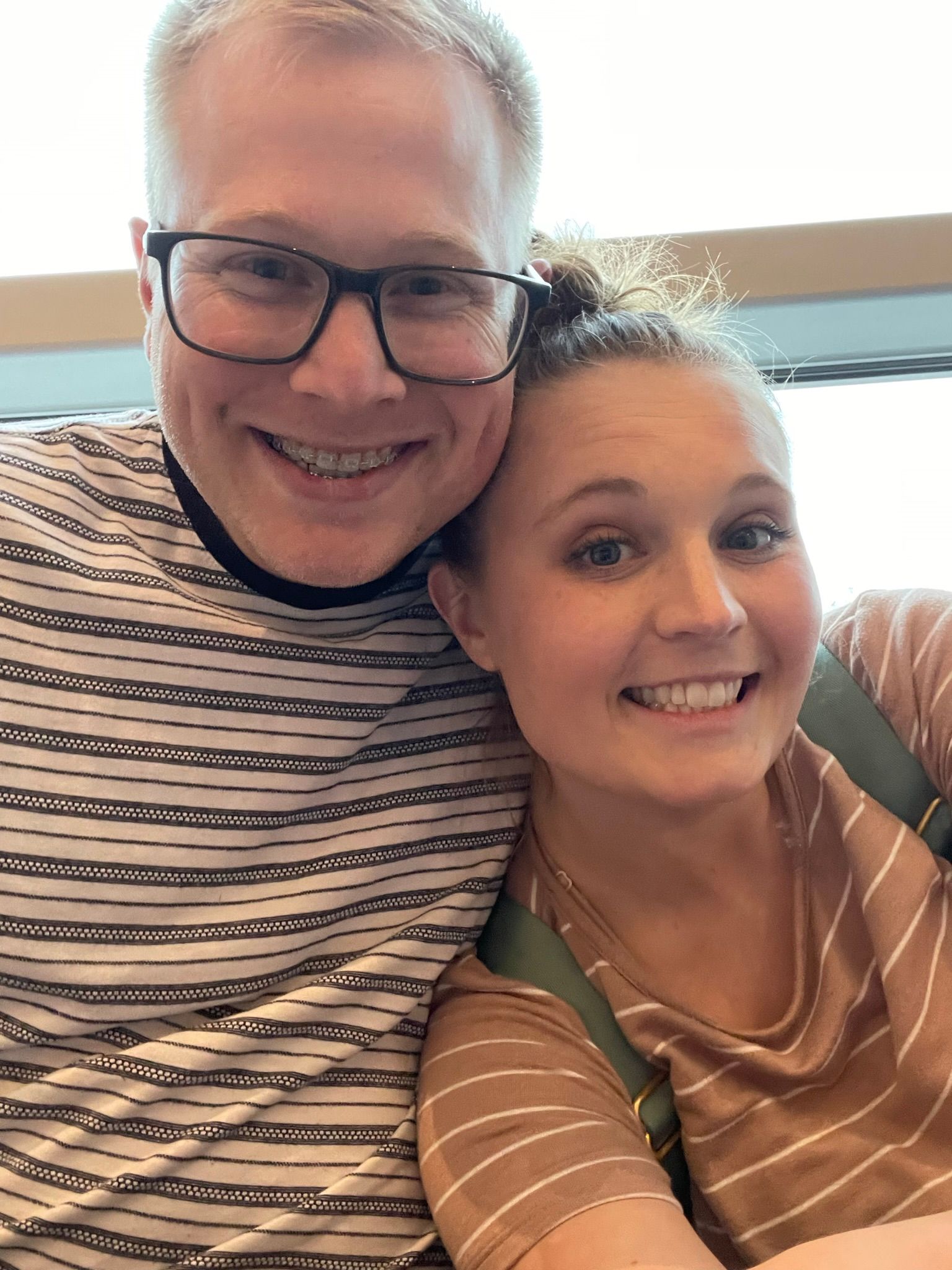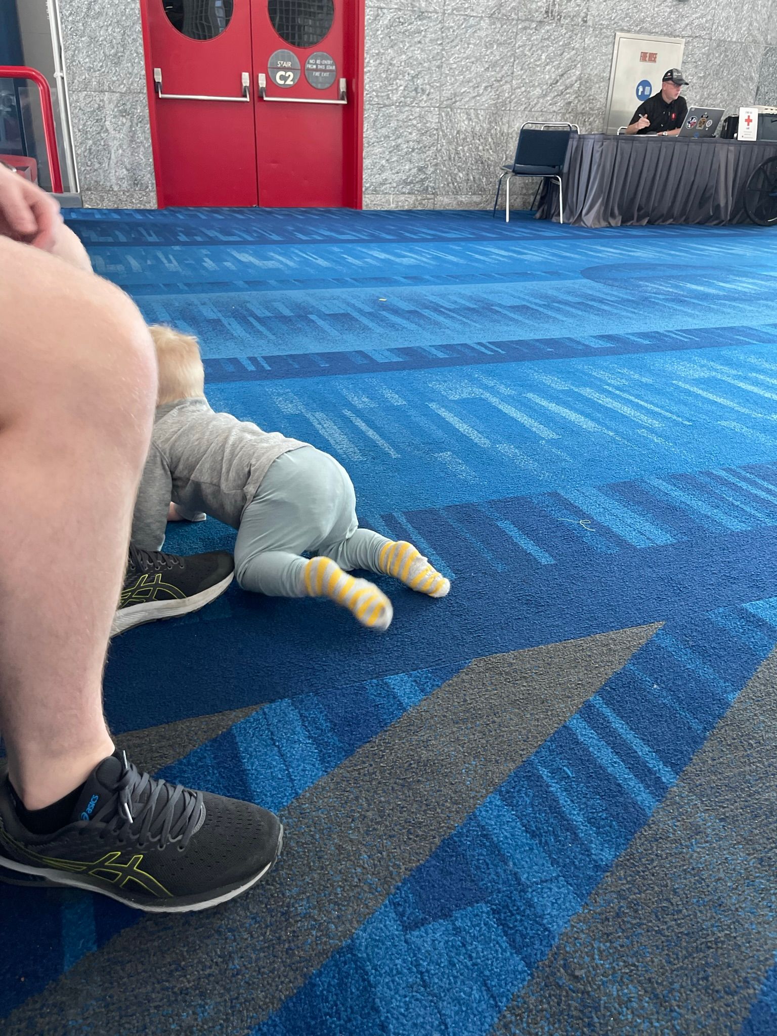 We made it to baggage claim and met some fellow Lifestyles Members from St. Louis. We were chatting with them and waiting for our bags to come out. I saw one bag, we went over and grabbed it when suddenly the cops are trying to evacuate everyone. Logan and I are looking at each other trying to figure out what is going on. I see our other bags coming and I tell Logan go grab those! Right before we are about to get kicked out I see the carseat bag and made Logan run passed the cops to grab it. Sorry Log!