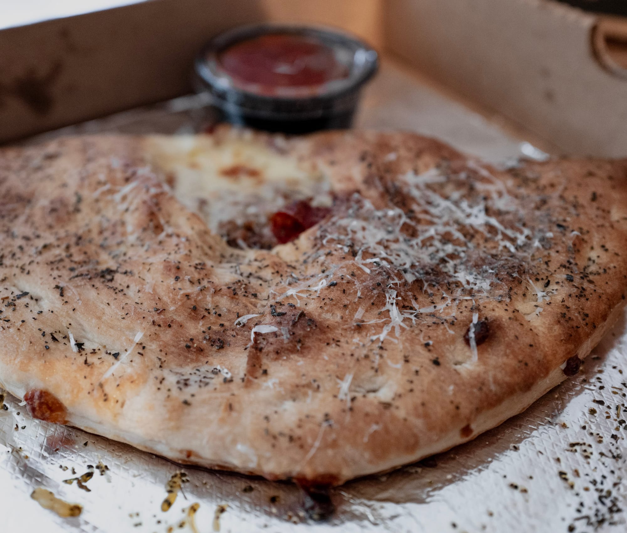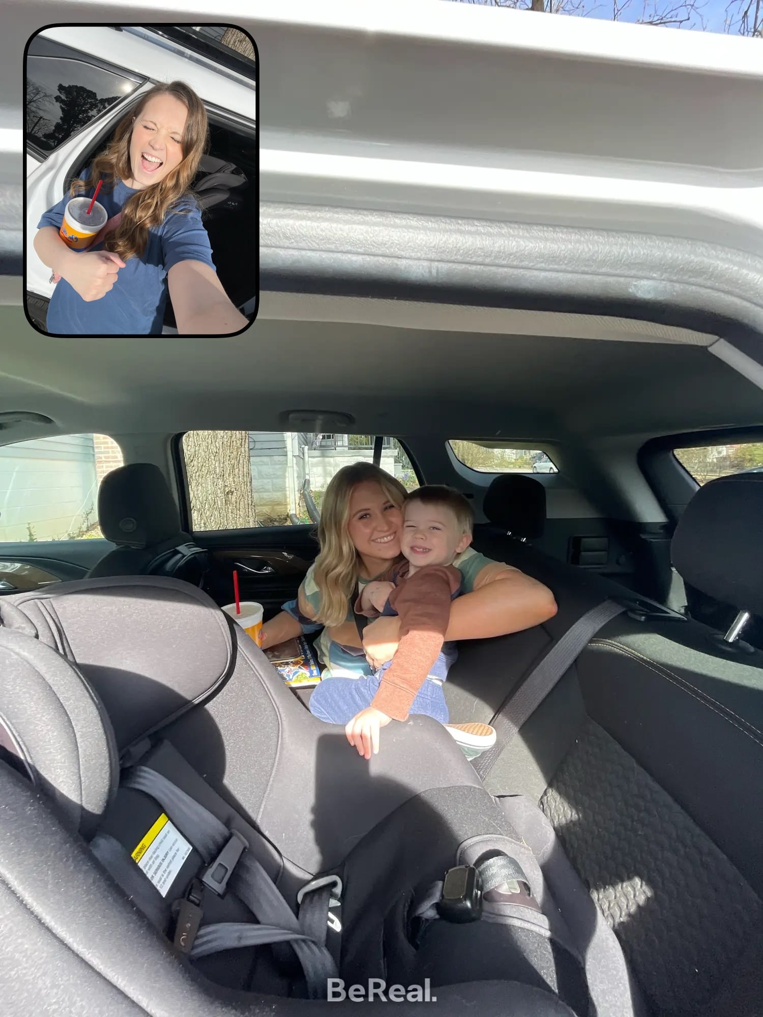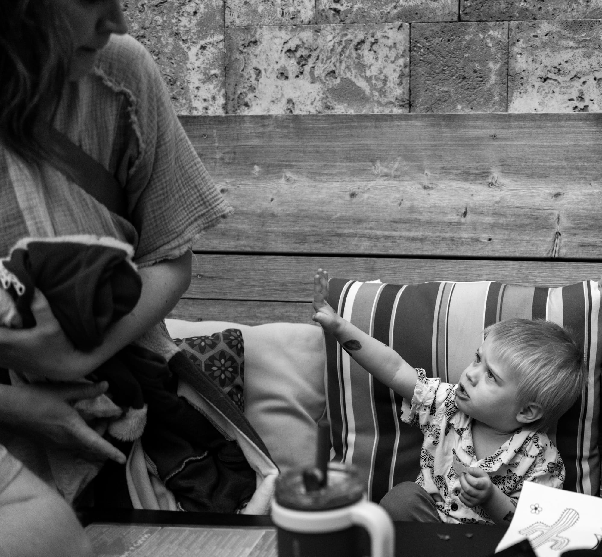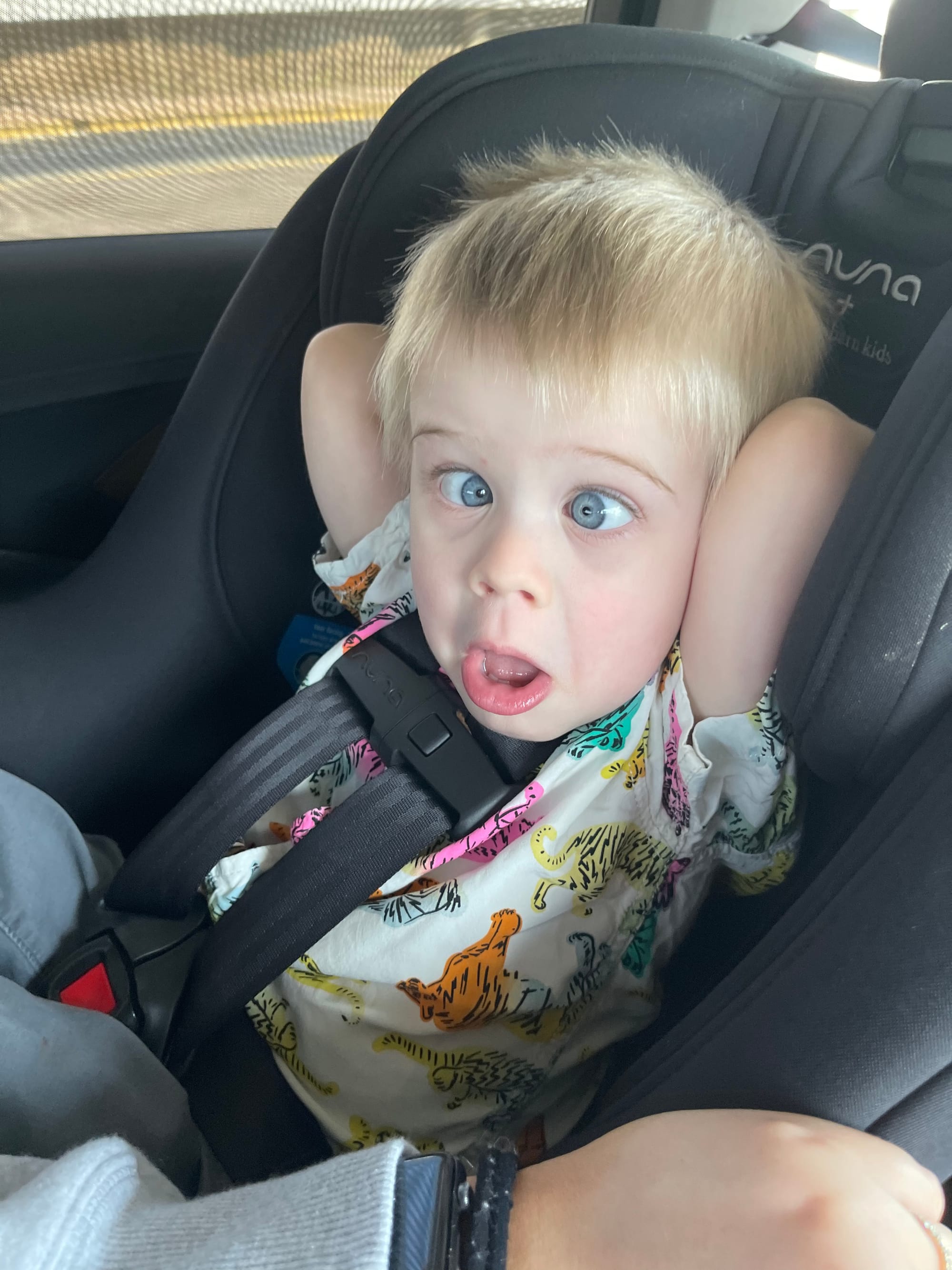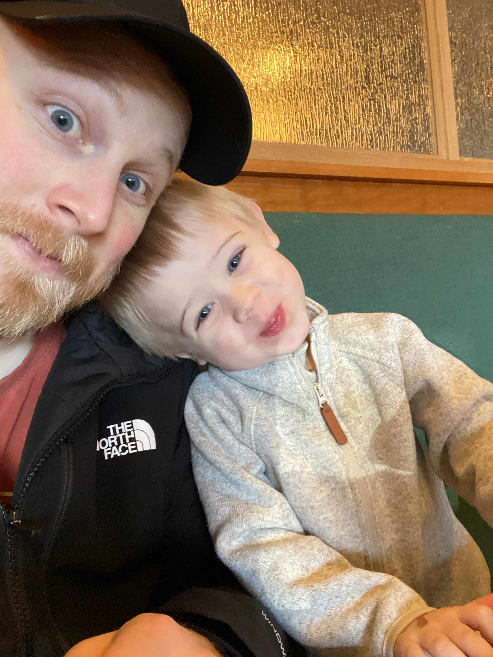 We were sat in the only not covered portion of the patio. A storm blew in and thankfully our waiter moved us. Logan and I were still getting sprinkled on, but our friend fell fast asleep under his beanie.