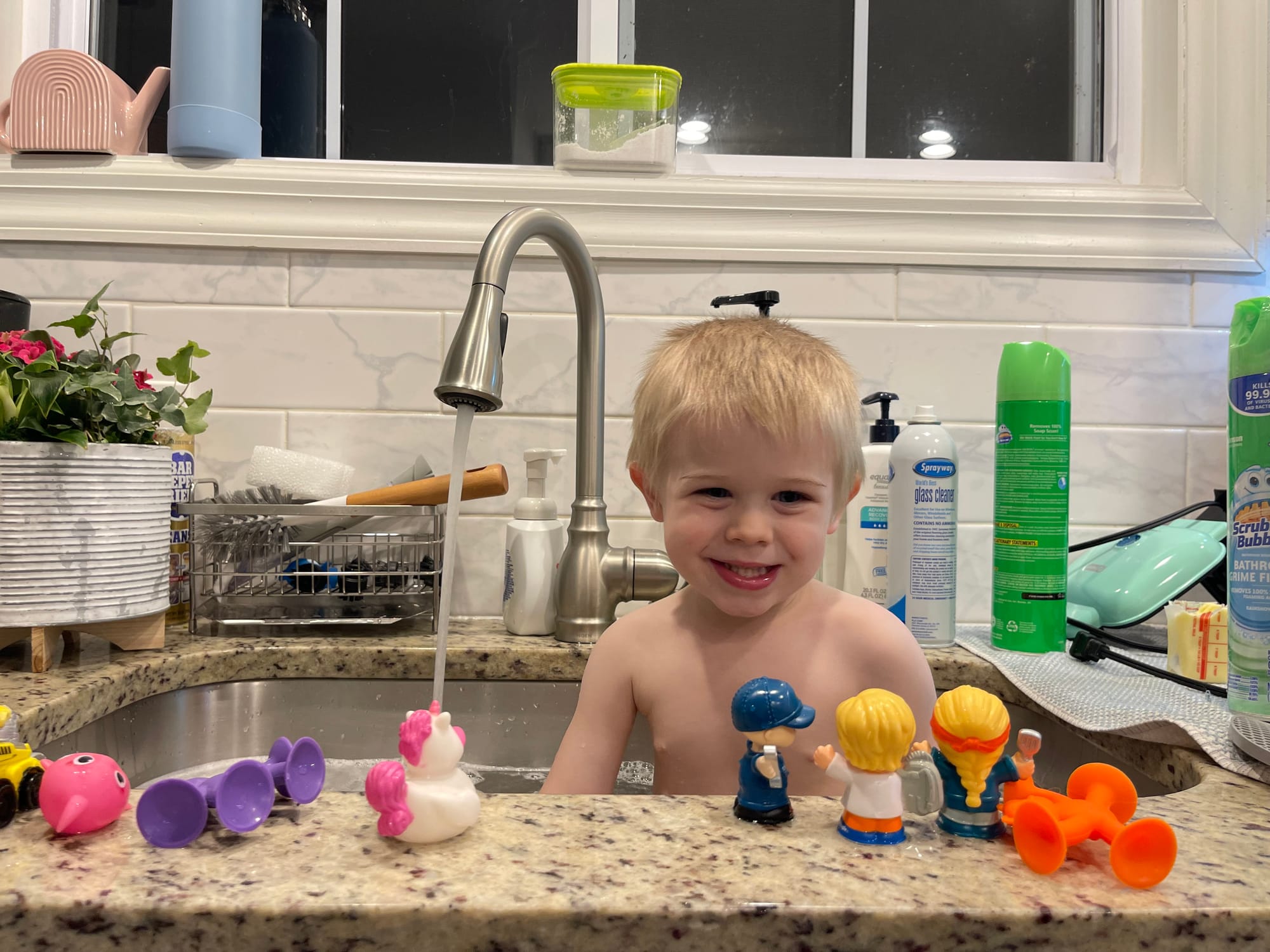 Benny couldn’t get enough of his water cannon. We tried to go swimming again, but it was closed! :( So we hung out in the hotel while Benny put on a show for us.