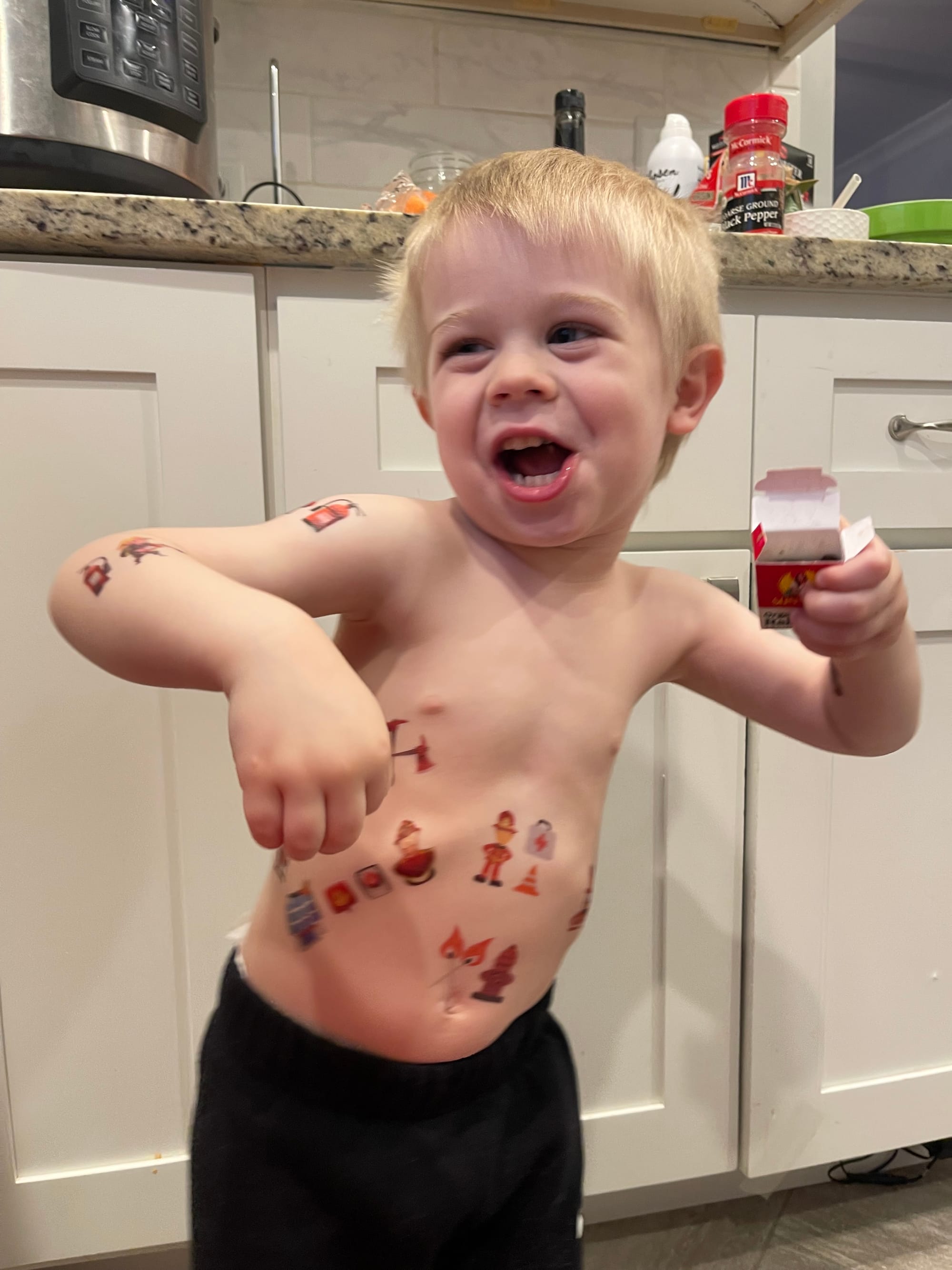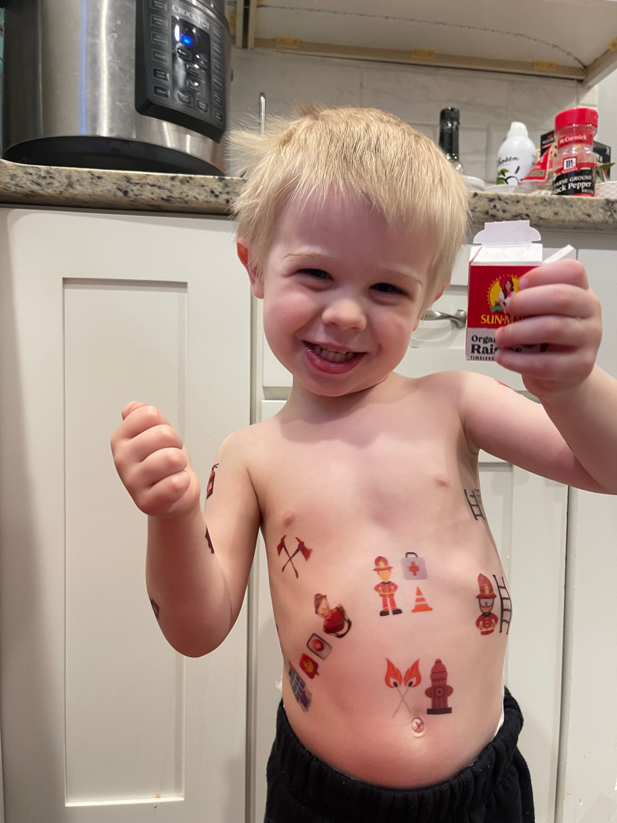 Benson has never liked being dirty. When I pulled out some firefighter tattoos I didn’t think for a second he would be interested.