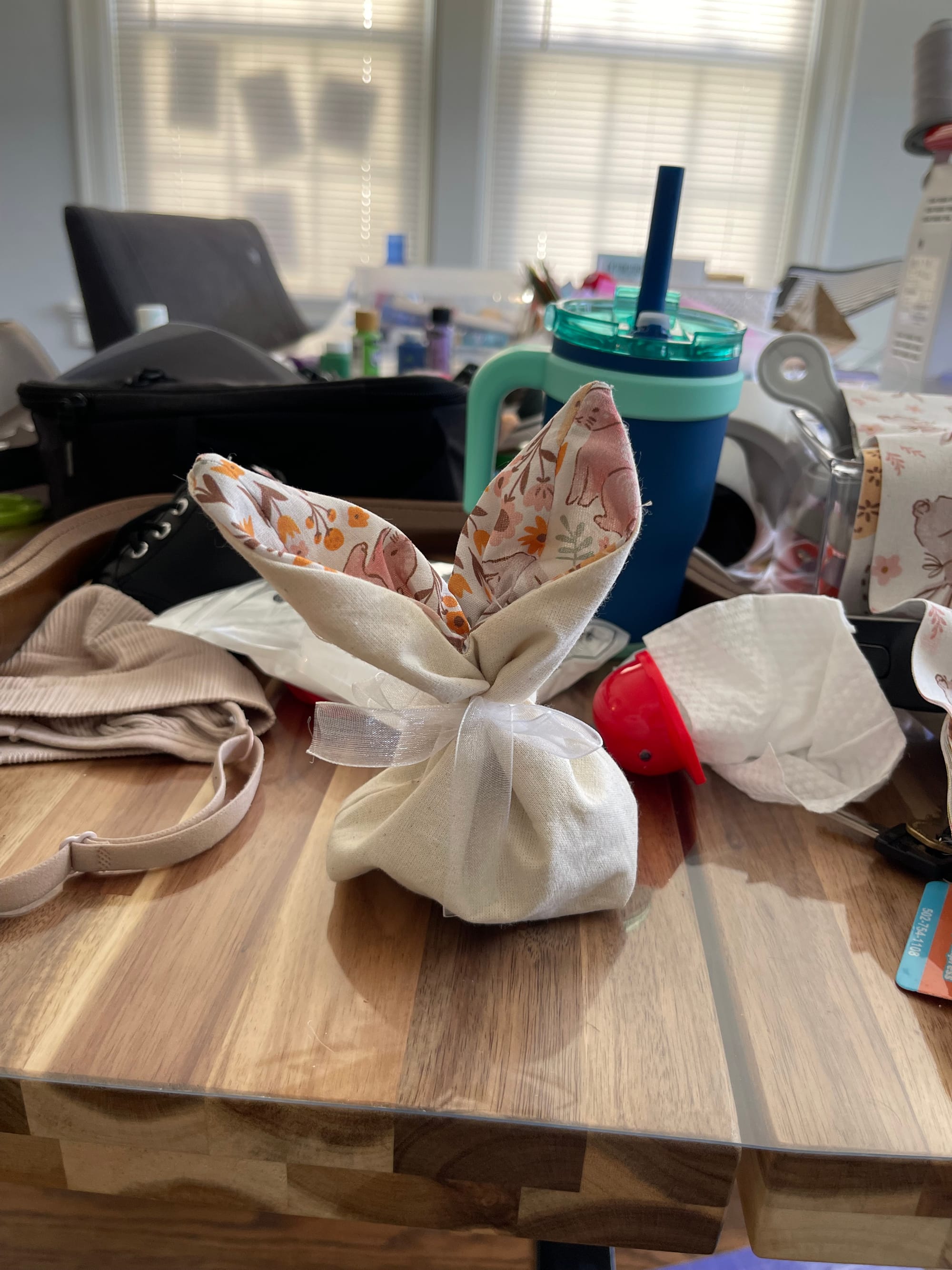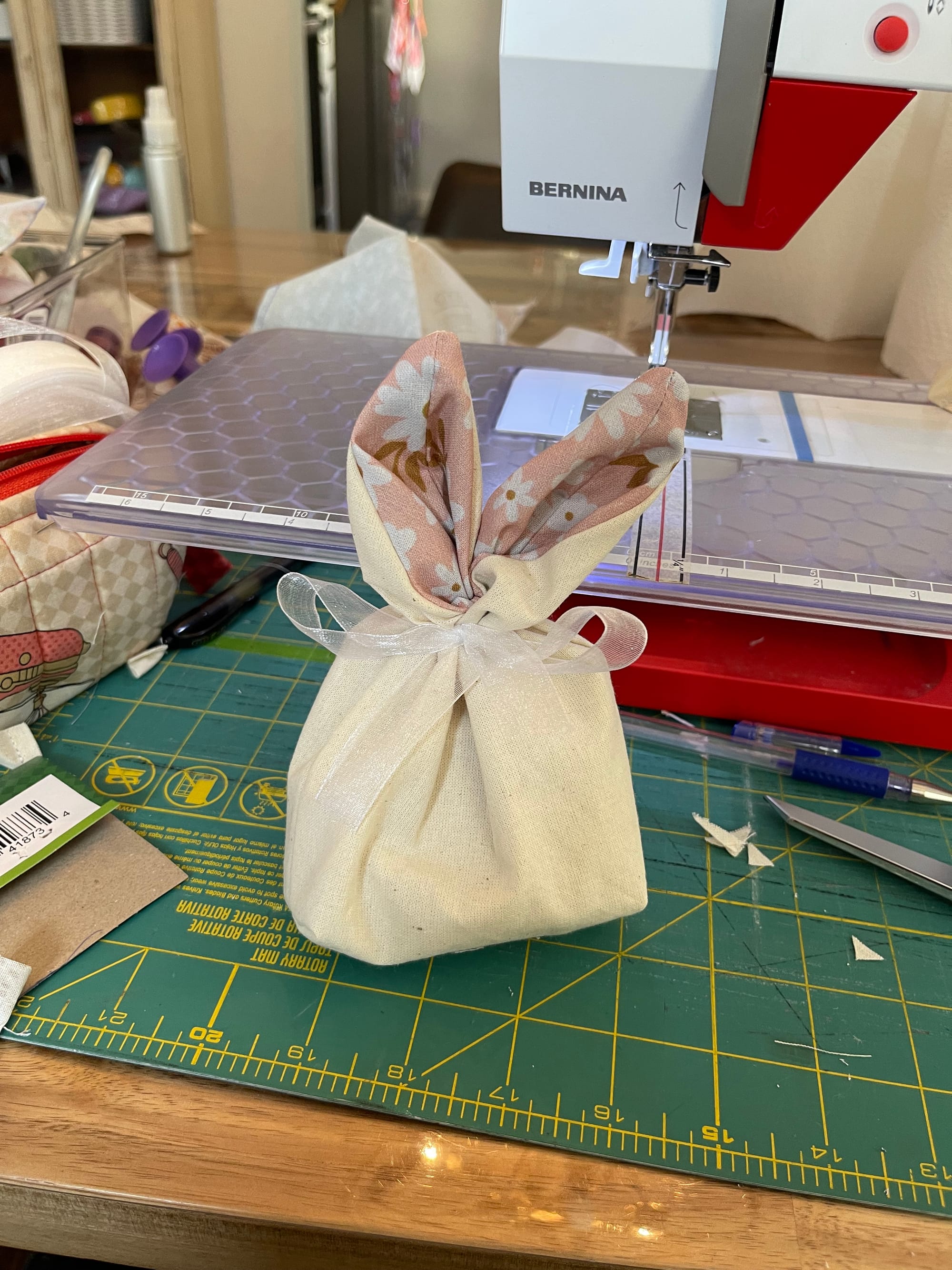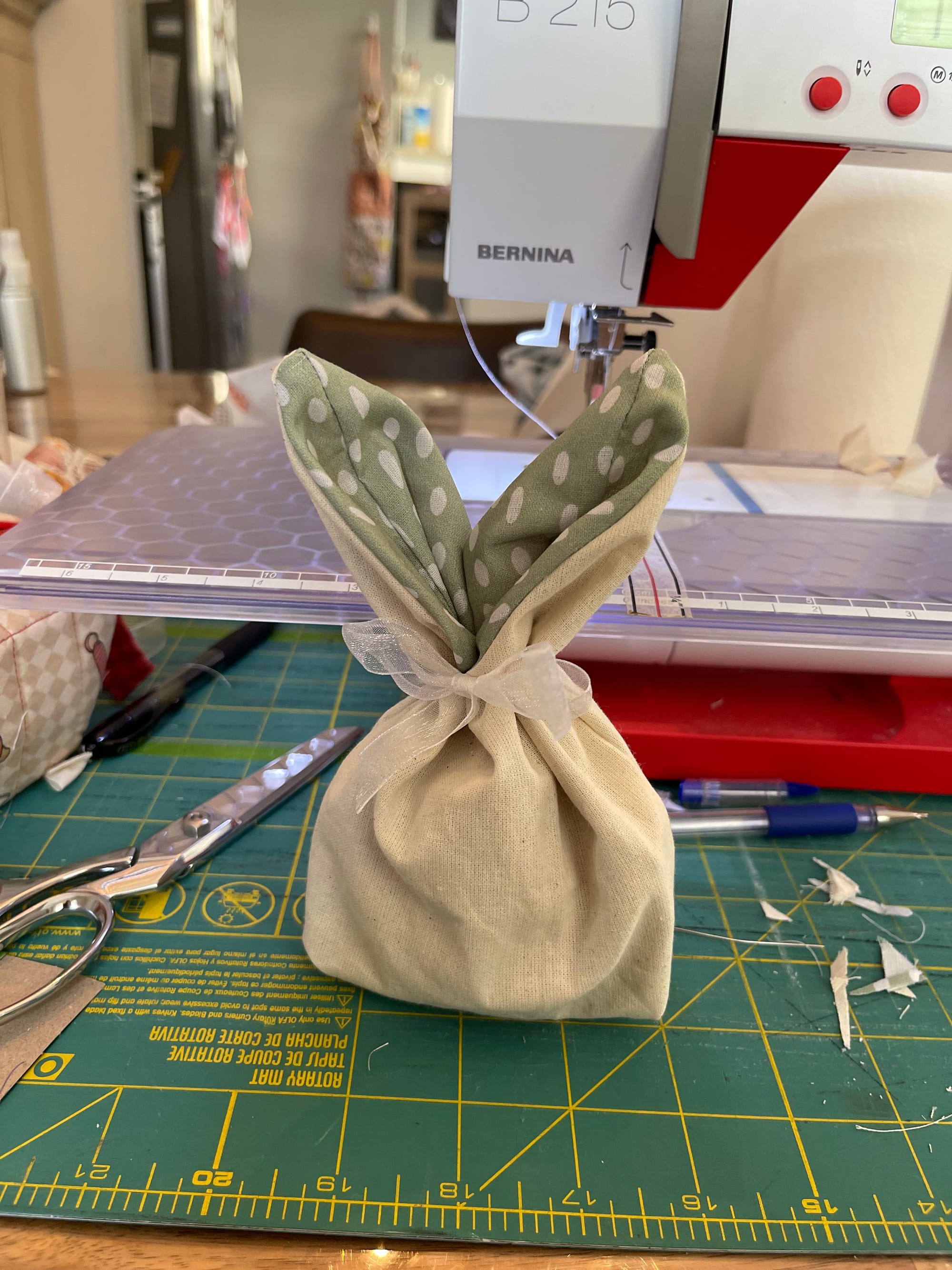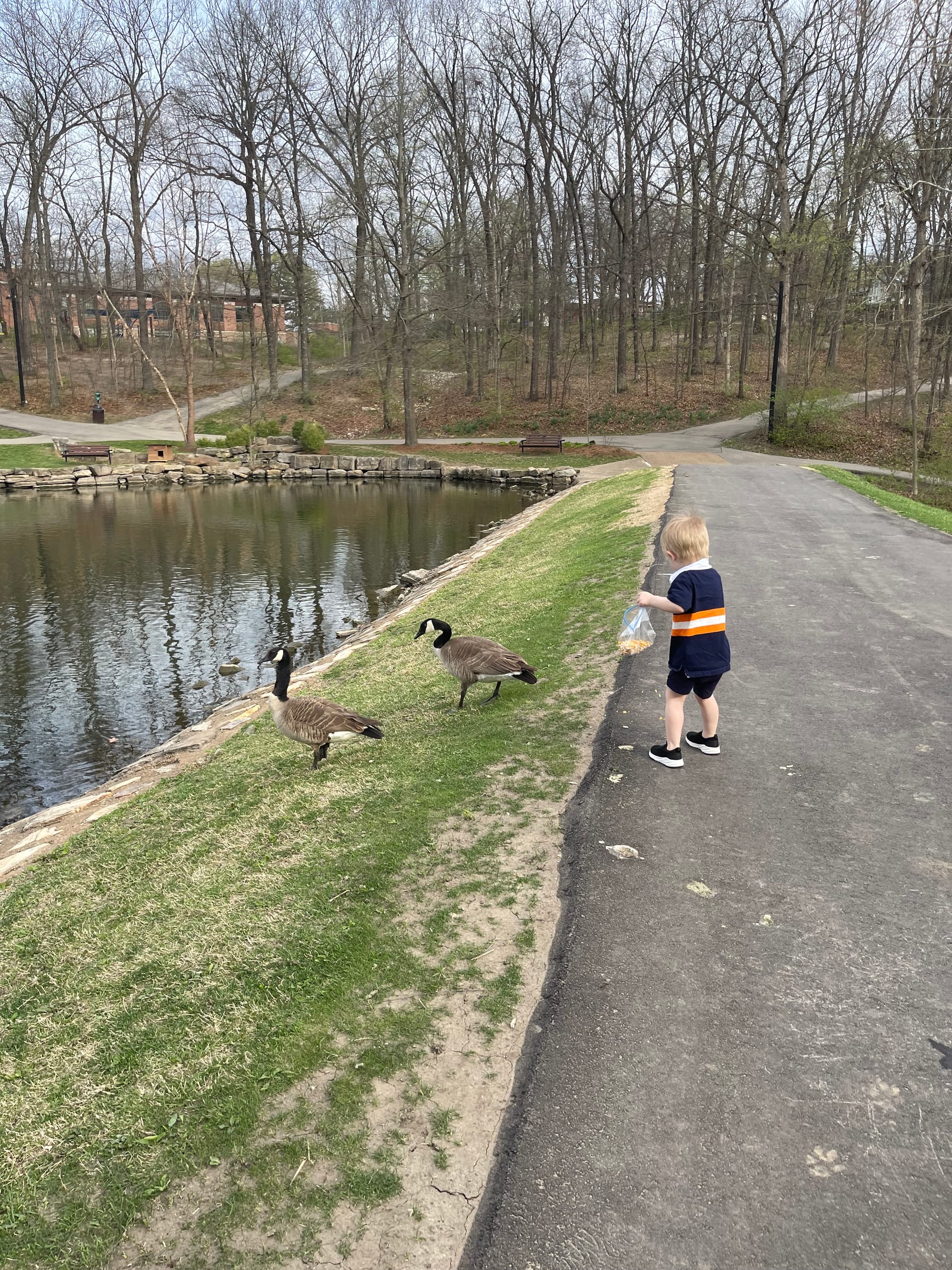 I worked on an Easter sewing project while the boys went and fed the ducks.