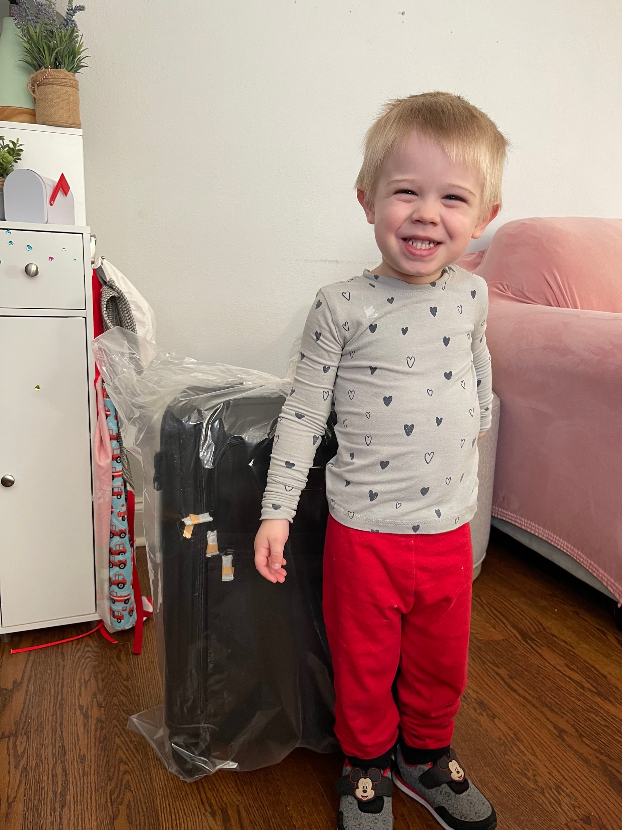 Papa had some luggage sent here for their Italy trip. Benson had to send him a picture with the luggage!
