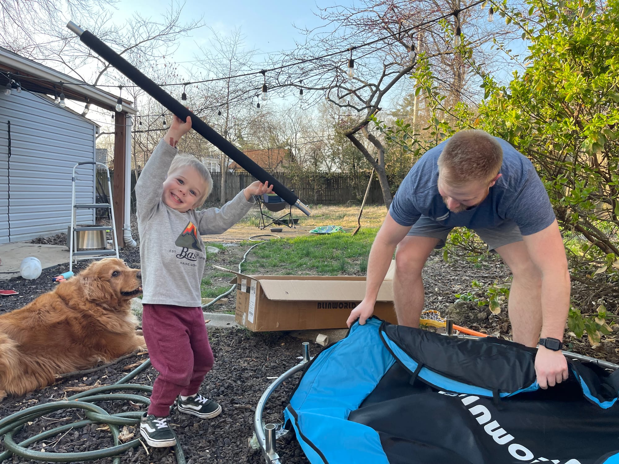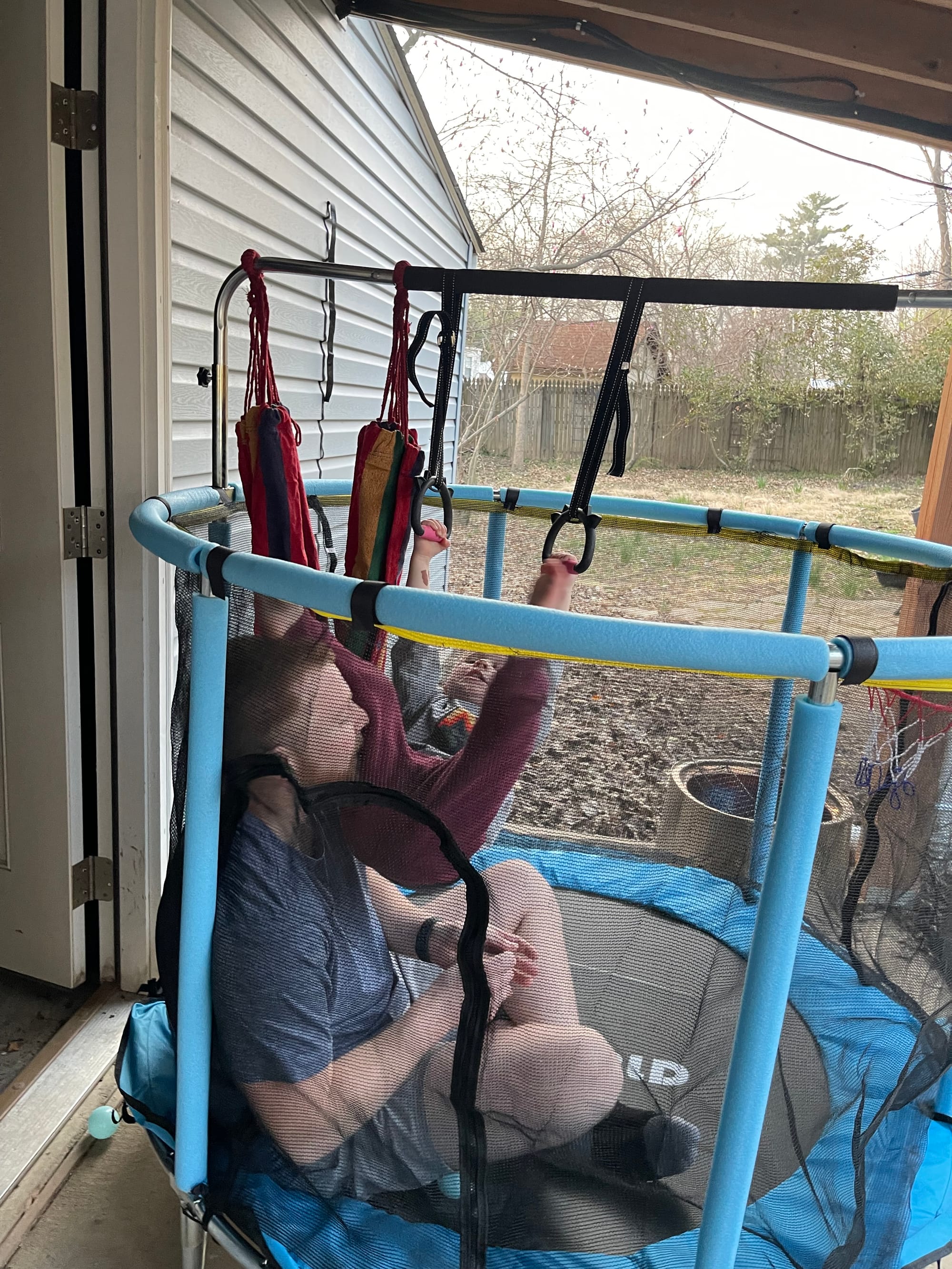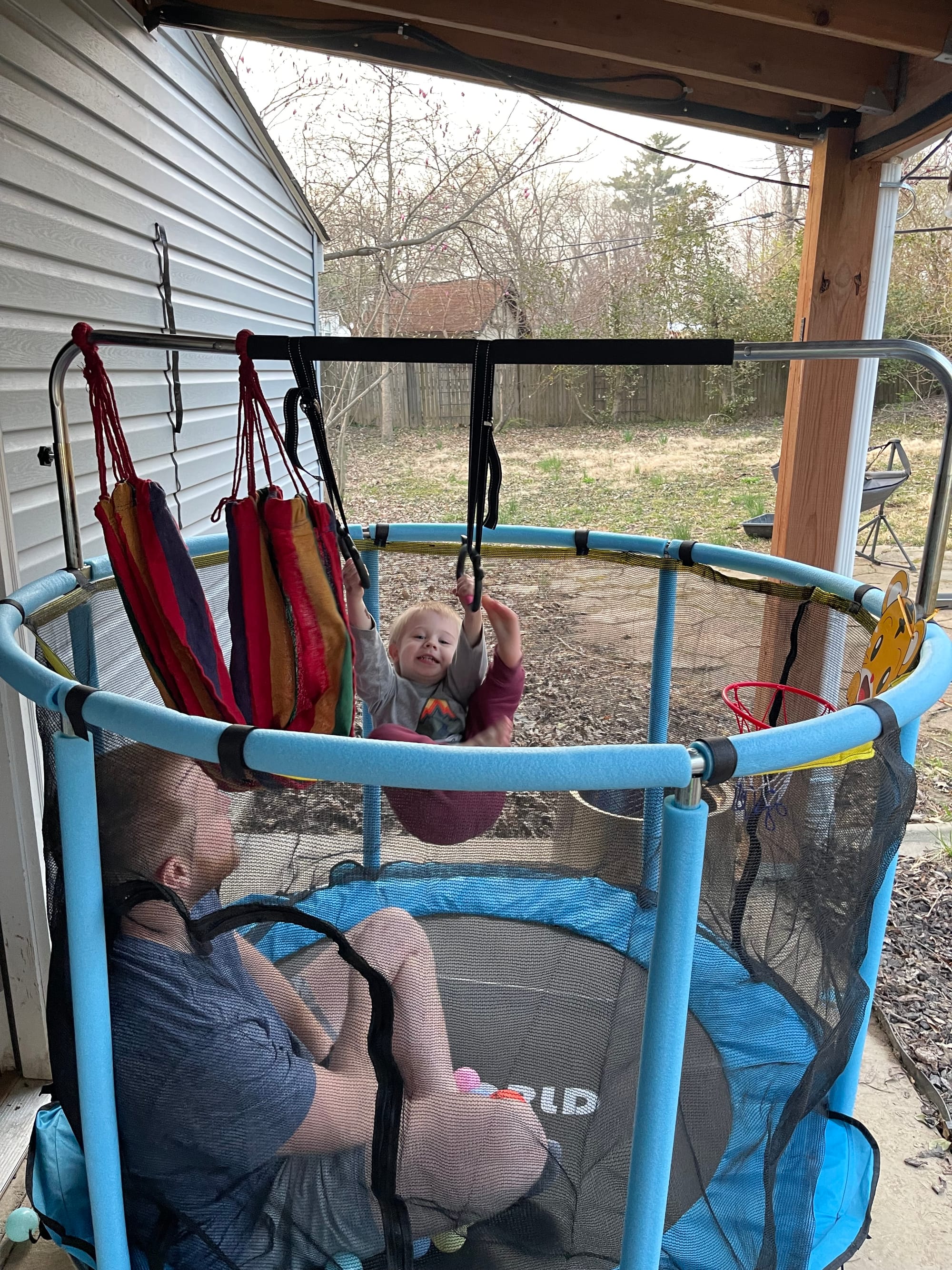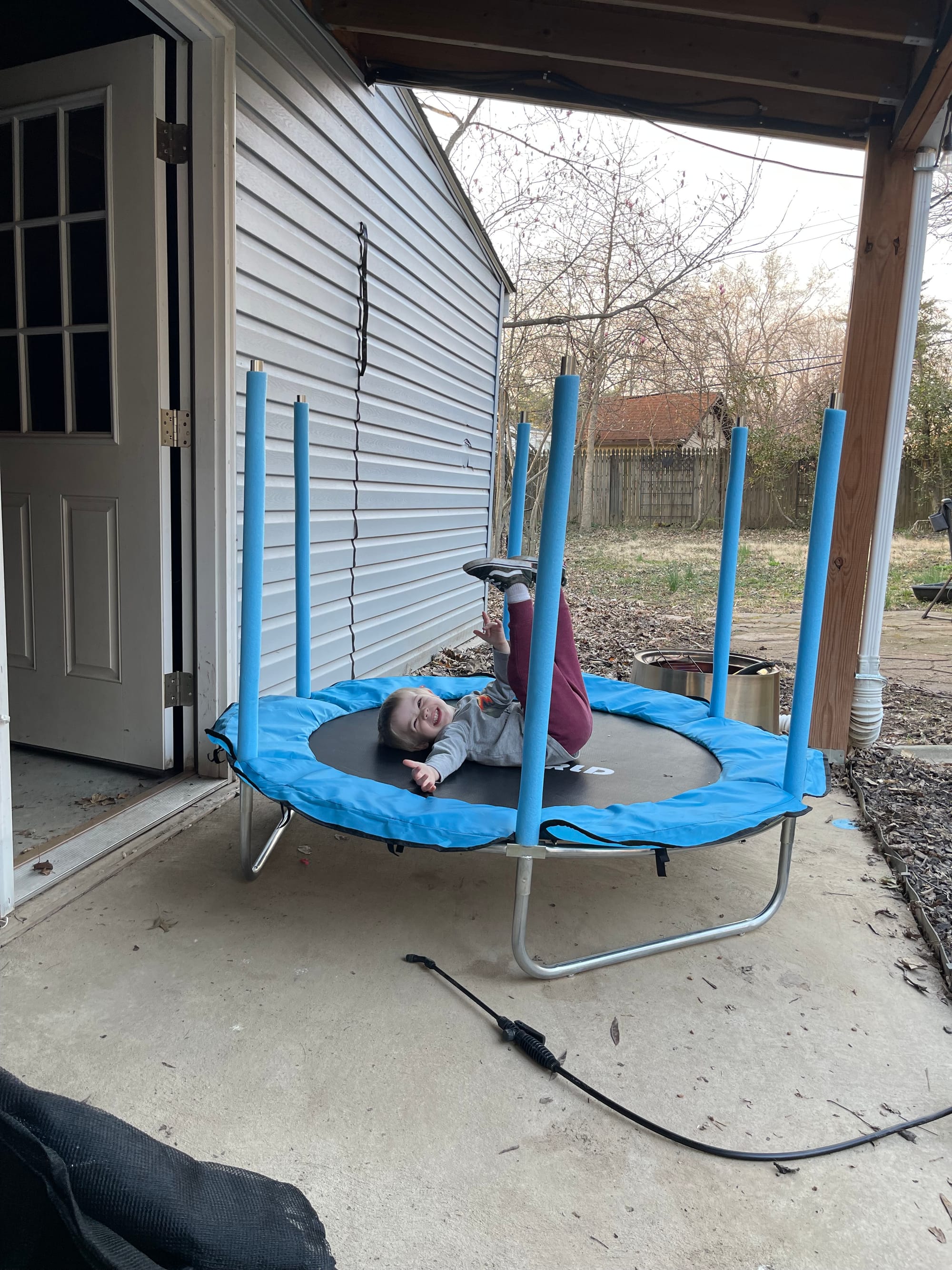 It was a beautiful evening so we decided to set up one of Benny’s birthday presents.. the tramp! He had a blast!