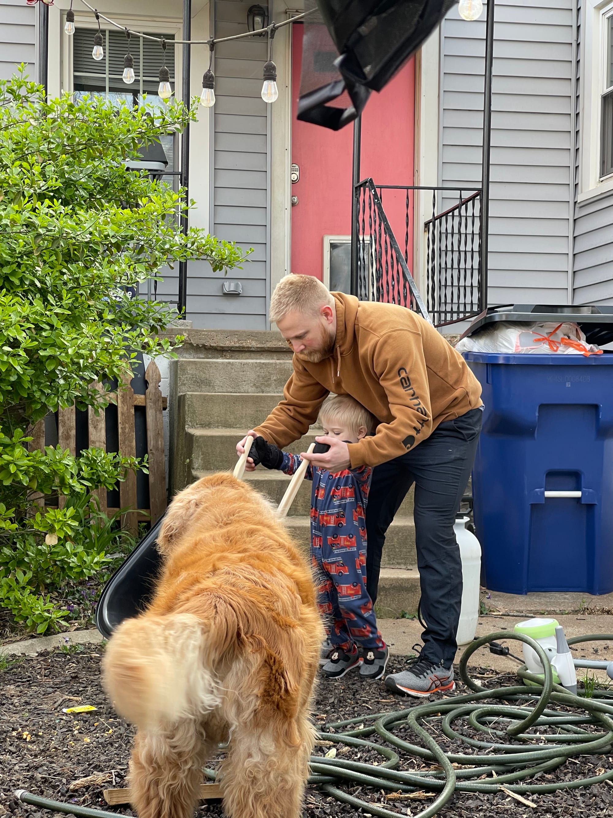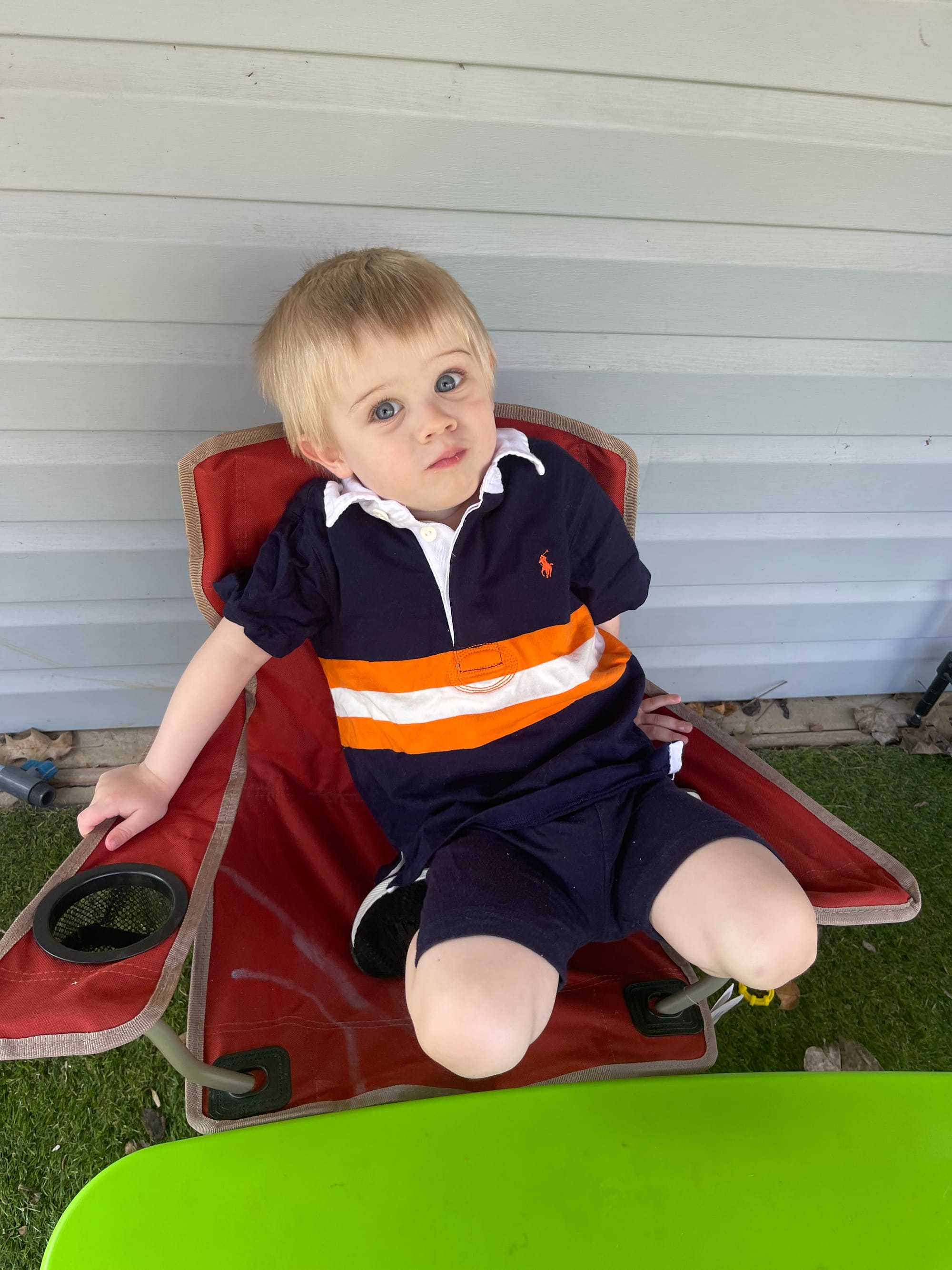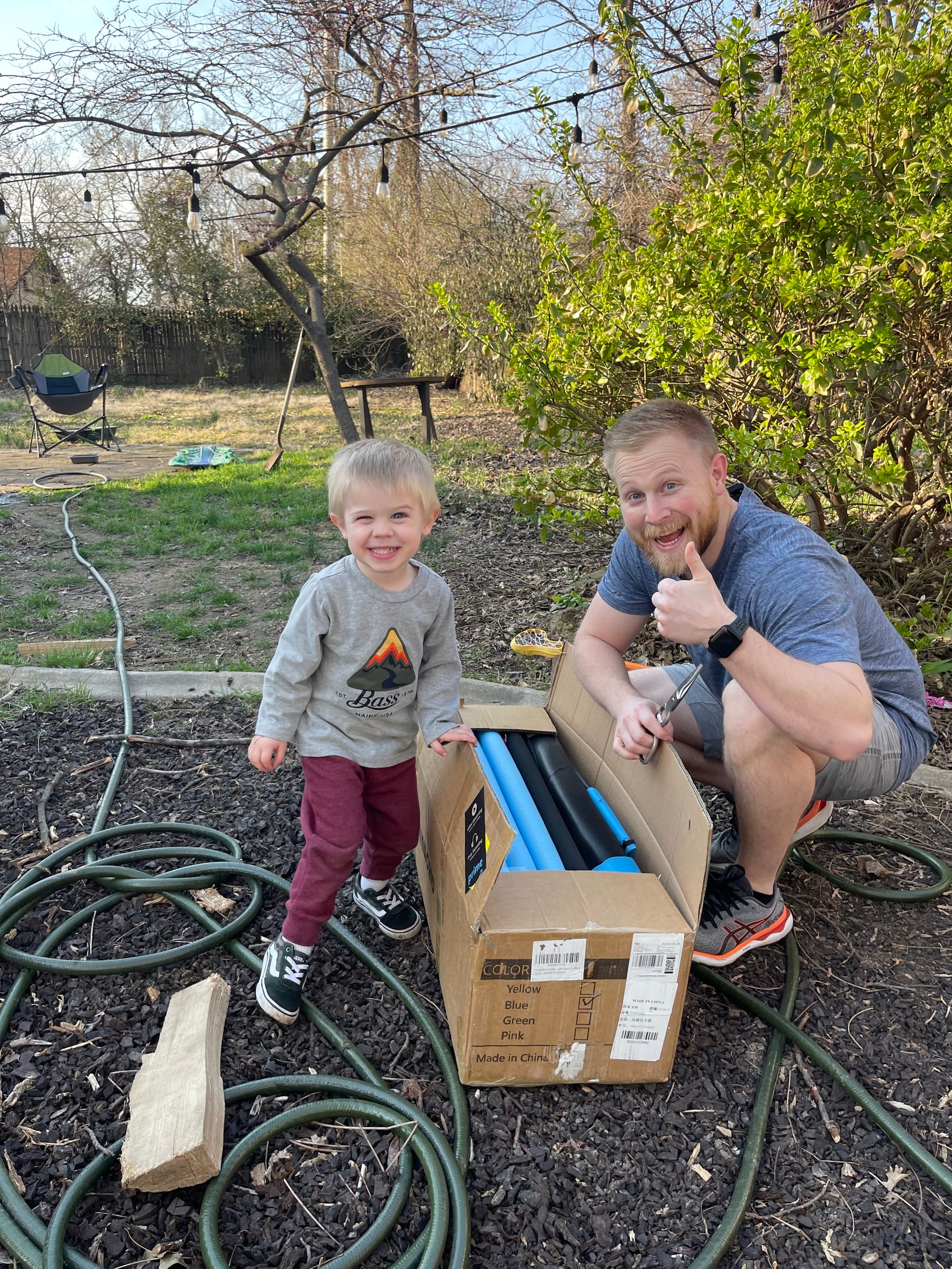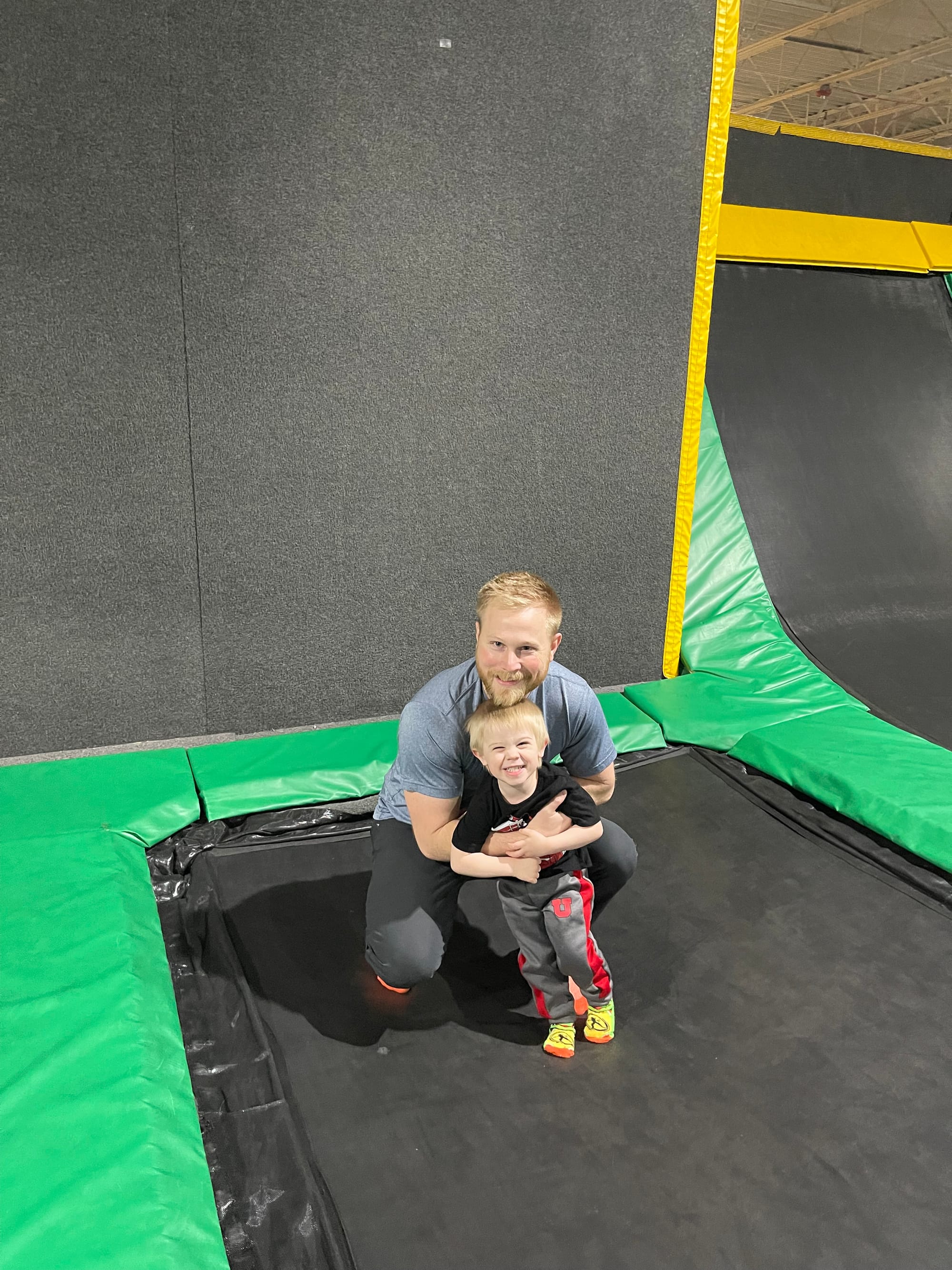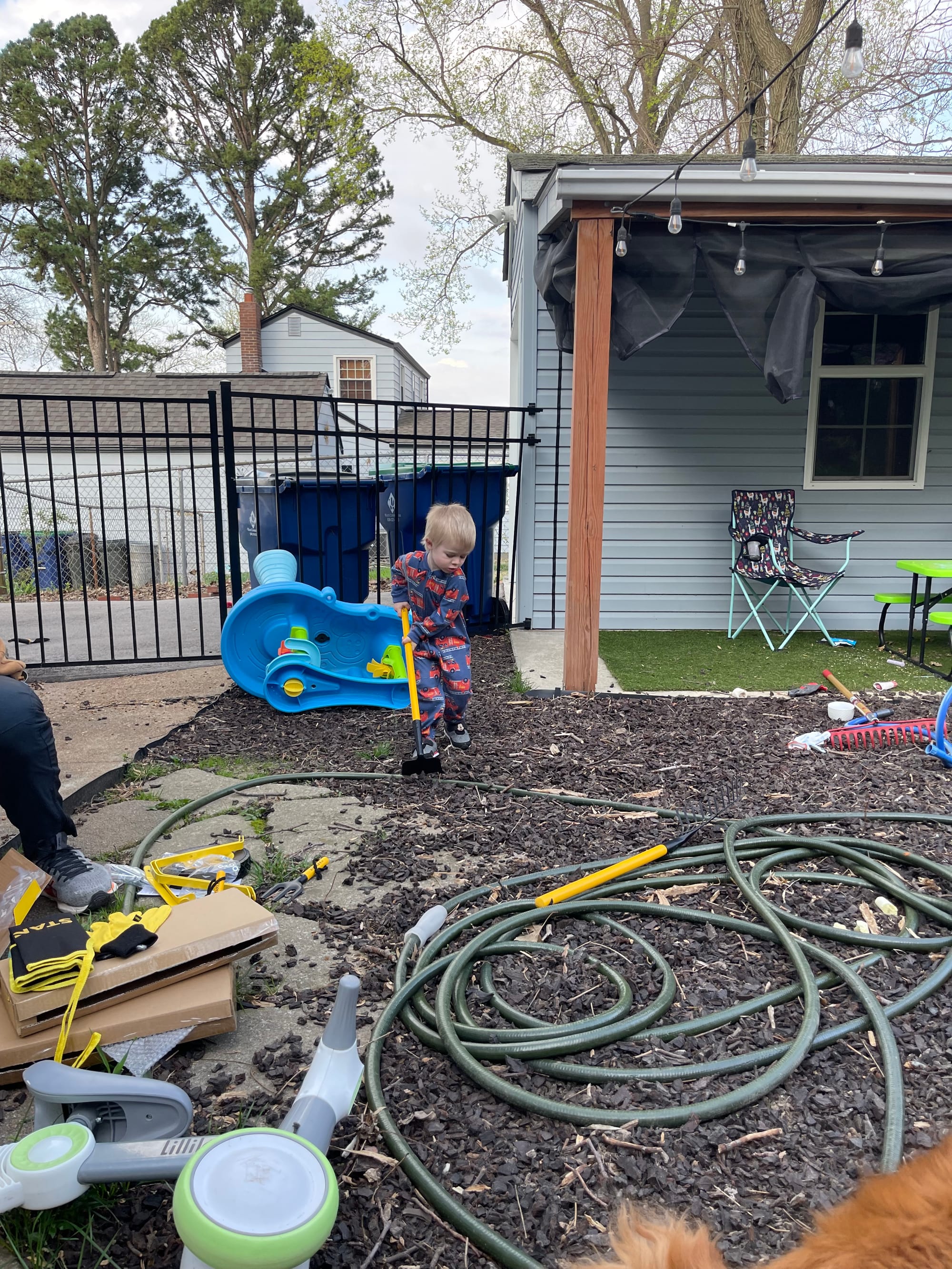It was a beautiful evening so we decided to set up one of Benny’s birthday presents.. the tramp! He had a blast!