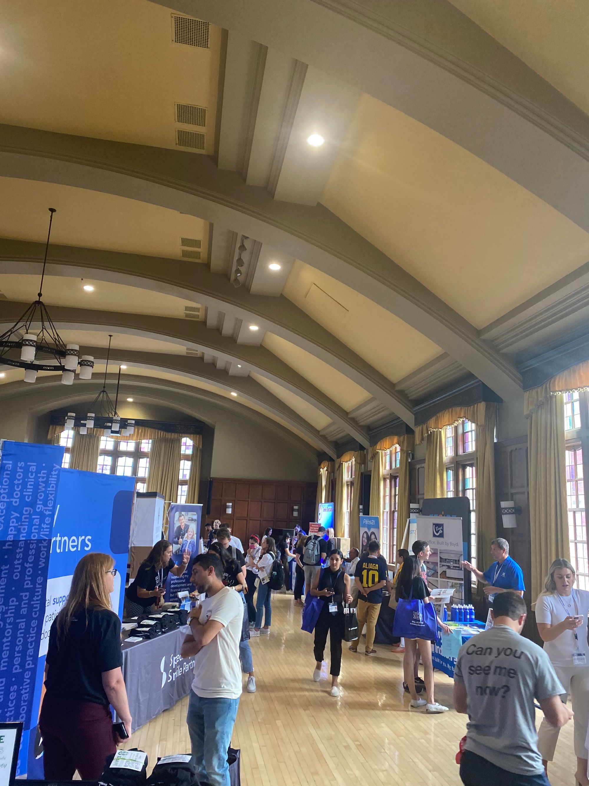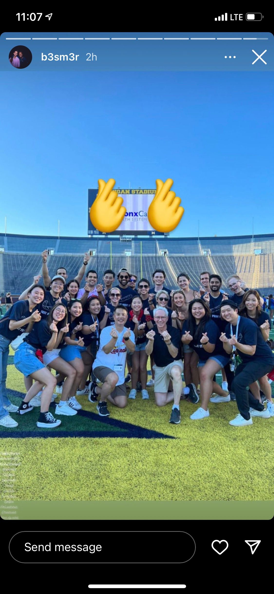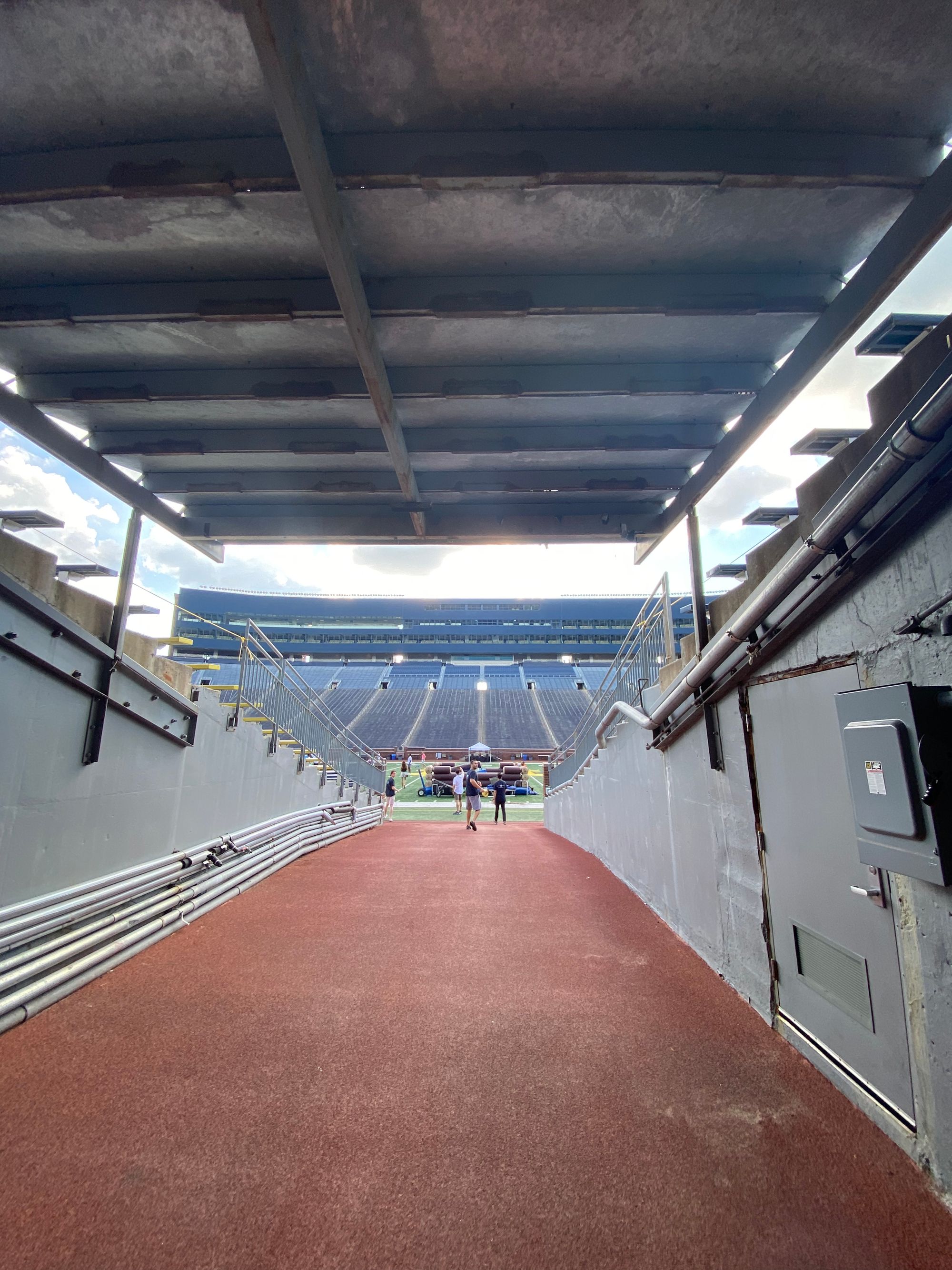 Logan attends some lectors, visits some vendors, relaxes, and gets ready for a fun dinner at the Michigan stadium. They placed games down on the field and tried to kick some field goals. Tries an old fashion... paint thinner!