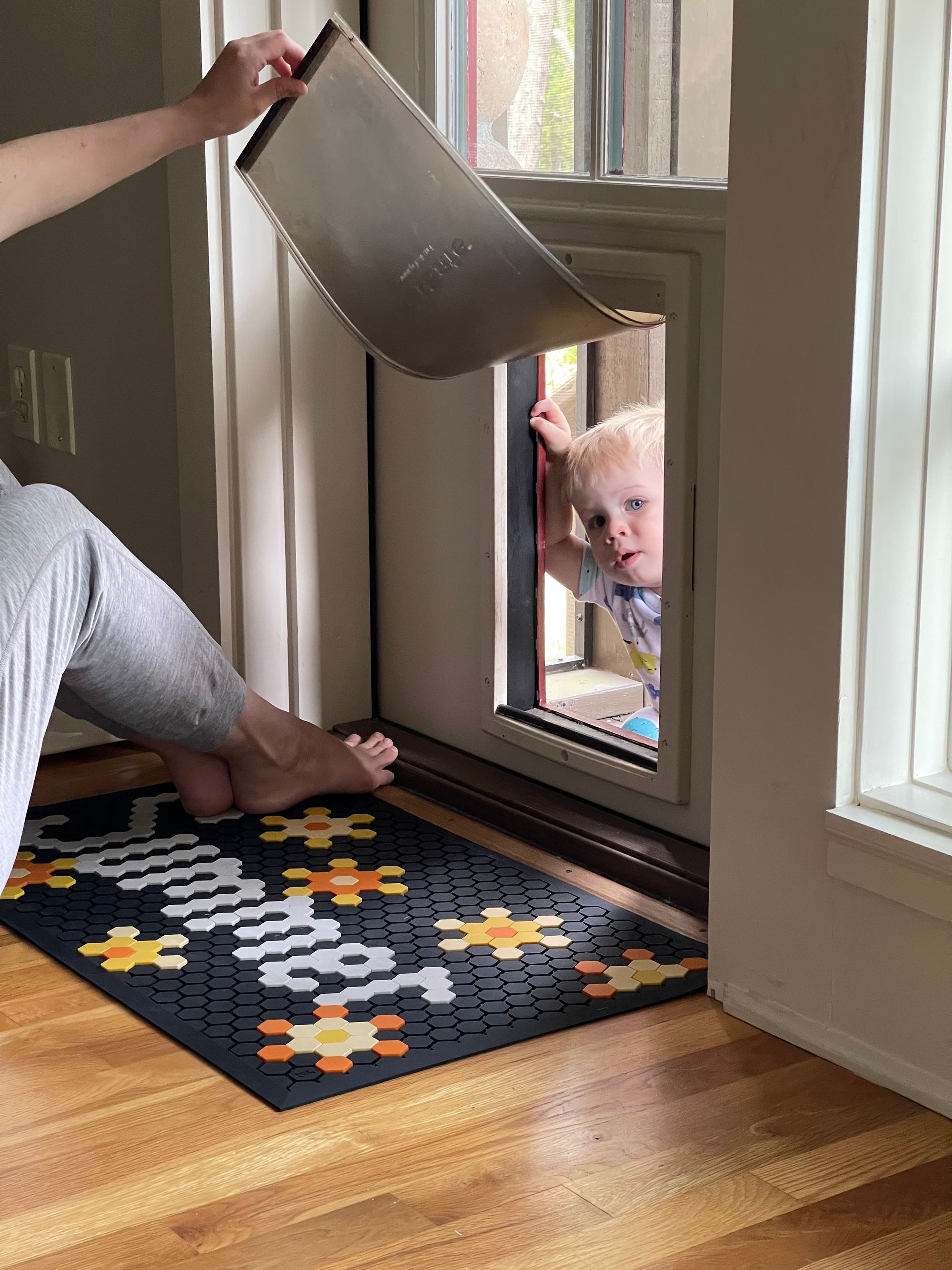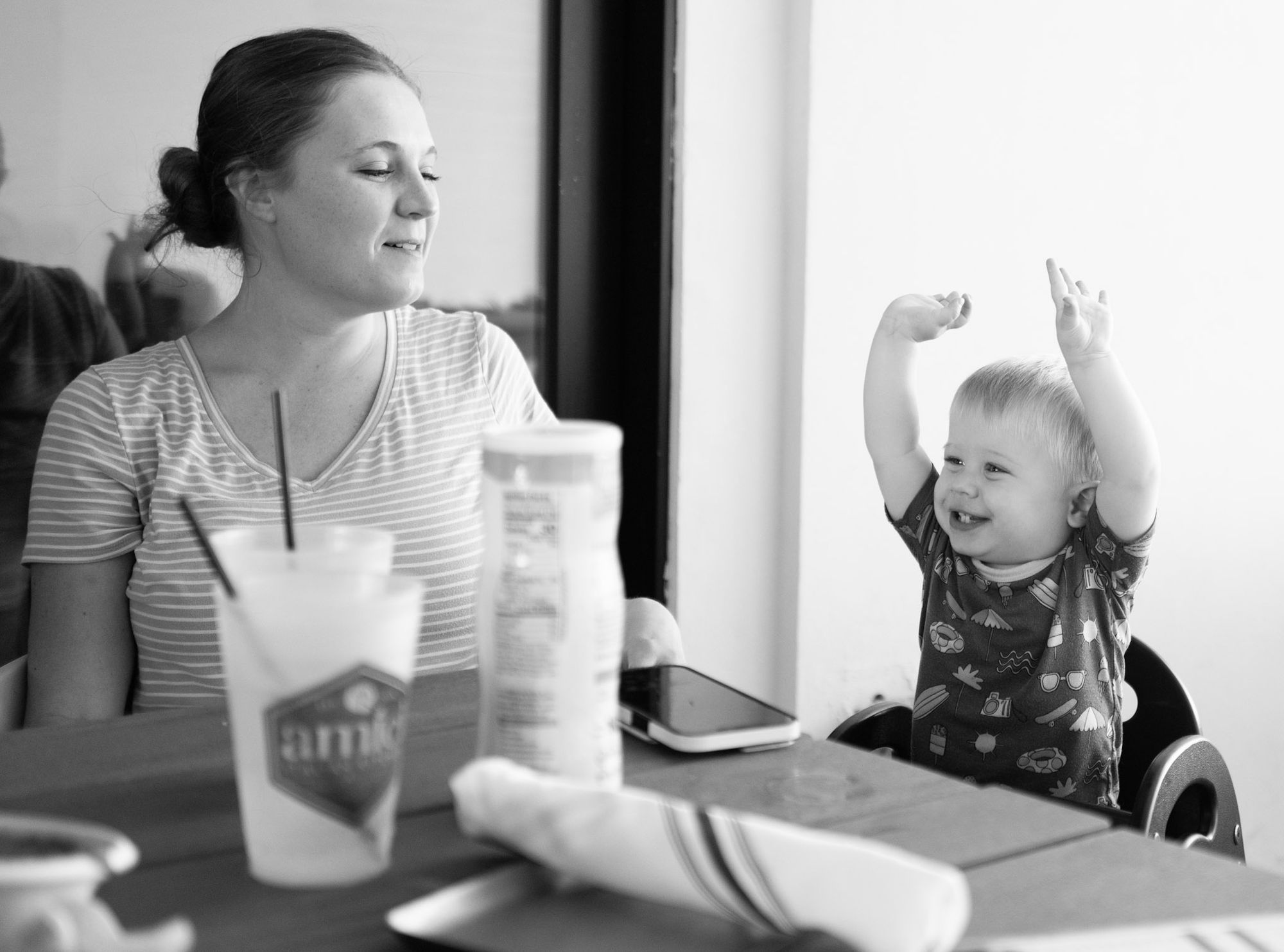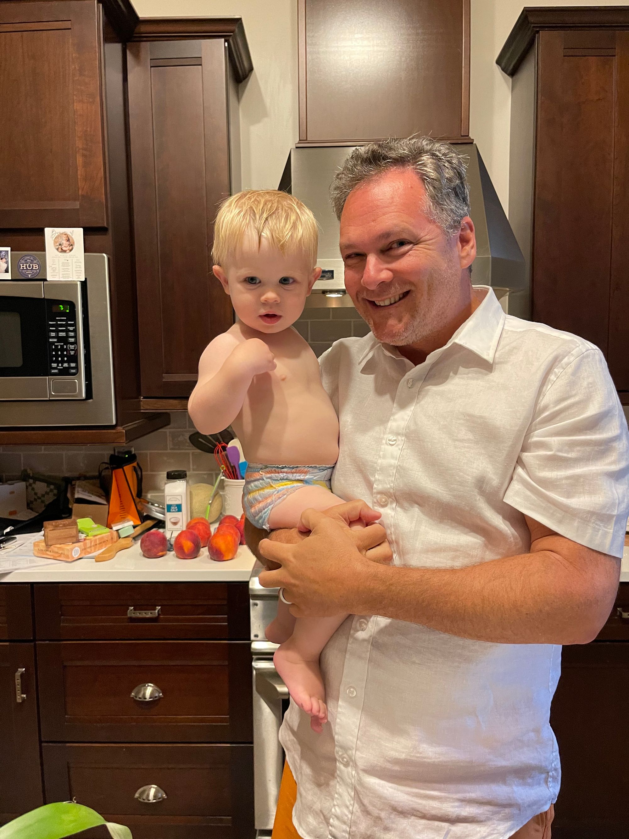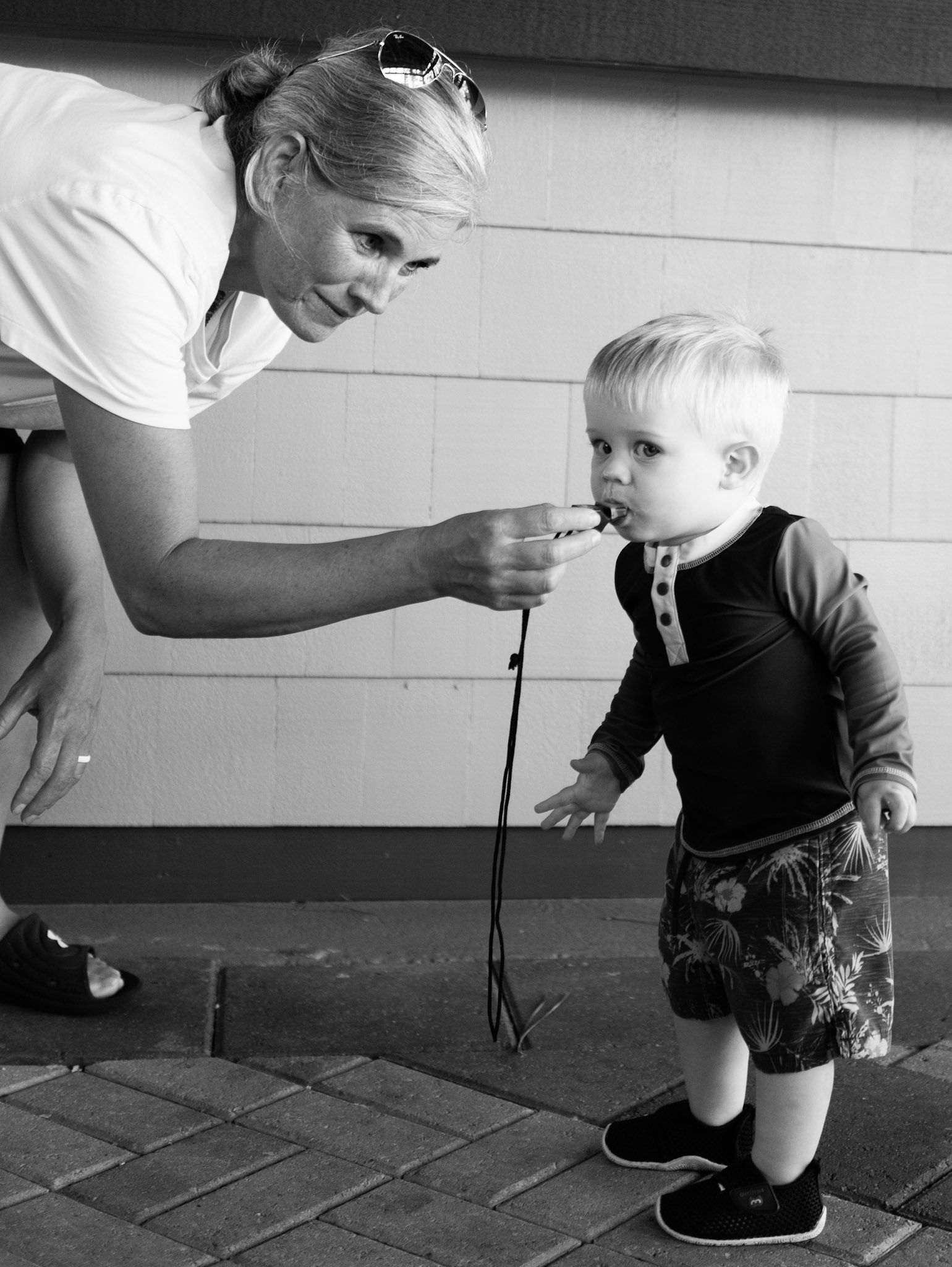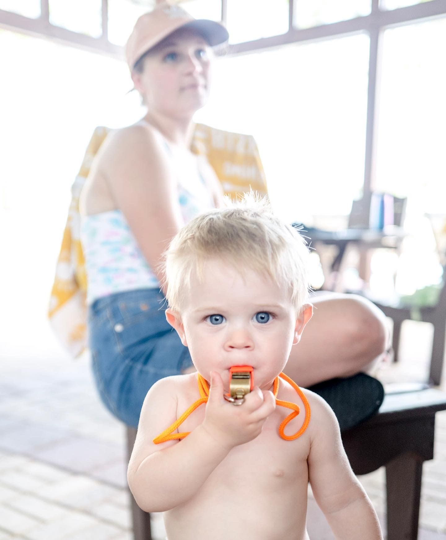 Benson discovered the dog door and enjoy playing at the pool! We got some dinner from a local food truck, peaches from the Farmer's Market, and captured some hilarious facial expressions while chatting with Logan! Grandma taught Benson how to use a whistle.