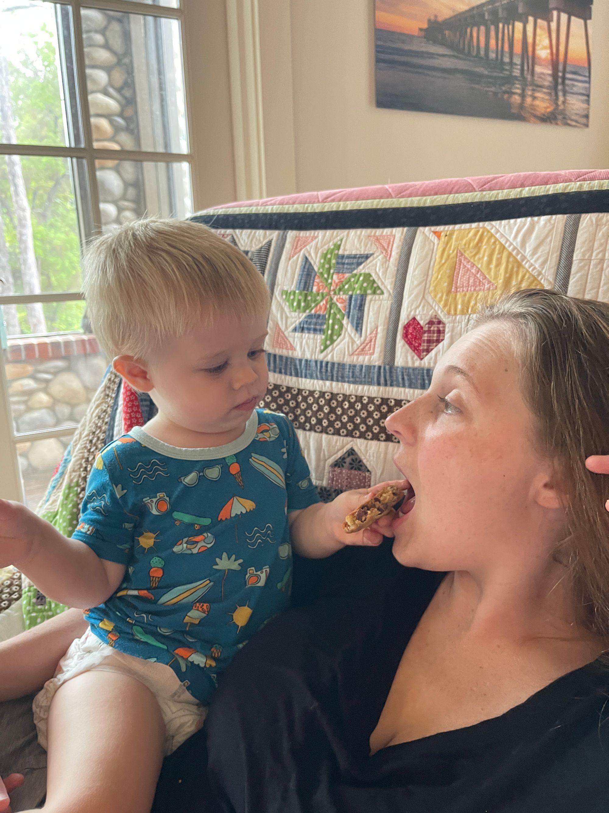 We were so happy to see Logan and be back together again. What a wonderful week for both of us! Ending the night with a little snack :)