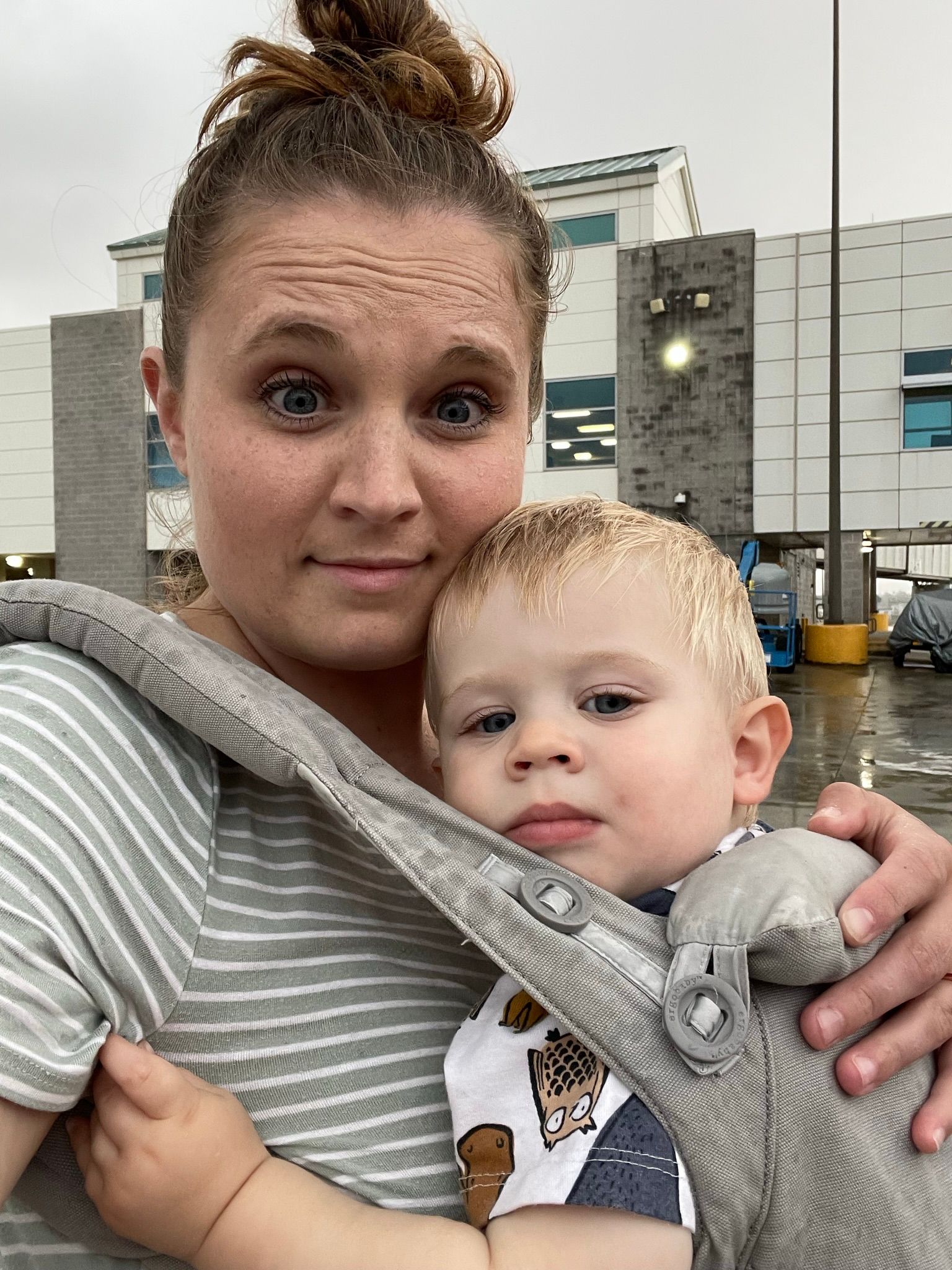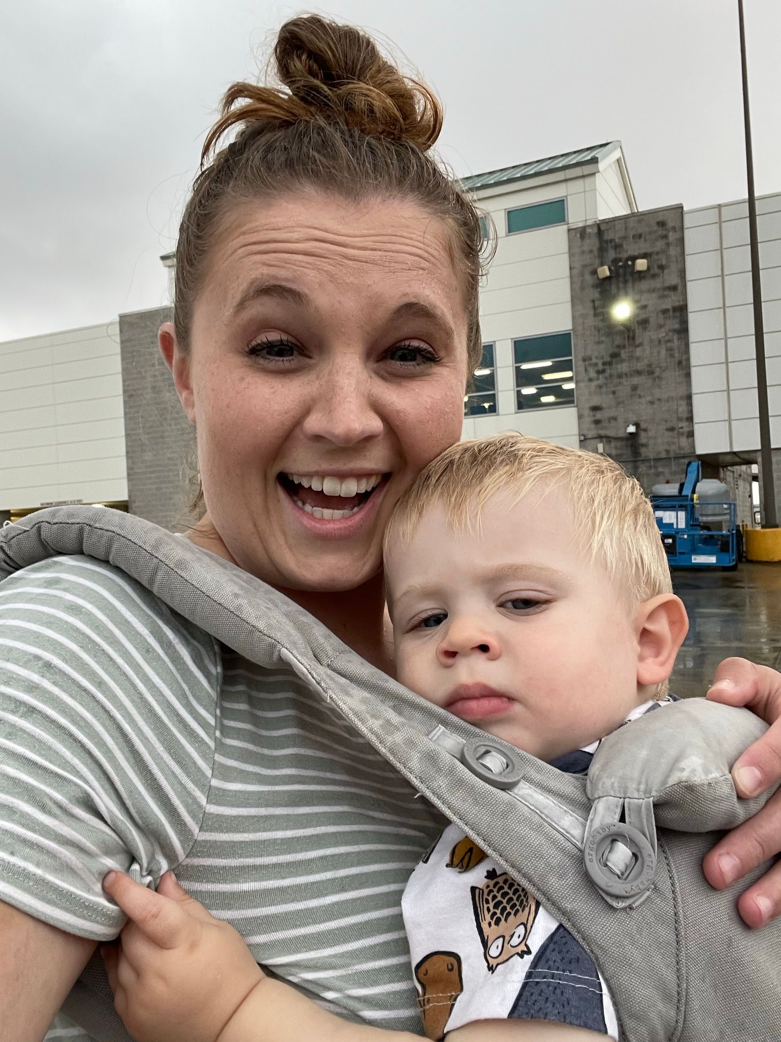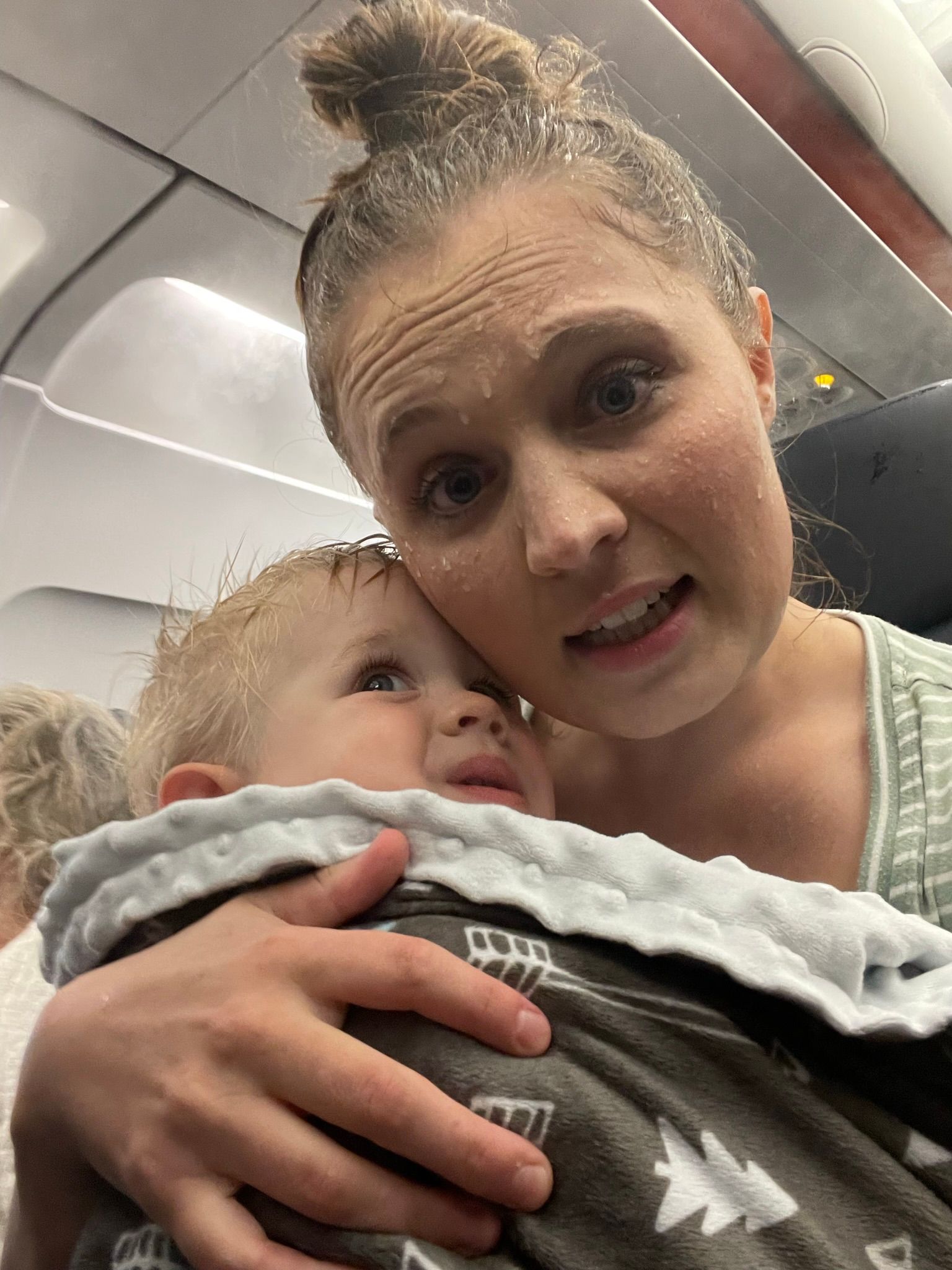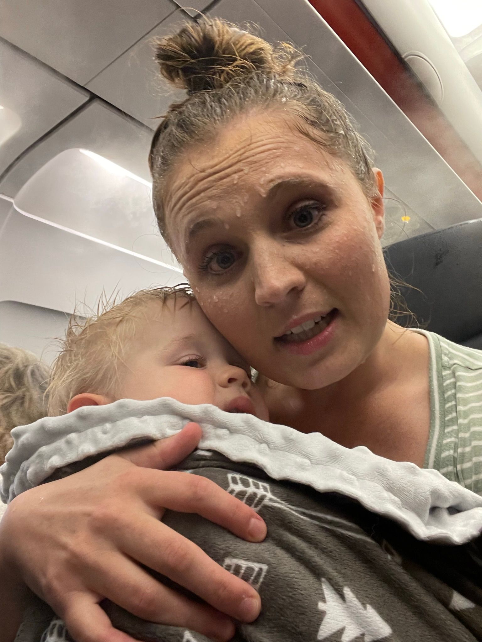 Once on the plane, they suspending boarding and closed the door. About 20 of us were trapped on the plane... soaking wet. We stayed this way for about 45 minutes. I had some guy help get down our suitcase so I could change Benny's clothes... and we waited! We finally resumed boarding... and then took another 45 minutes to take off! Benson slept the whole flight home, and it was the longest 1.20 hour flight of my life!