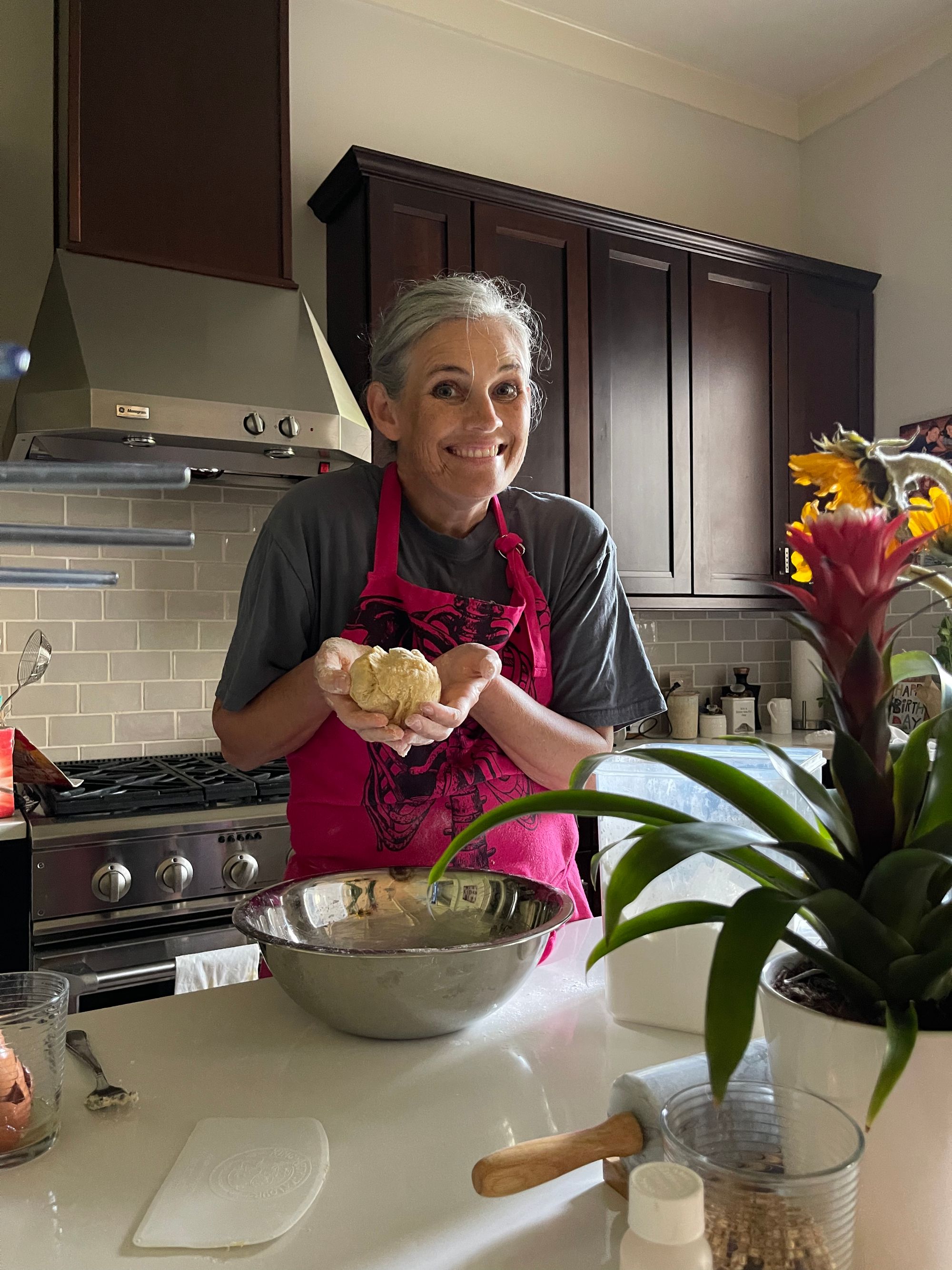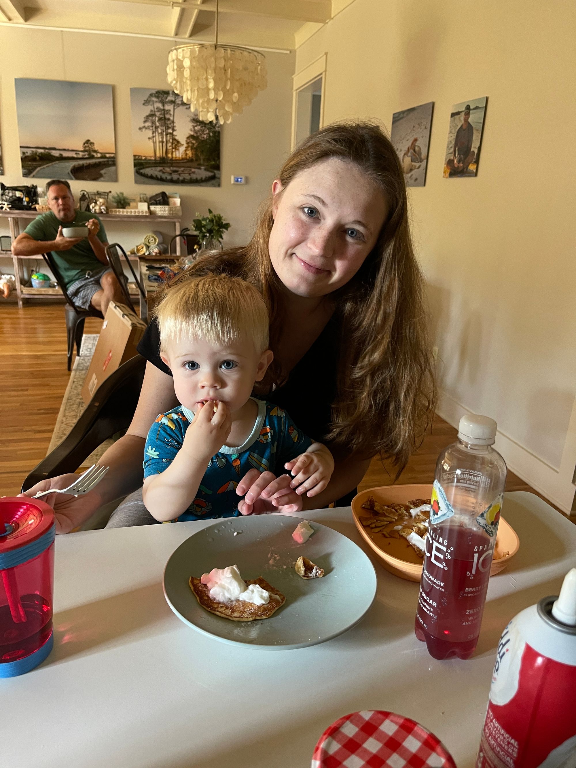 Damon makes sourdough pancakes! My mom tops them with lemon, sugar, and cream... an Aussie original. So good!