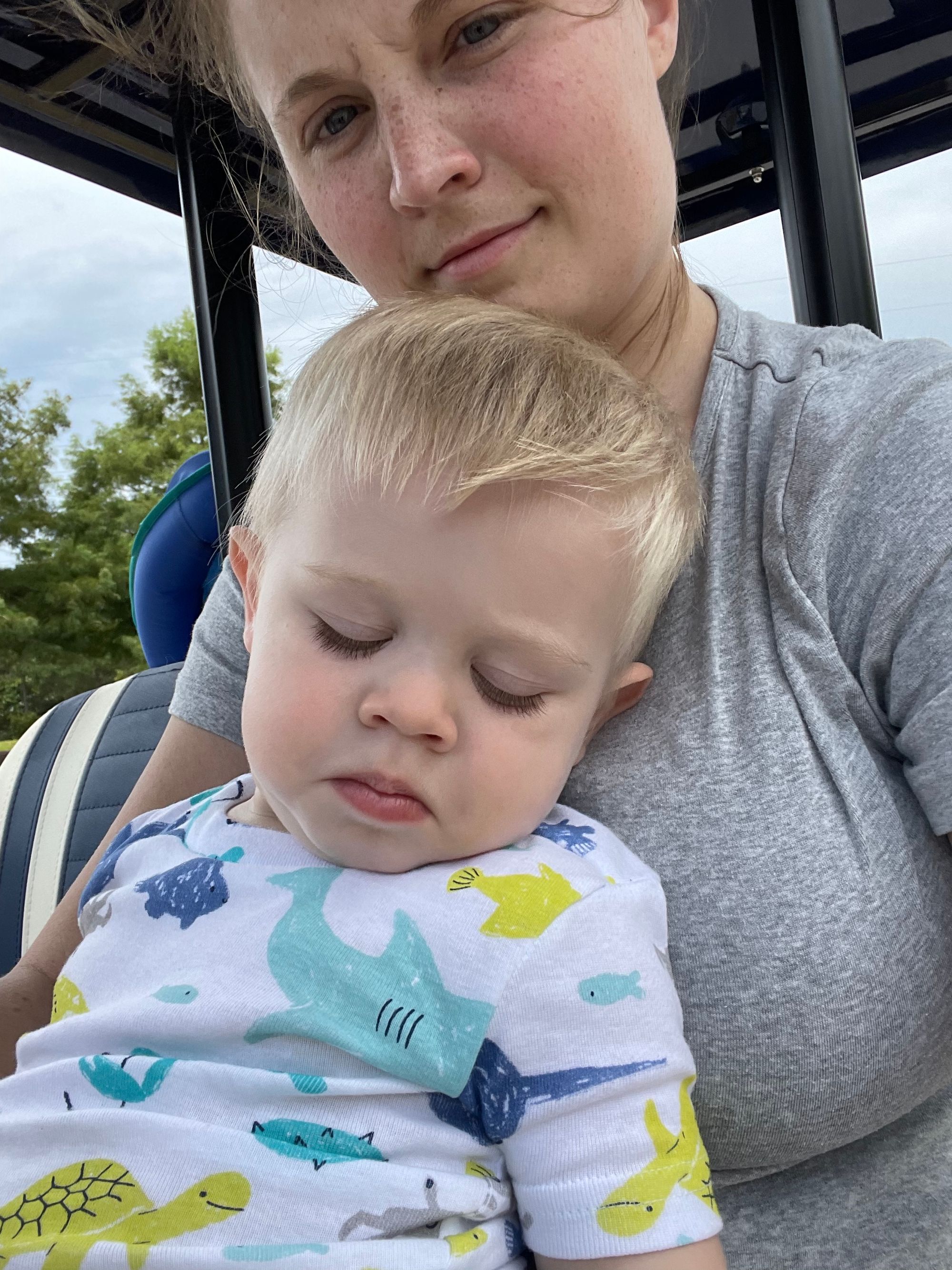 I was up really early... so I got caught up on work, soaked in the tub, and watched Benny sleep. Once he was up we ate some amazing bread and took off on a golf cart ride that ended up putting him to sleep. :)