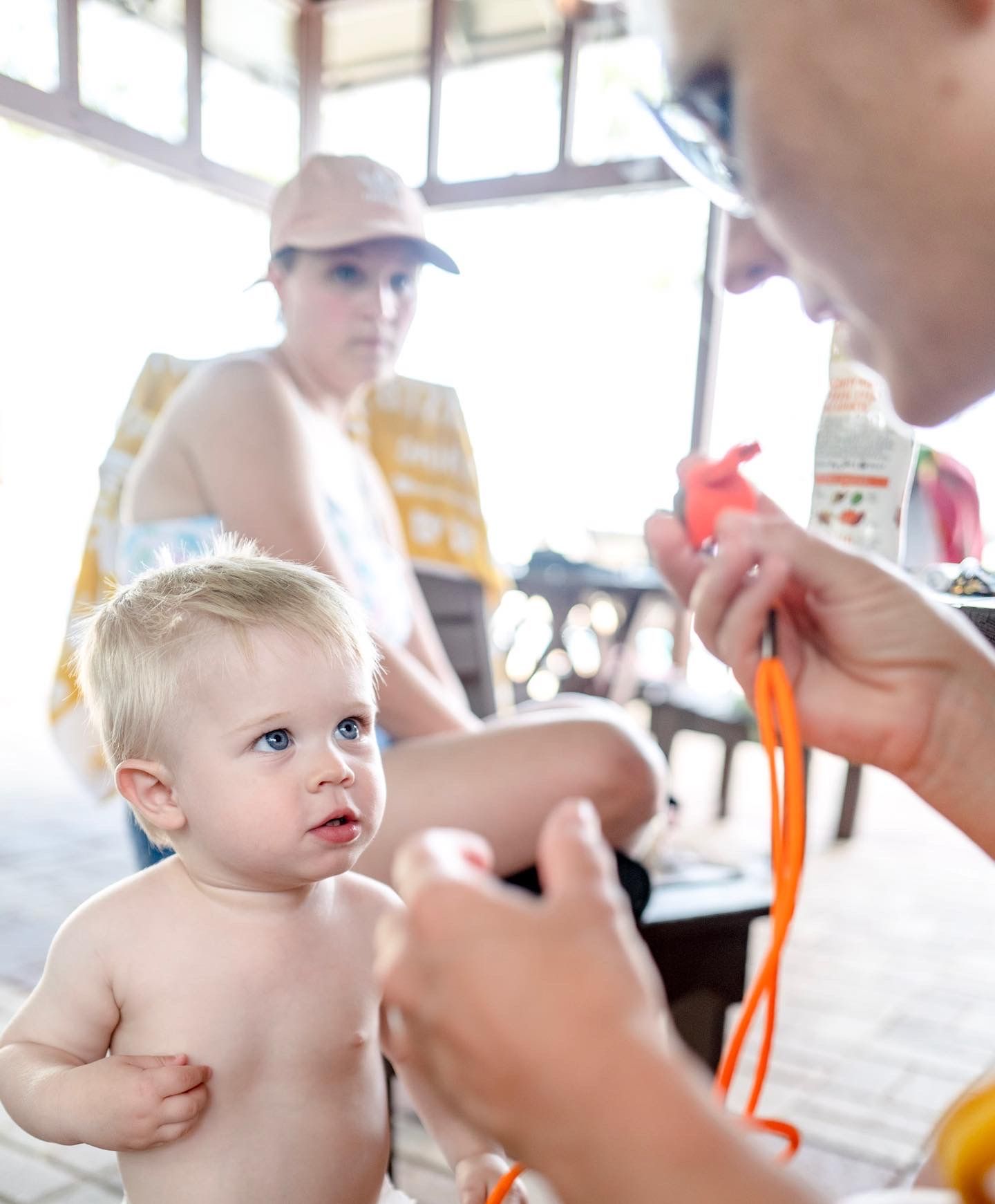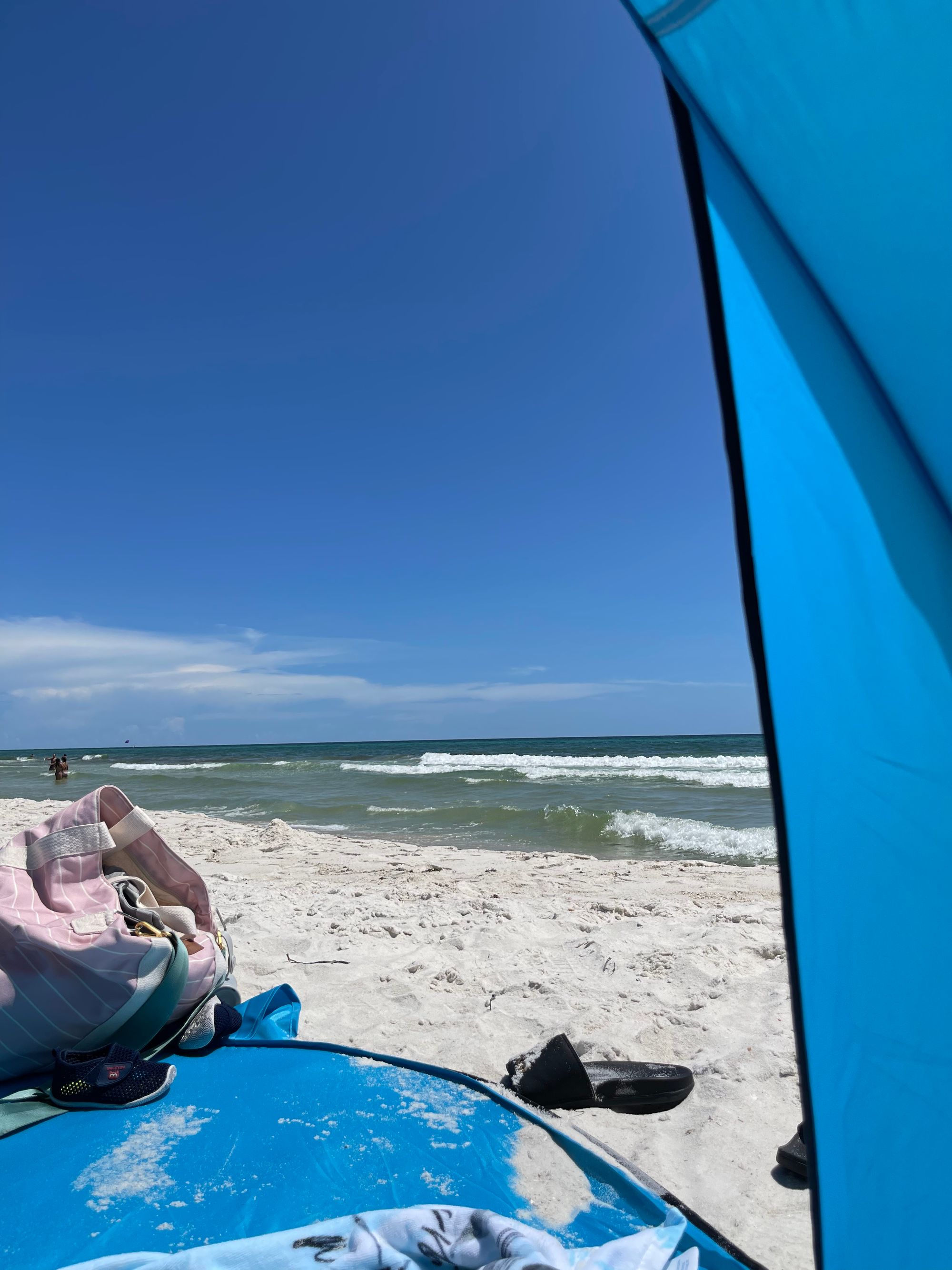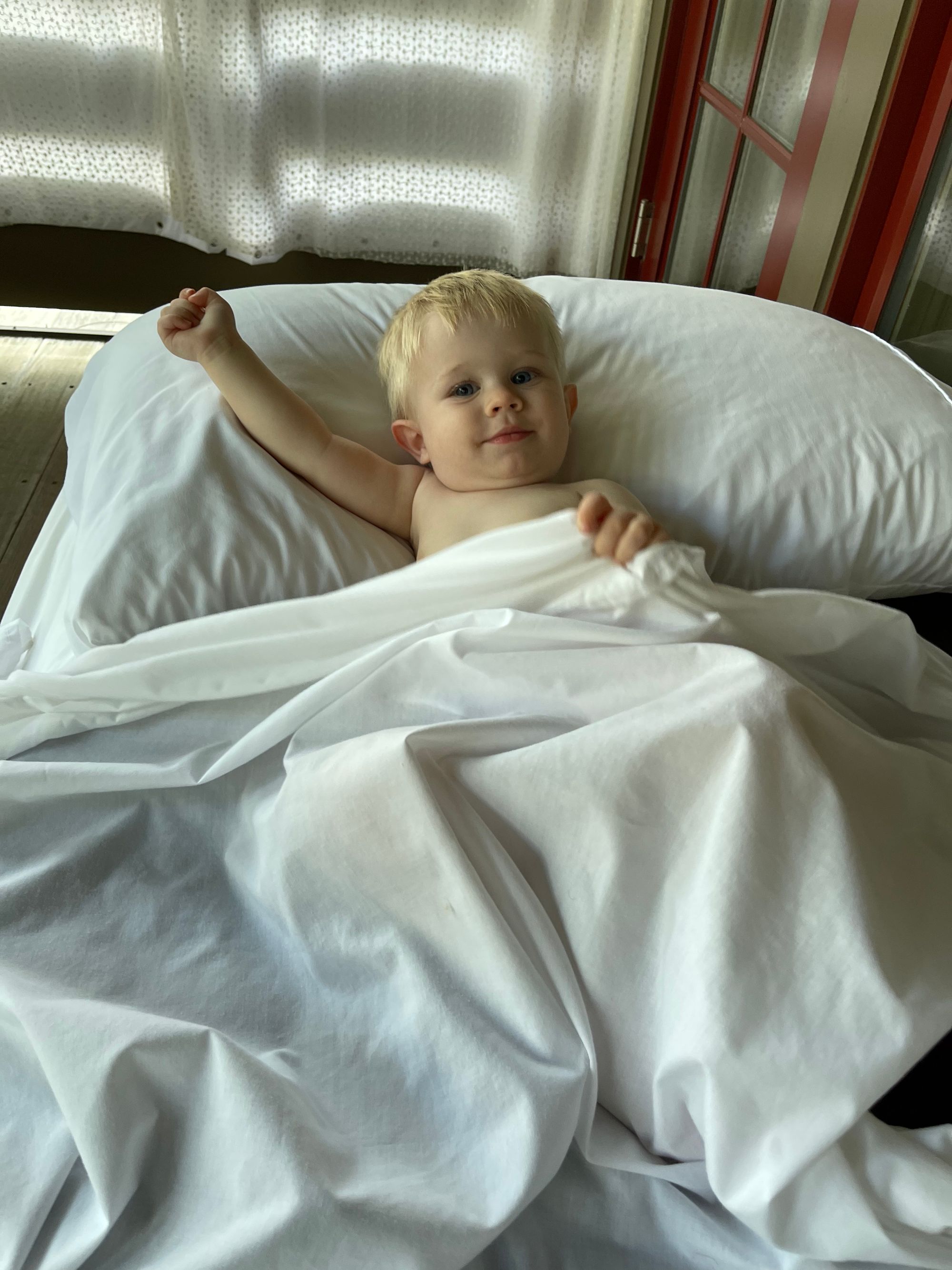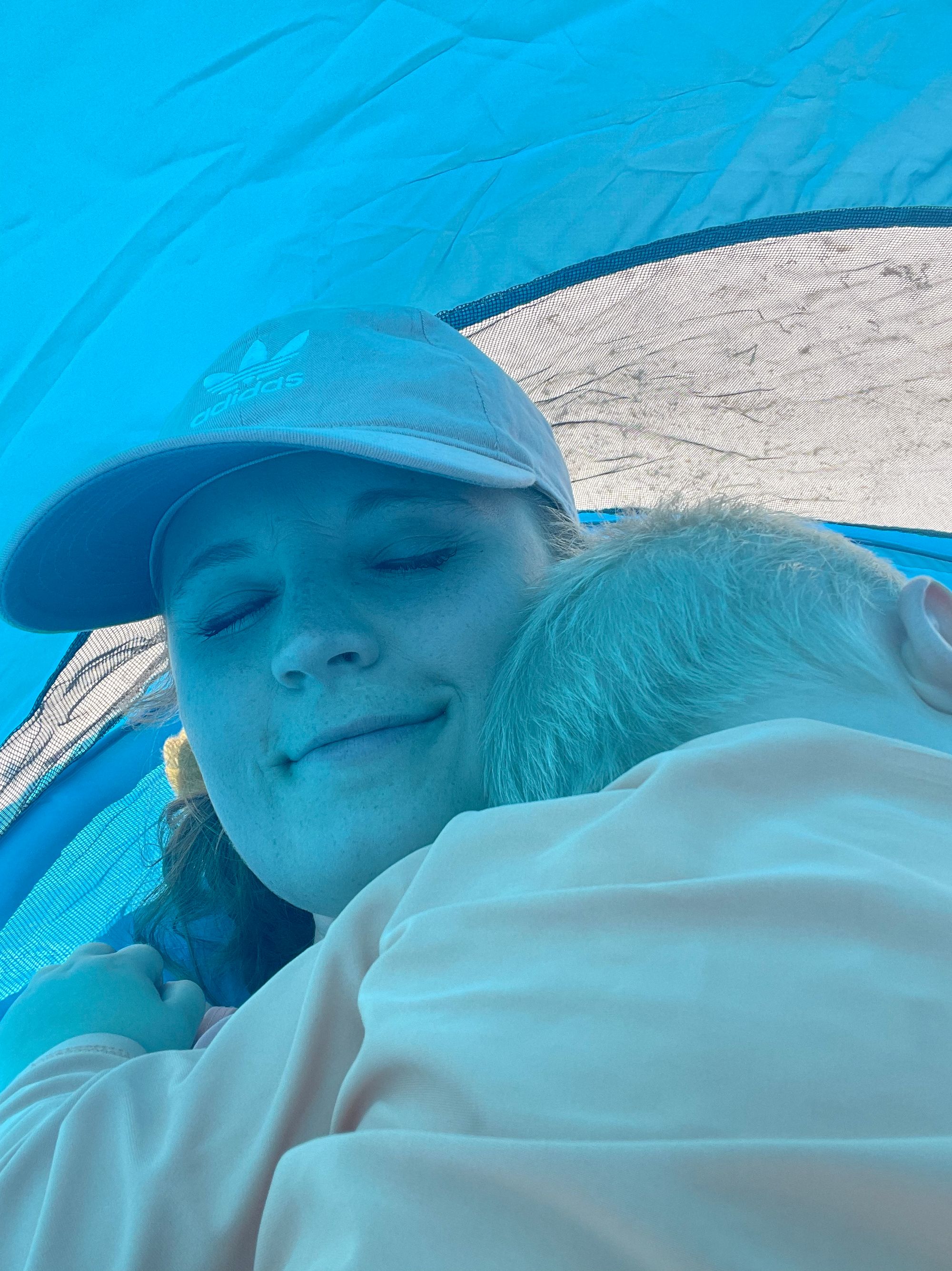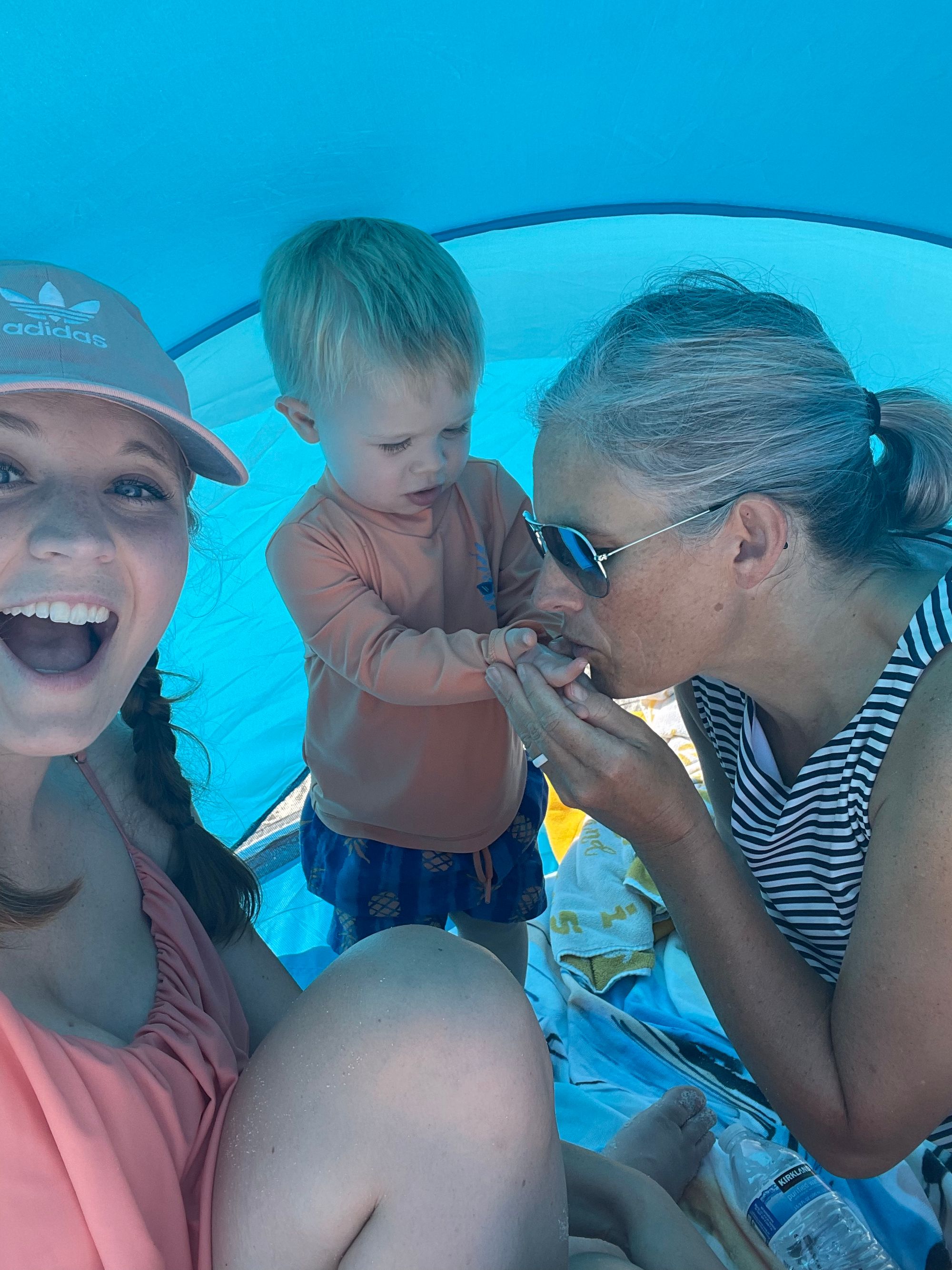 Benson was on nap boycott... so around 1:30 we headed to the beach! We tried to get him to nap in his Ikea tent, but would only sleep if he was laying on top of me. I was sweating! He did a micro nap, and we played in the water. :)