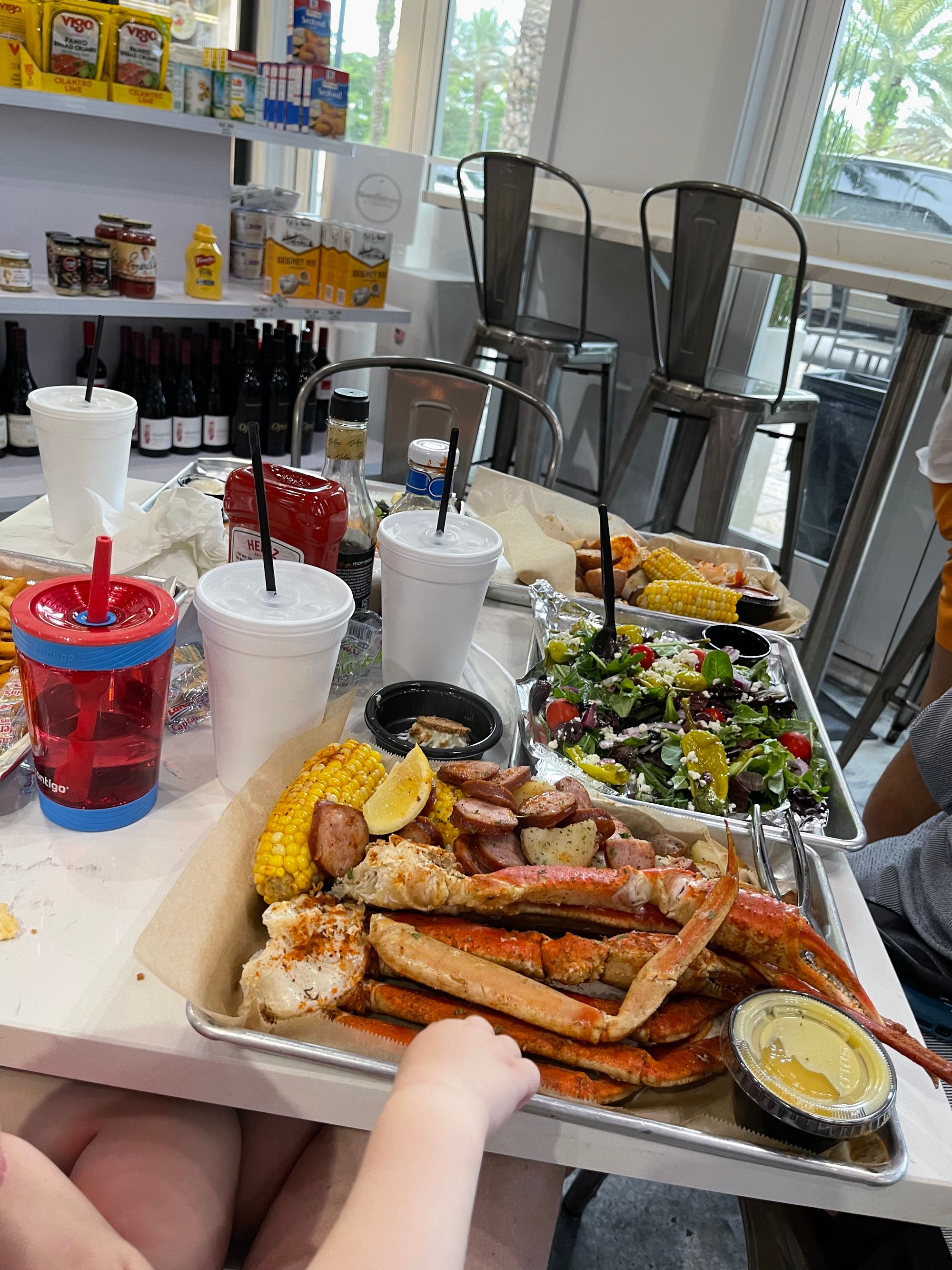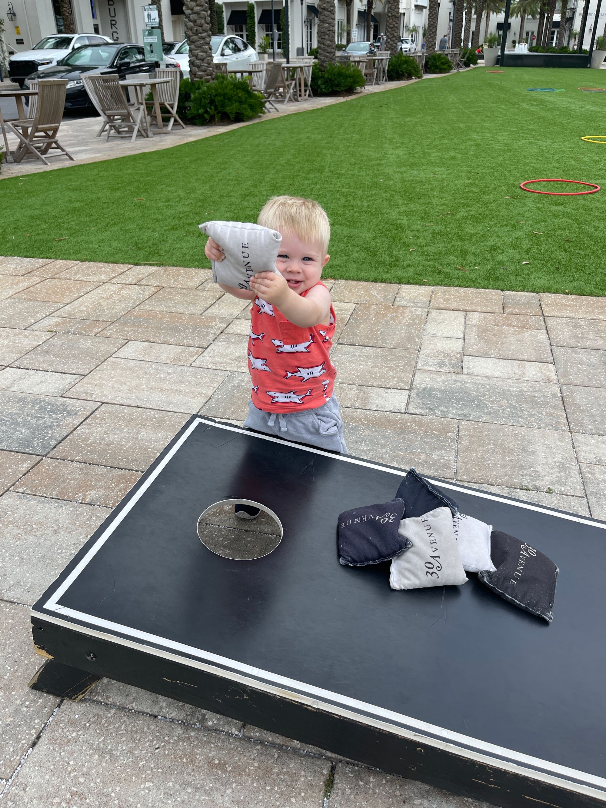 I woke up to the smell of fresh bread baking... YUM! Damon knocks it out of the park with this bread. My only request was to find some crab legs... so we tried a new place called Goatfeathers, and it was so good! Benson enjoyed the crab too! We wandered around the complex after and played some cornhole. :)