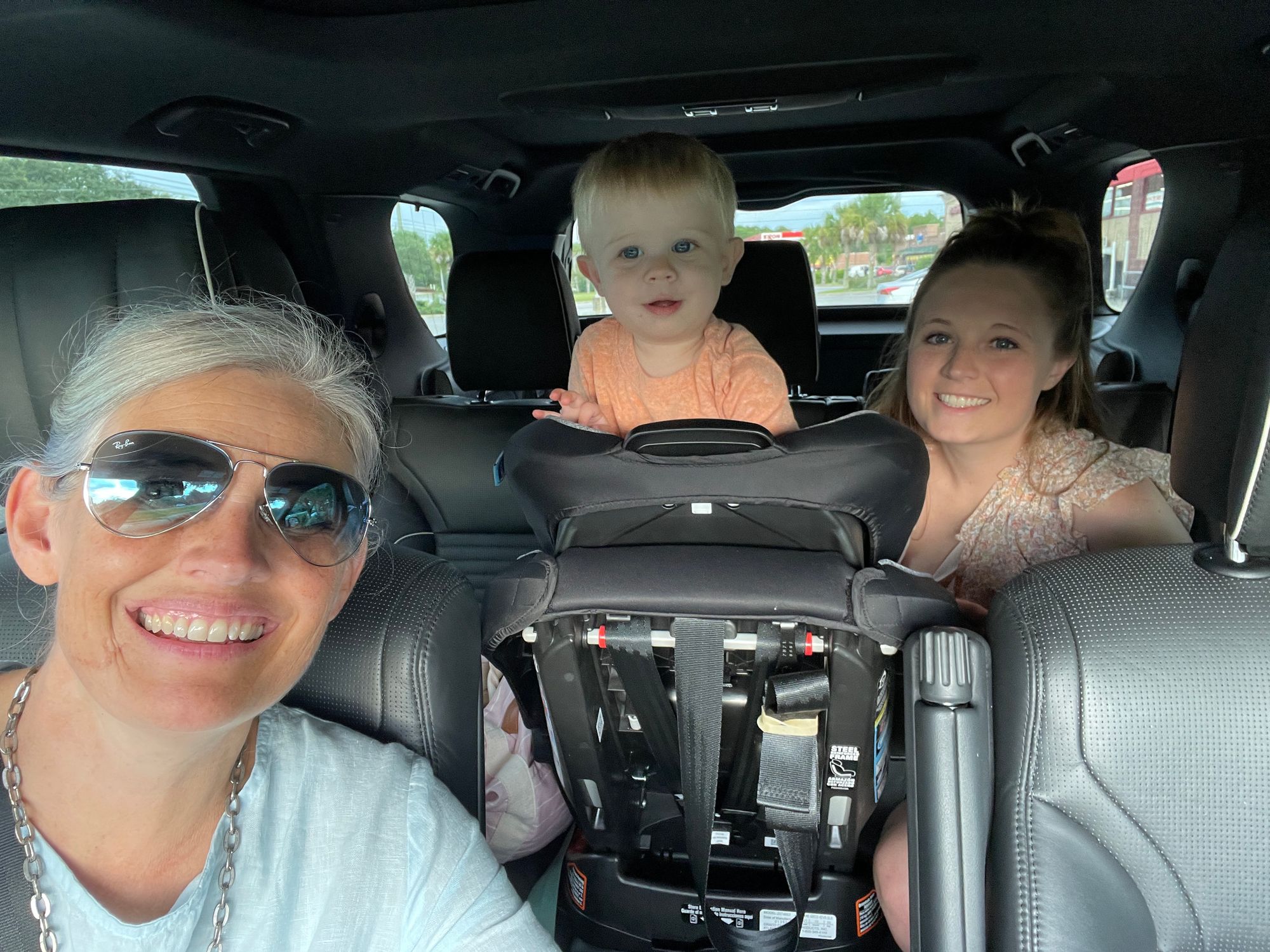 We started our drive to the airport in a huge rain storm... It's about an hour and fifteen minutes. By the end of it Benson was DONE!