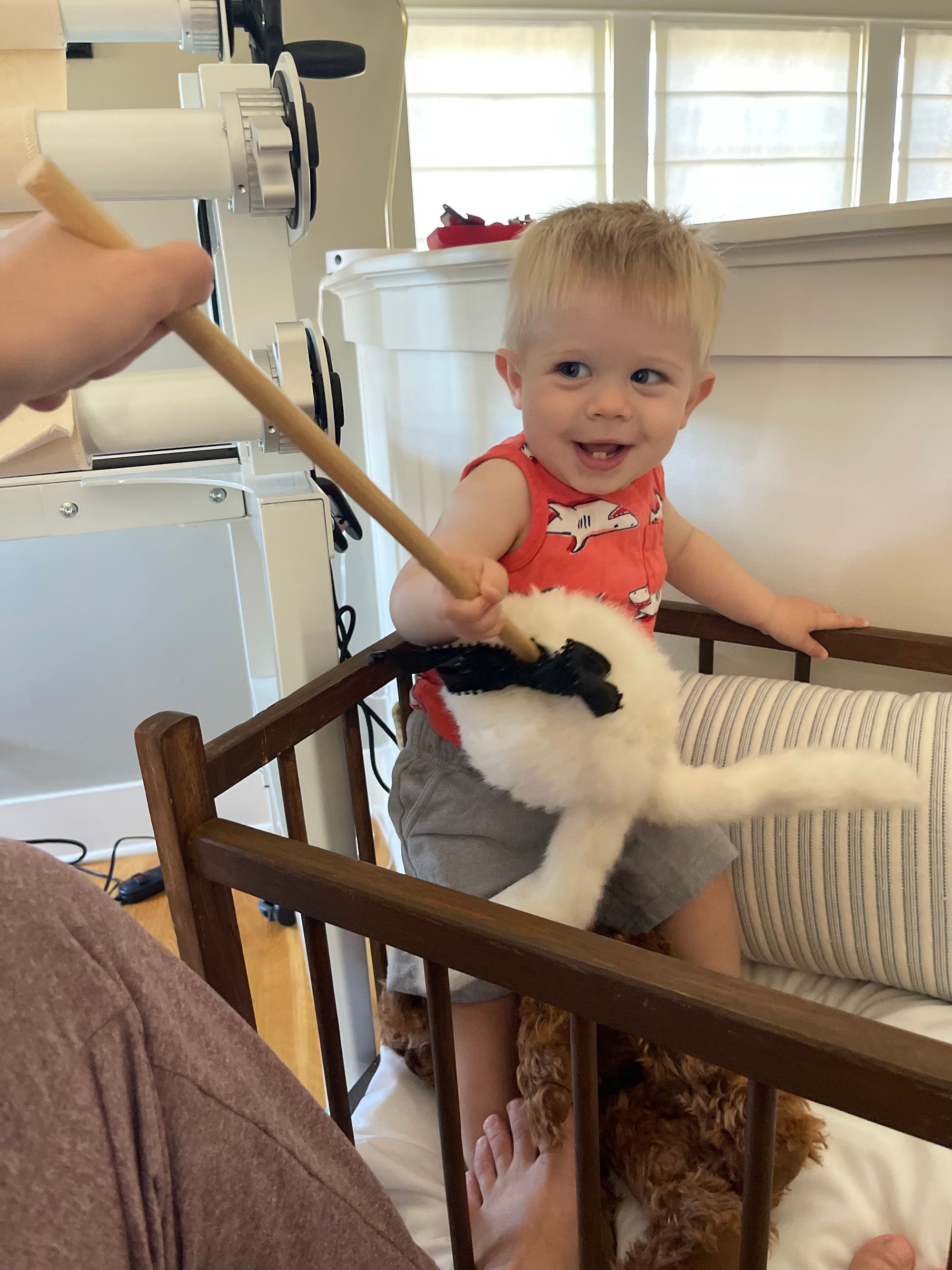 Benson plays a little more, takes and a nap and is sad to wake up and see we are packing up. We installed a measuring stick and grab benny's height. Grandma says no more growing. :)