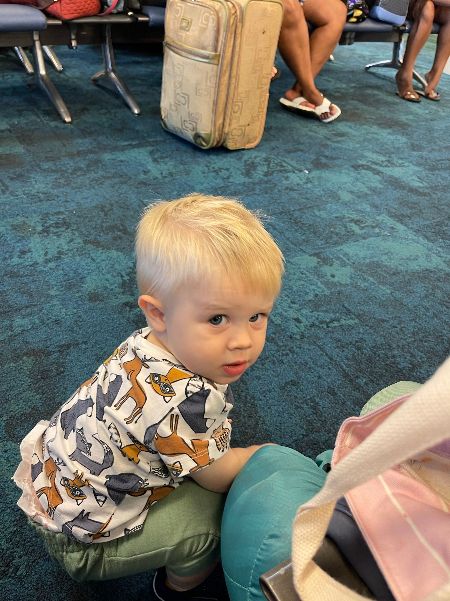 We flew out Monday, August 1 at 9 pm. I was a little nervous to fly all alone with Benson... but he did great! We played and ate snacks for the quick 1 hour 20 minute flight. Poor Benson was soooo over tired on our drive home... but we made it and went to bed!