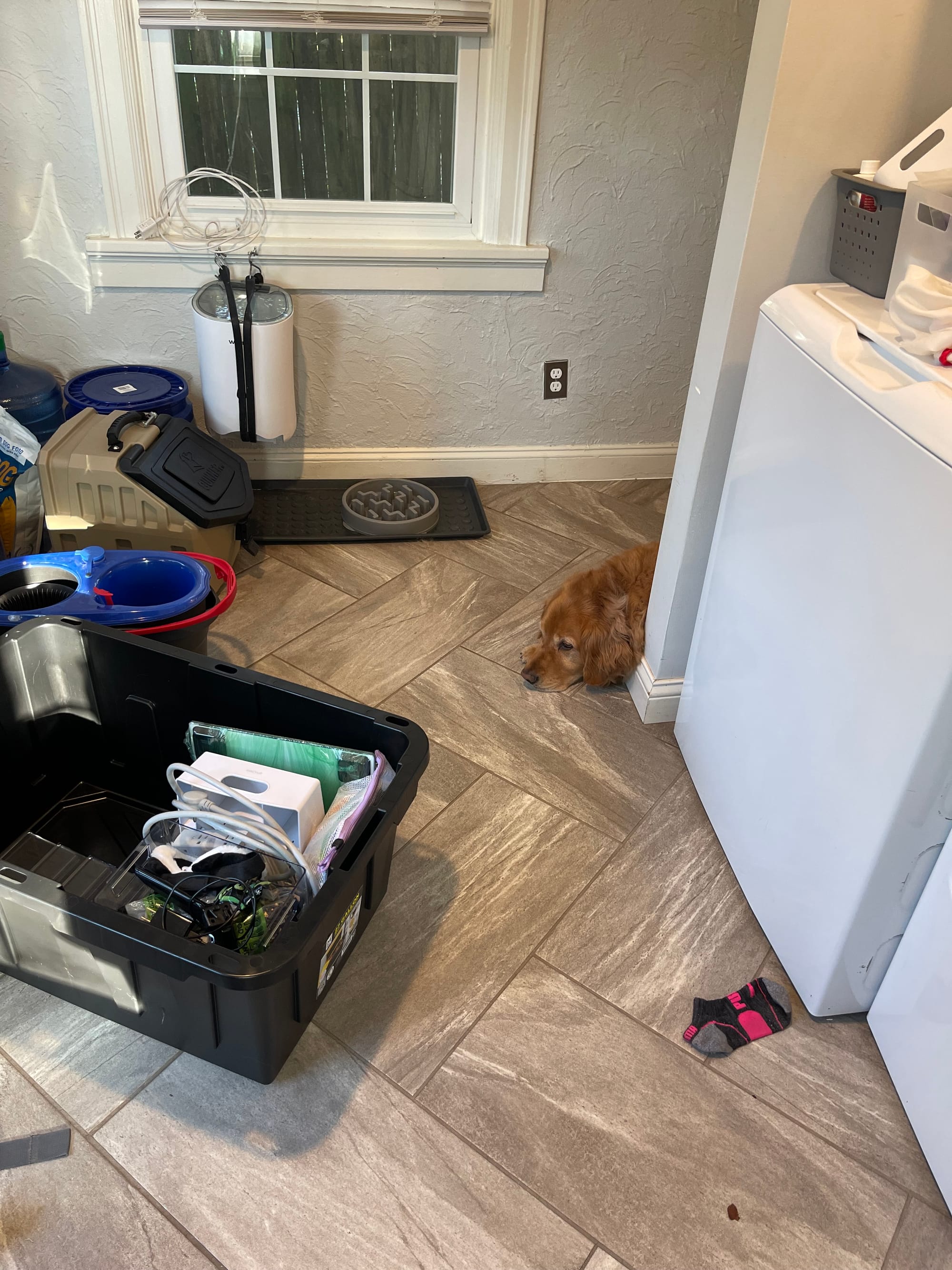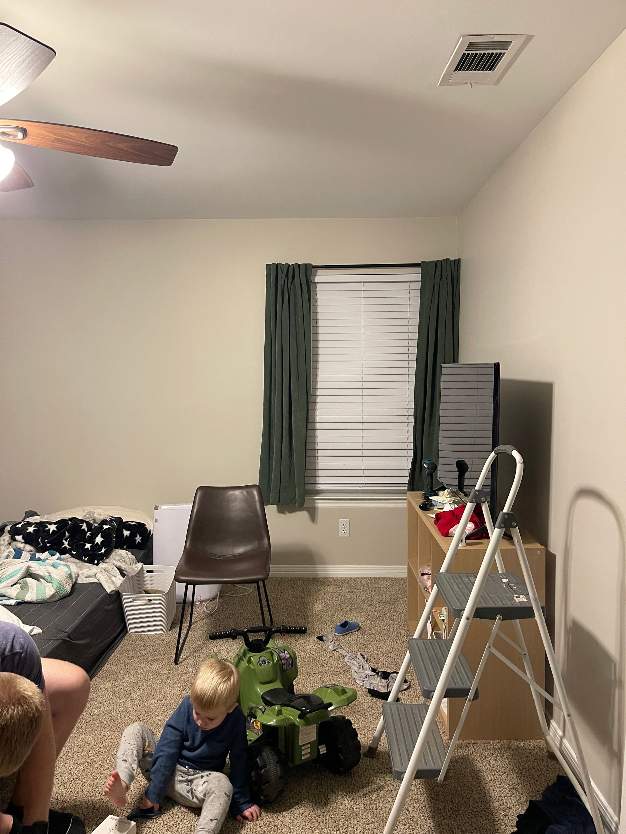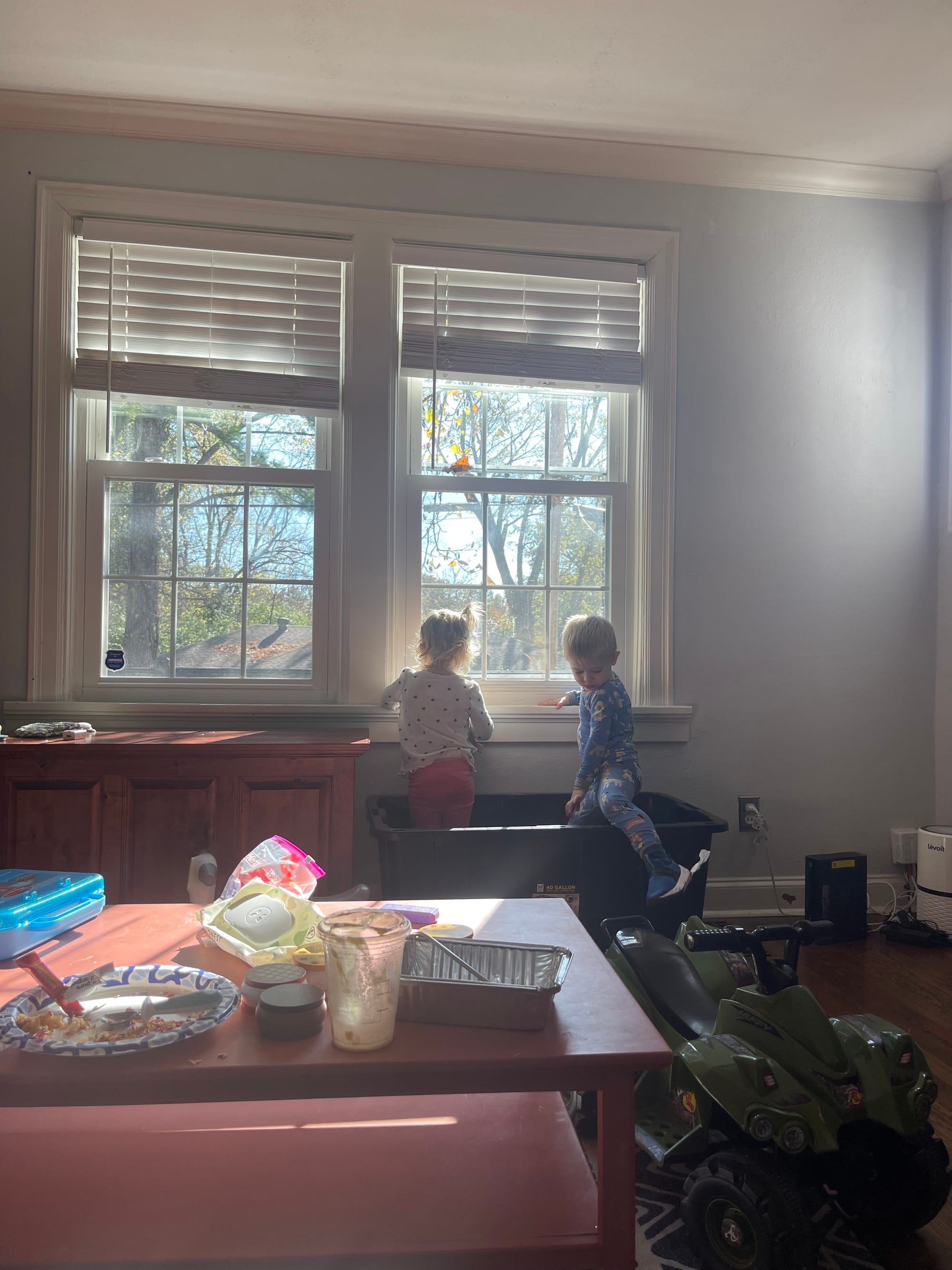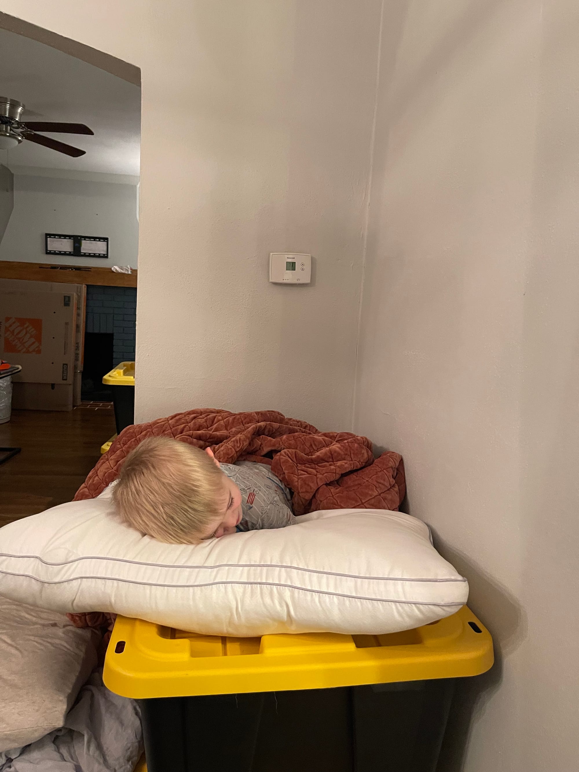 Ben has turned out pile of totes into a bunk bed. He thinks we should all sleep out here.
