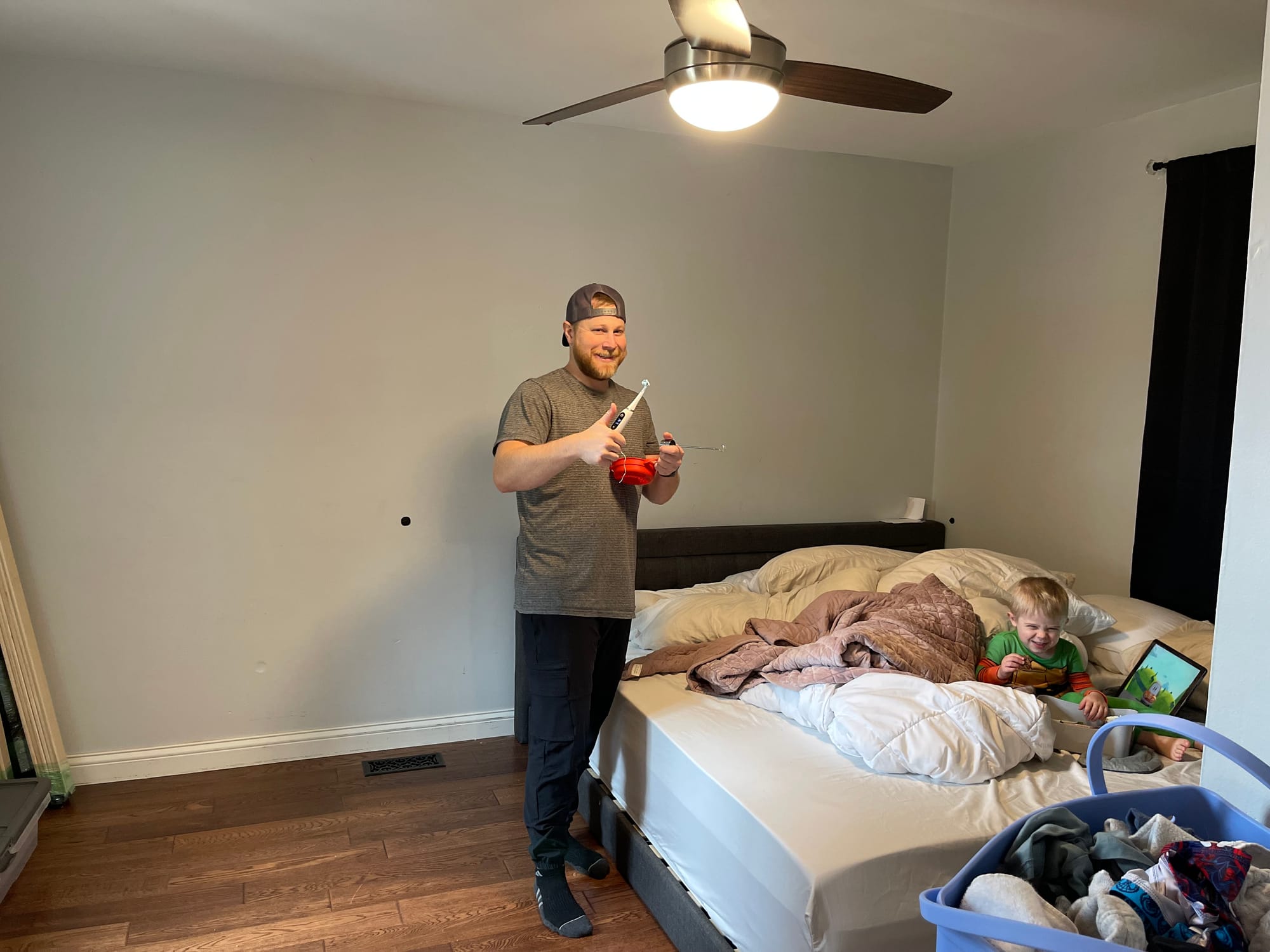 These guys were thorough… to the extreme. It took much longer than I thought it would, but none the less the boys and I had a great day hanging out in our bedroom to stay out of their way! Ben was enjoying sharing his ice cream with him… oh my!