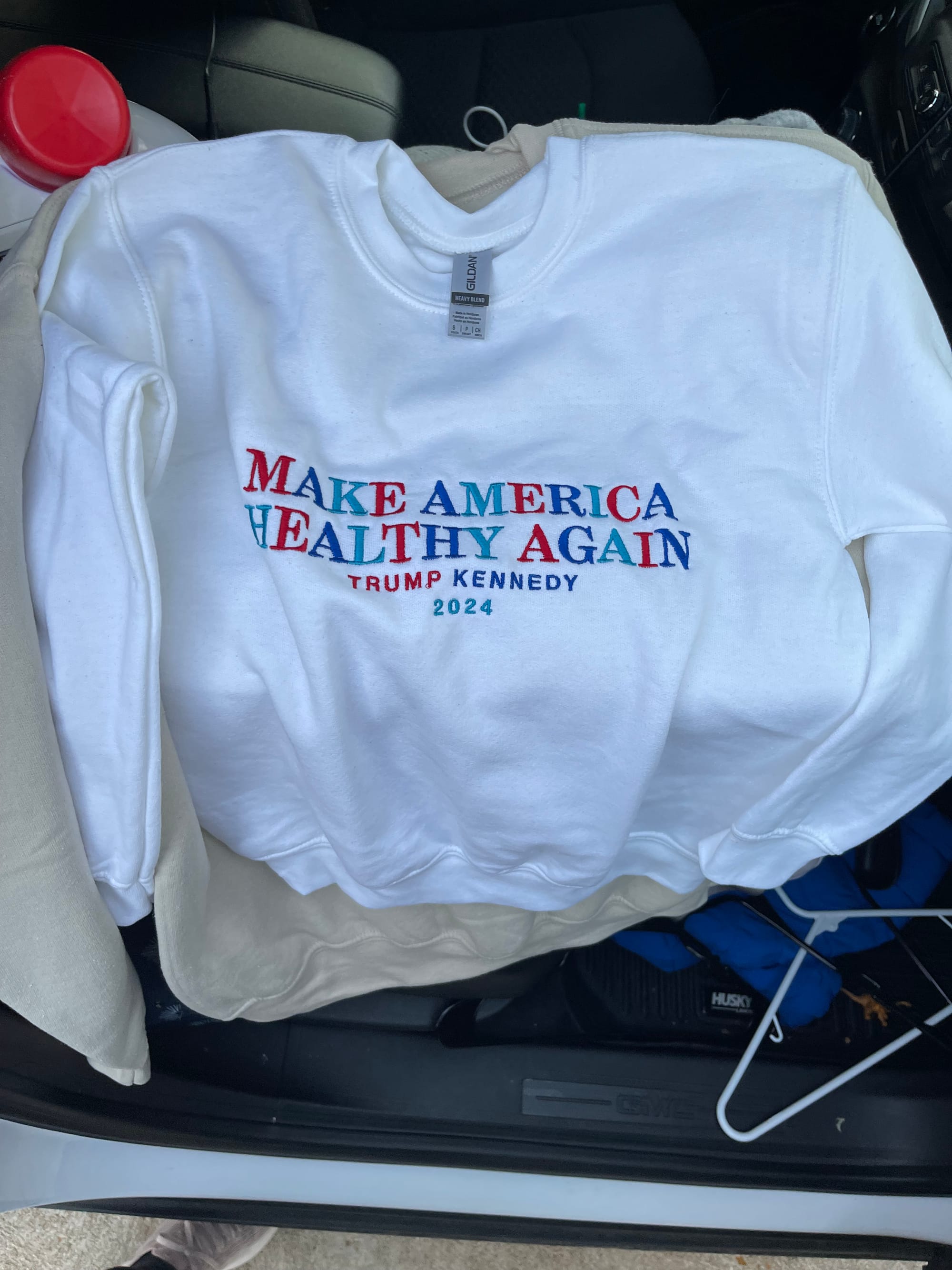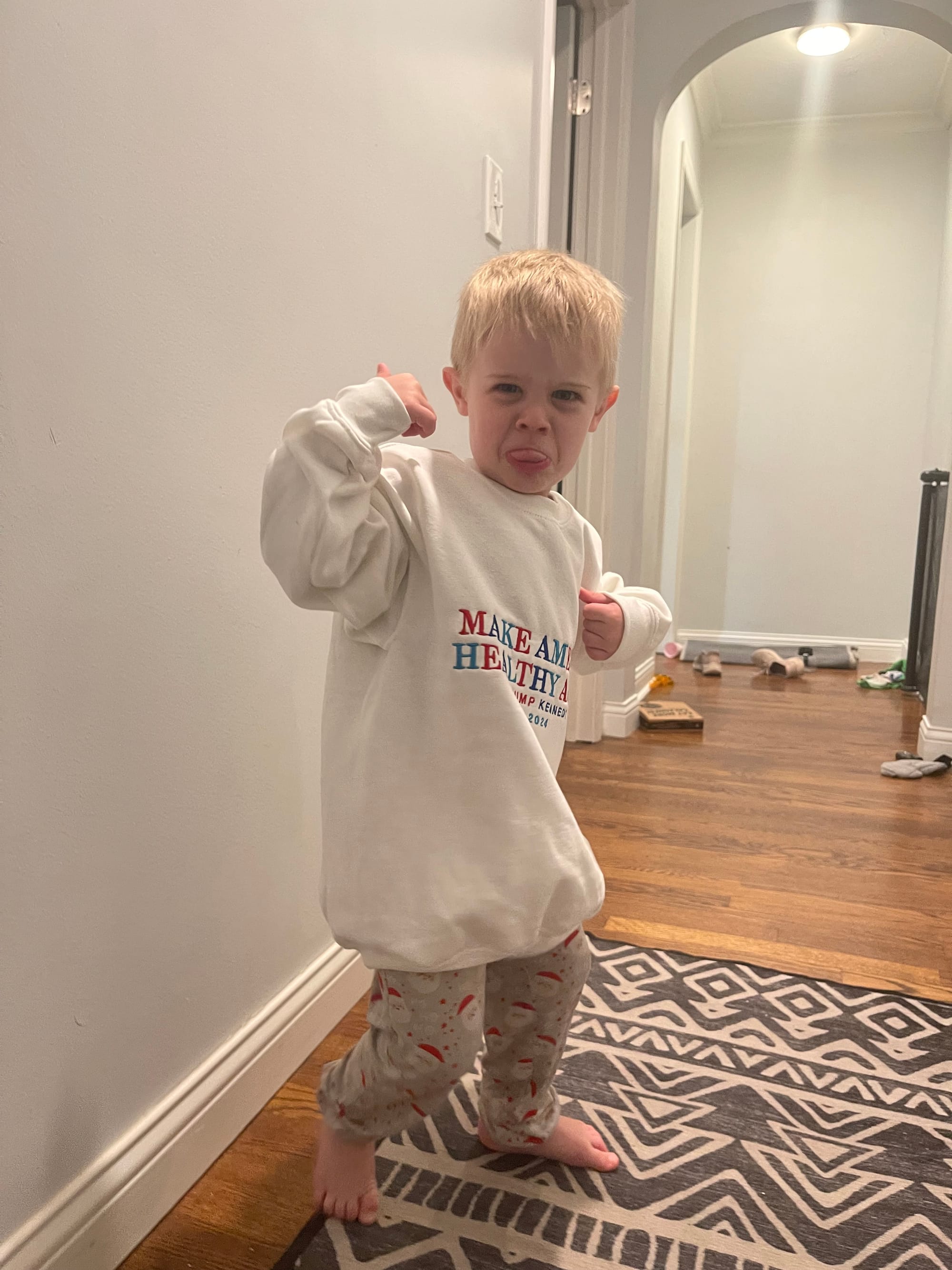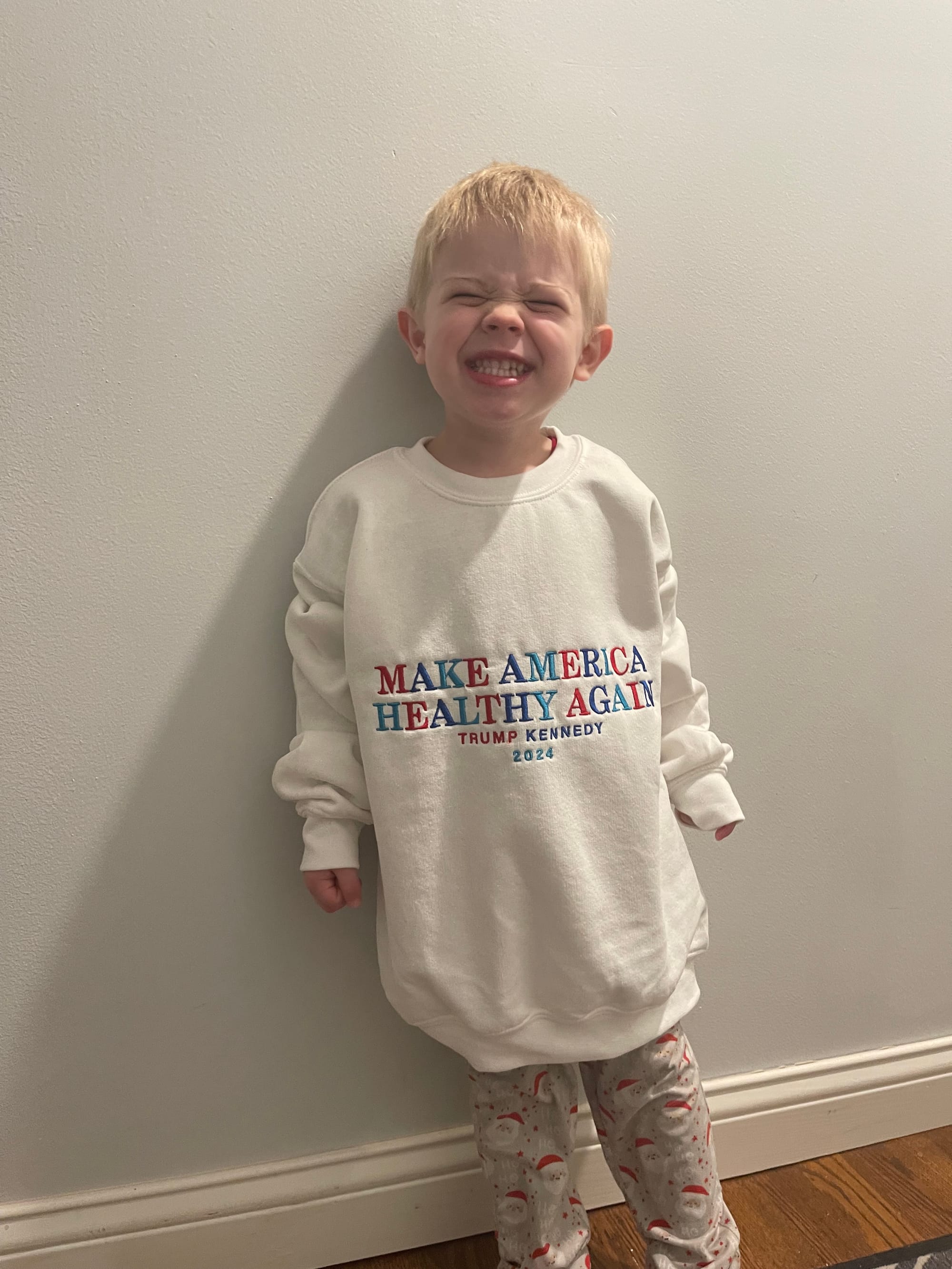 I ordered MAGA and MAHA sweatshirts for myself. When I opened one it looked rather small… it was a youth small… but Ben looks cute in it!