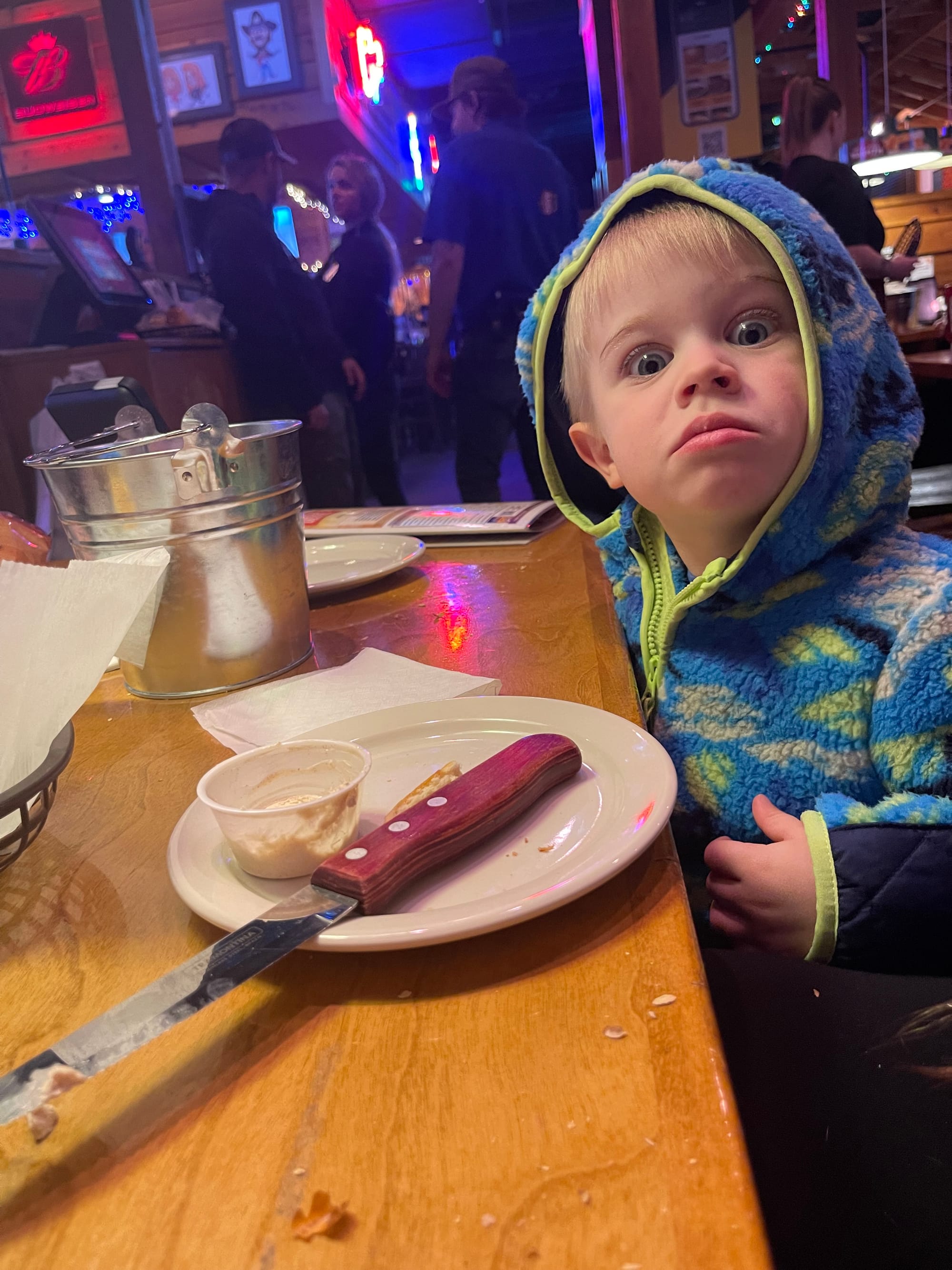 Twas the night before the movers come and Logan presents his masters thesis…. So we took off to Texas Road House for a stress free family moment, per bensons request. :)
