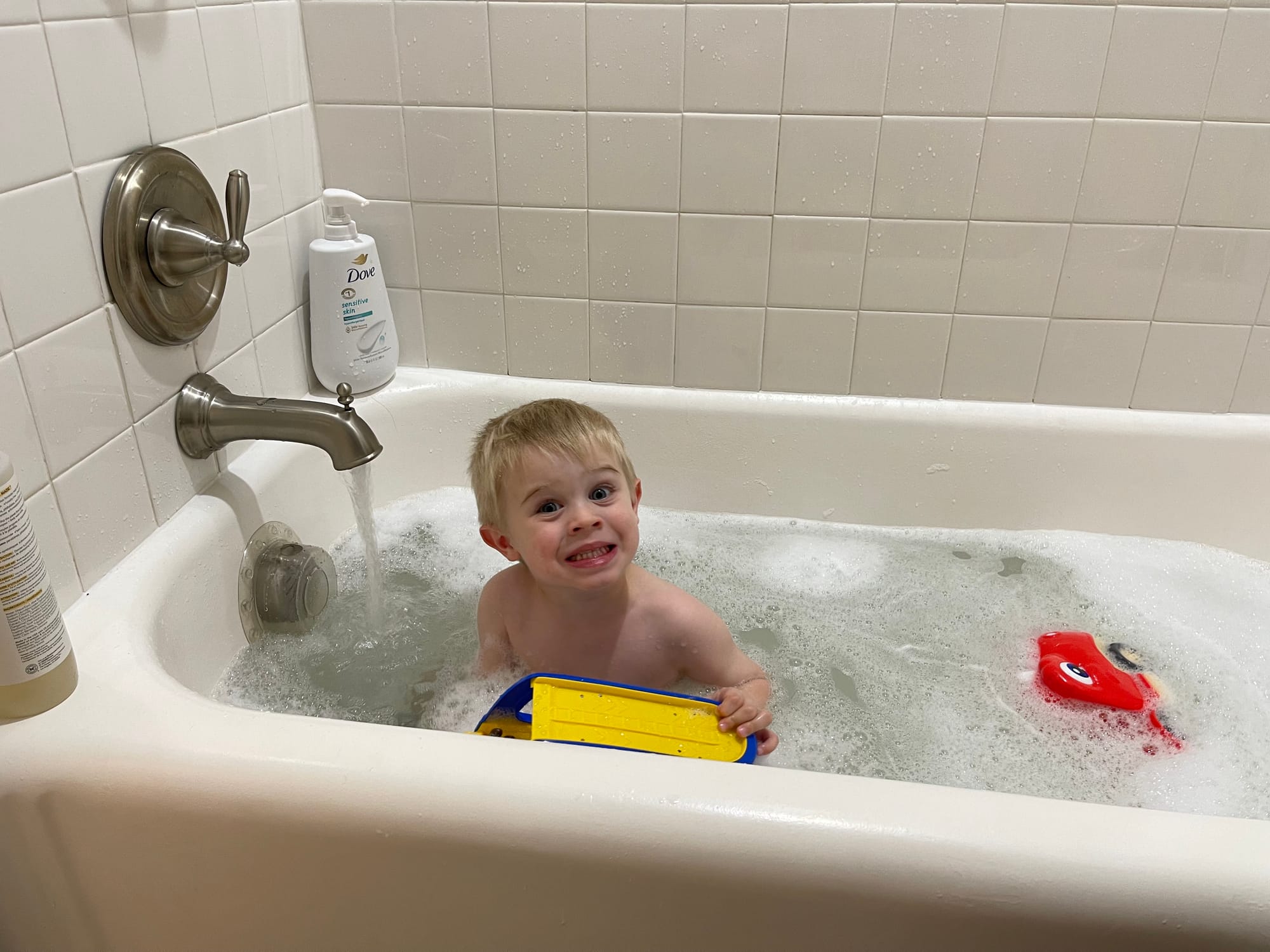We are really making progress on the hair washing! Still doesn’t love it, but no tears! Still loving his “bunk beds”.
