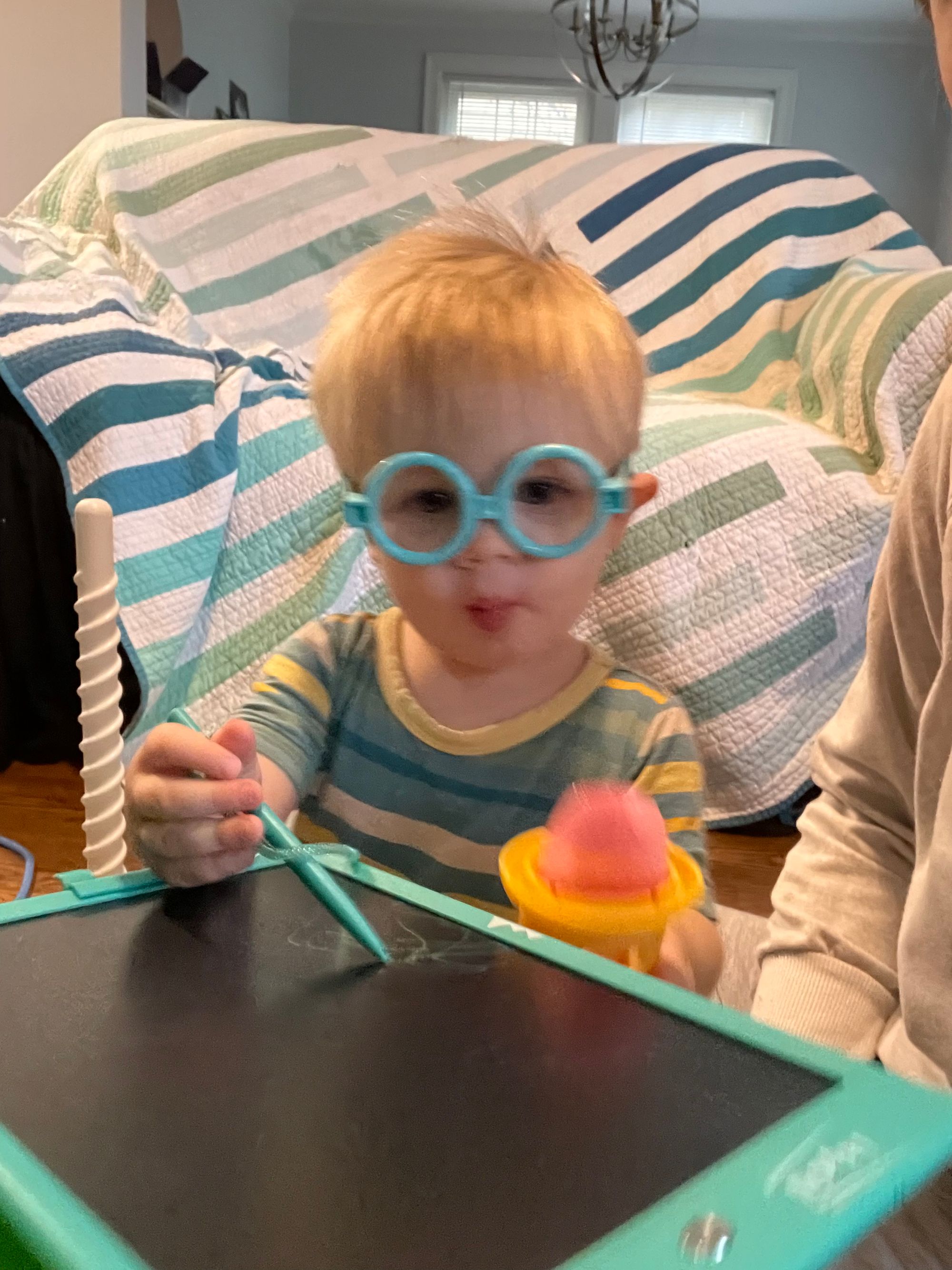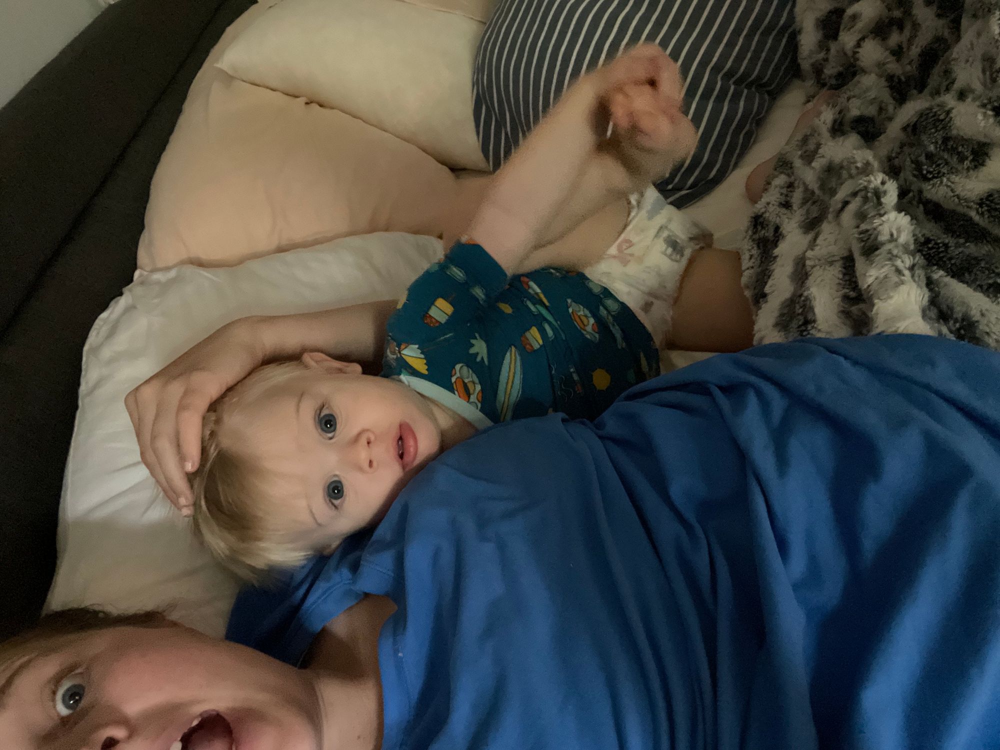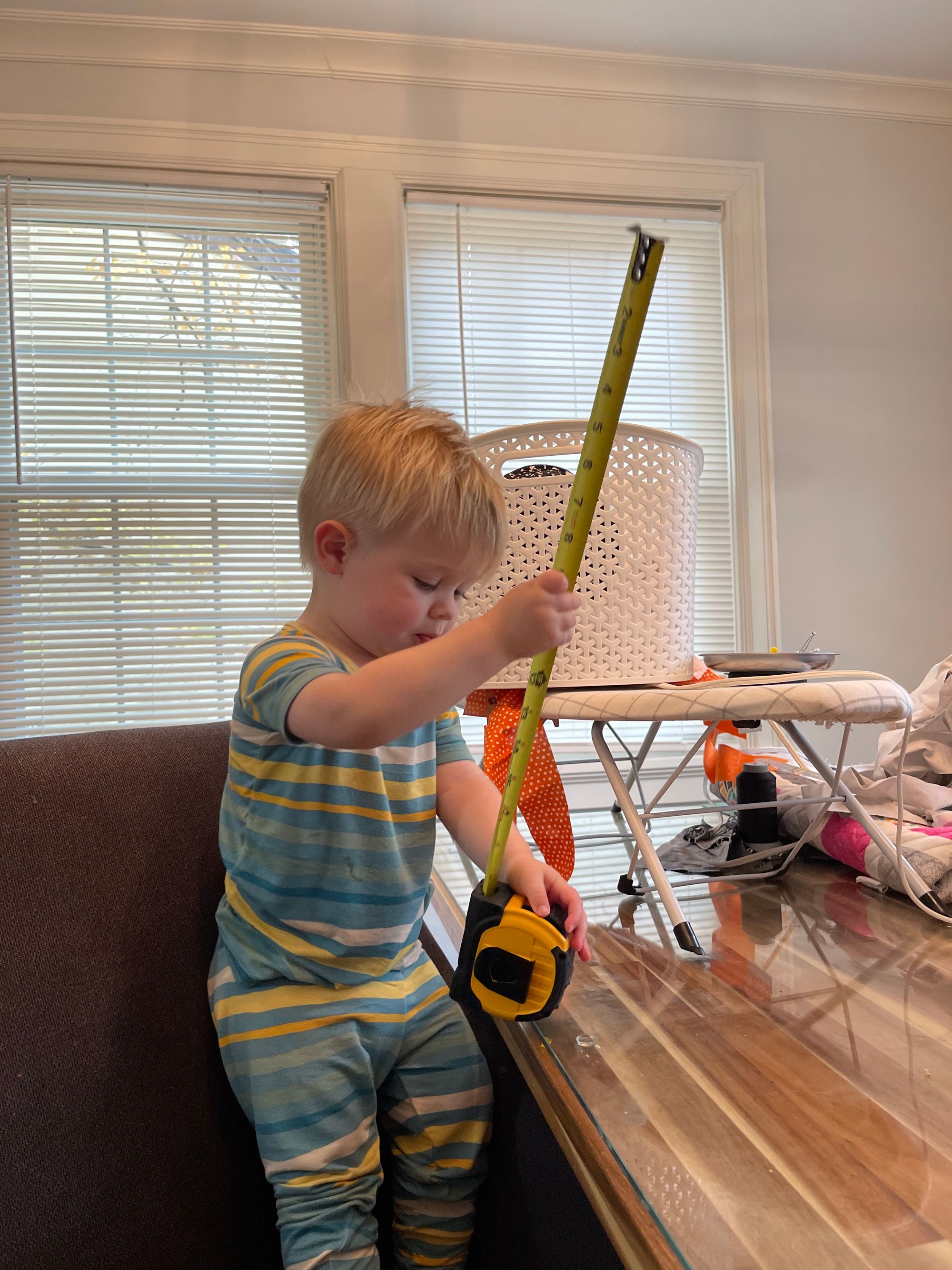 Sewing.. Chick fila for dinner, and feeding the ducks! Logan has a mounted duck in our basement and Benson signs "bird" so he can go downstairs and pet the duck. Look at that WILD HAIR!