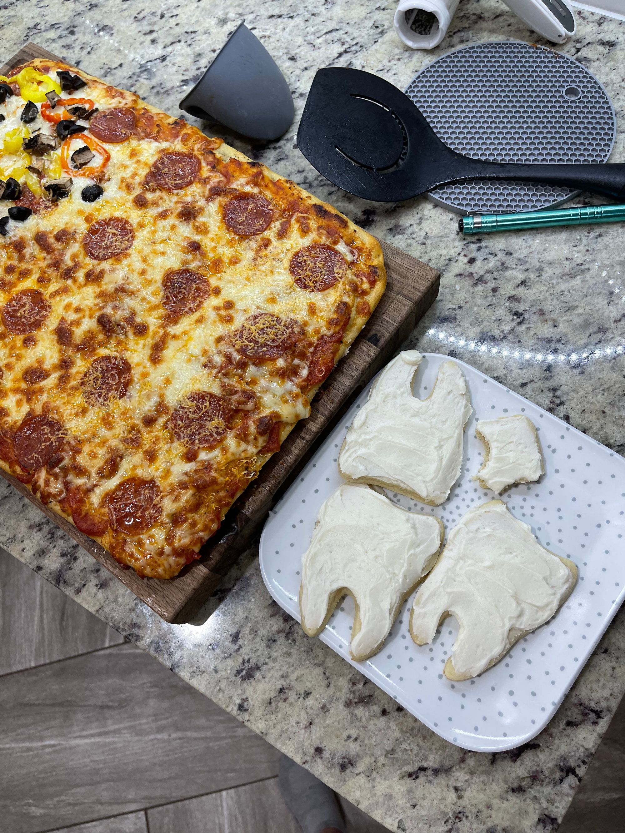 Pizza, tooth cookies and snuggles!