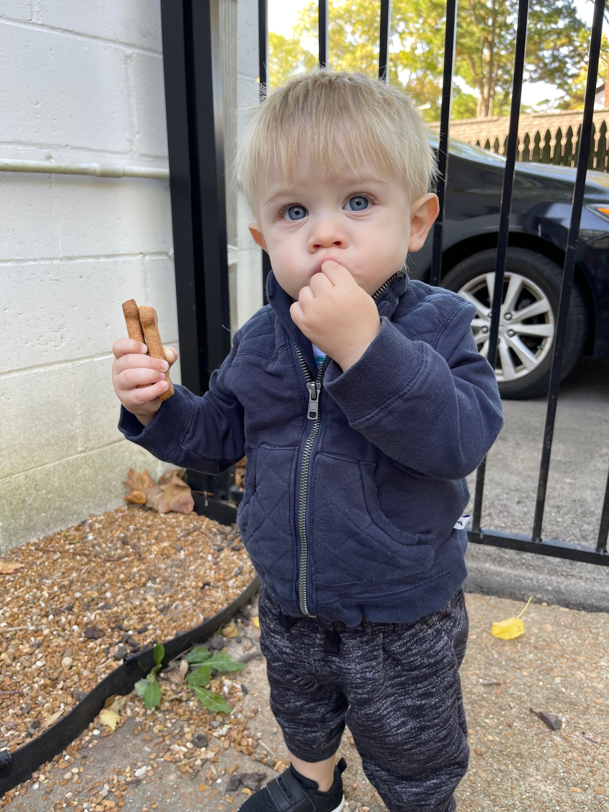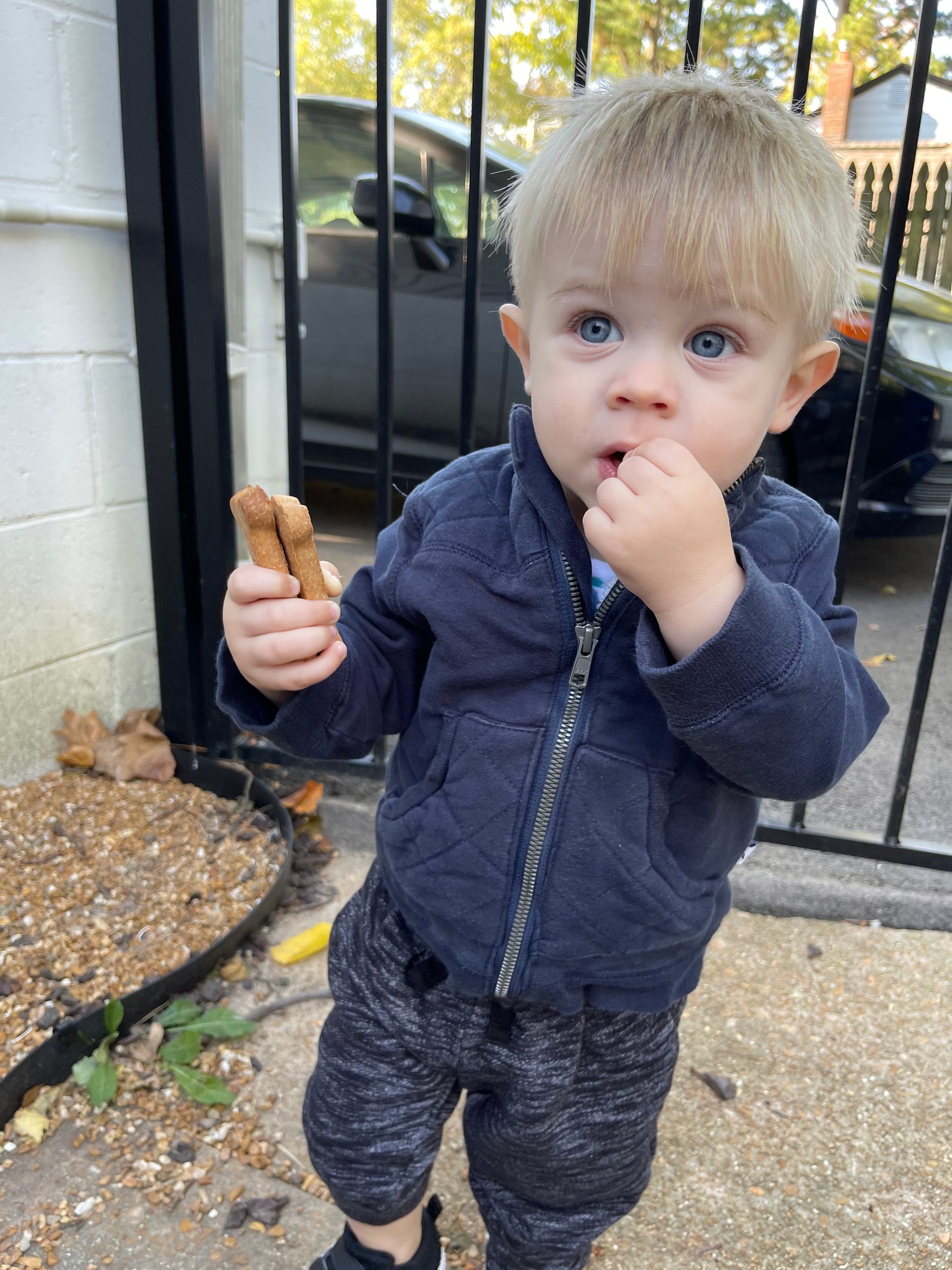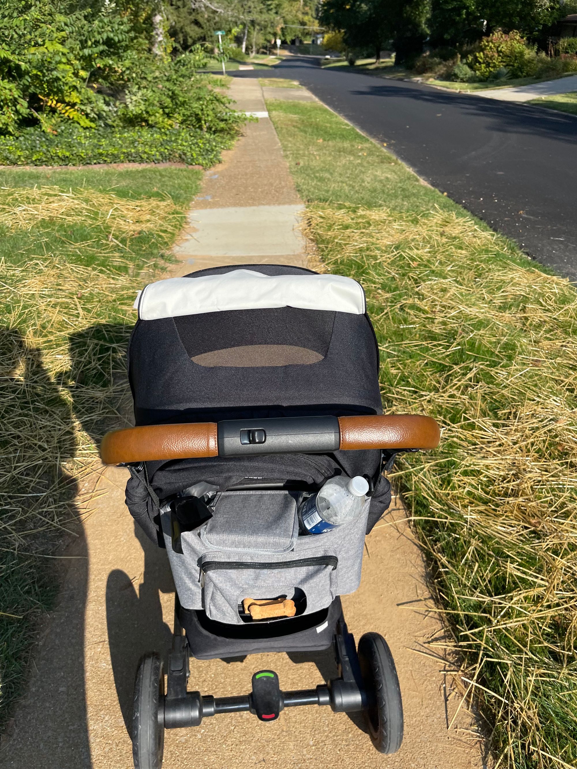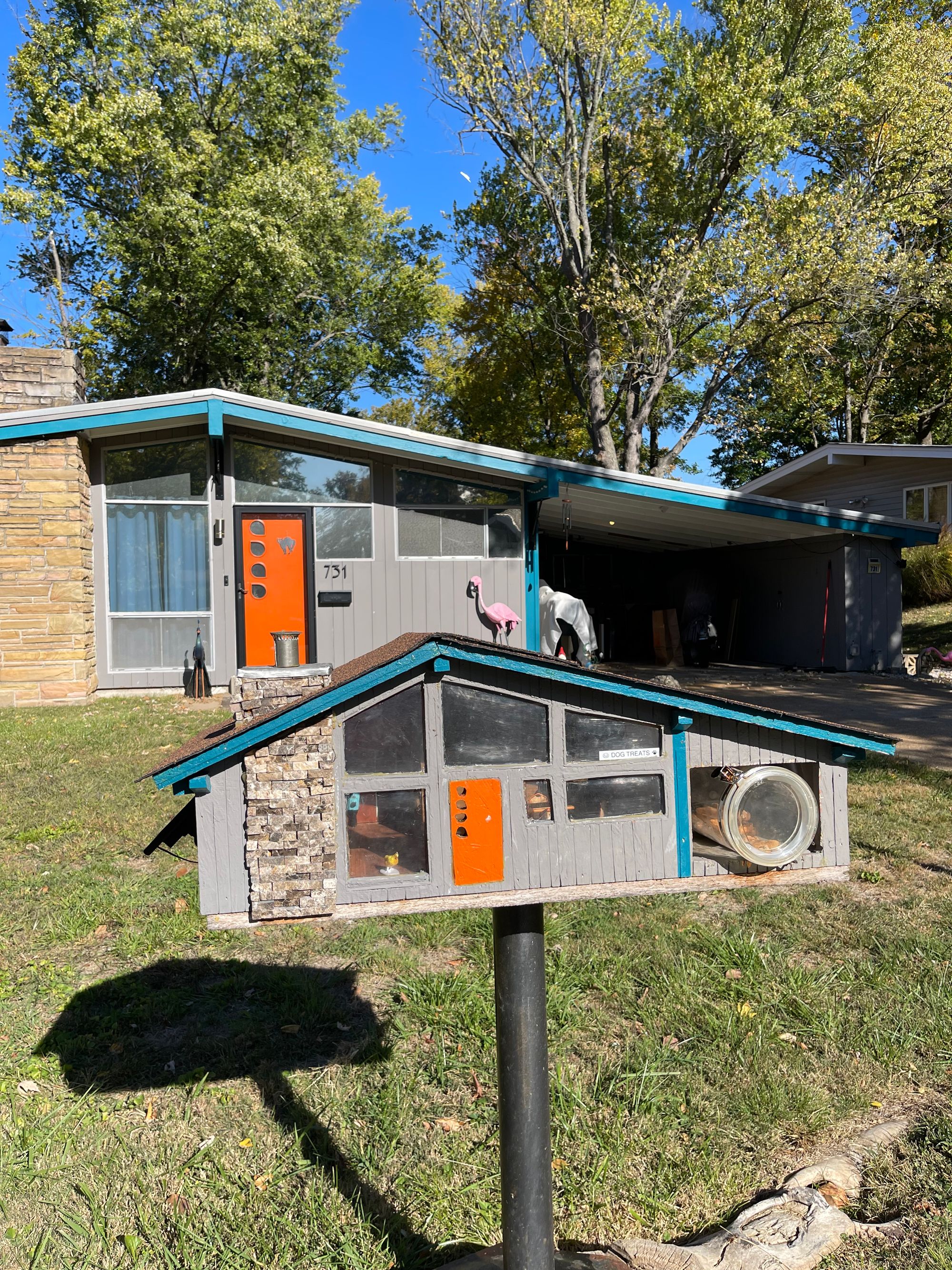 There is a long walk route we occassionally do for some good exercise. One morning I decided to be brave and do it with Benson! He isn't always the best stroller rider... so I was a little nervous how far I could potentially be packing him and the stroller! He totally shocked me and did so good! We collected some dog treats from this cute house with the best mailbox ever and he could hardly wait to get them home to Finn!