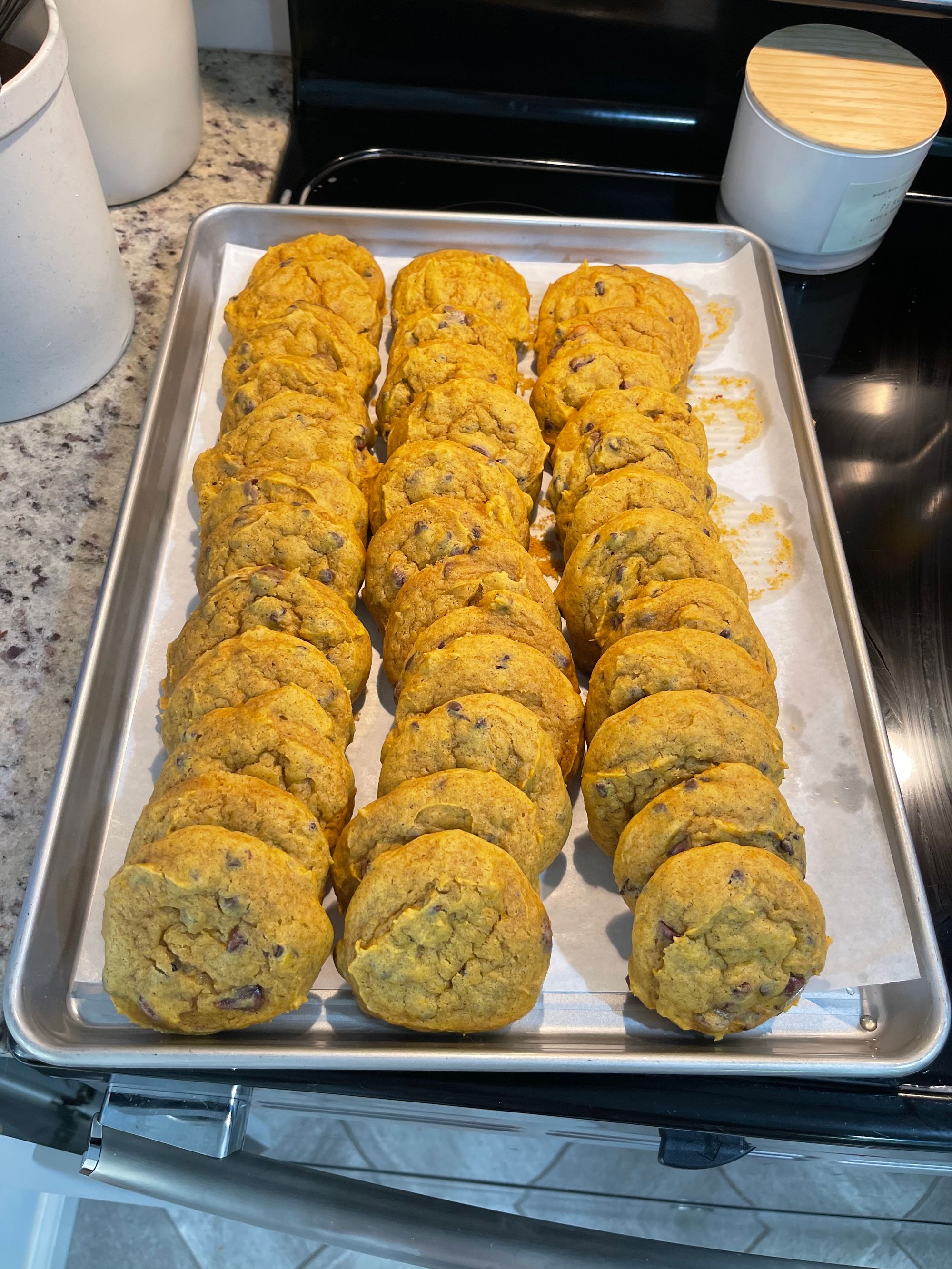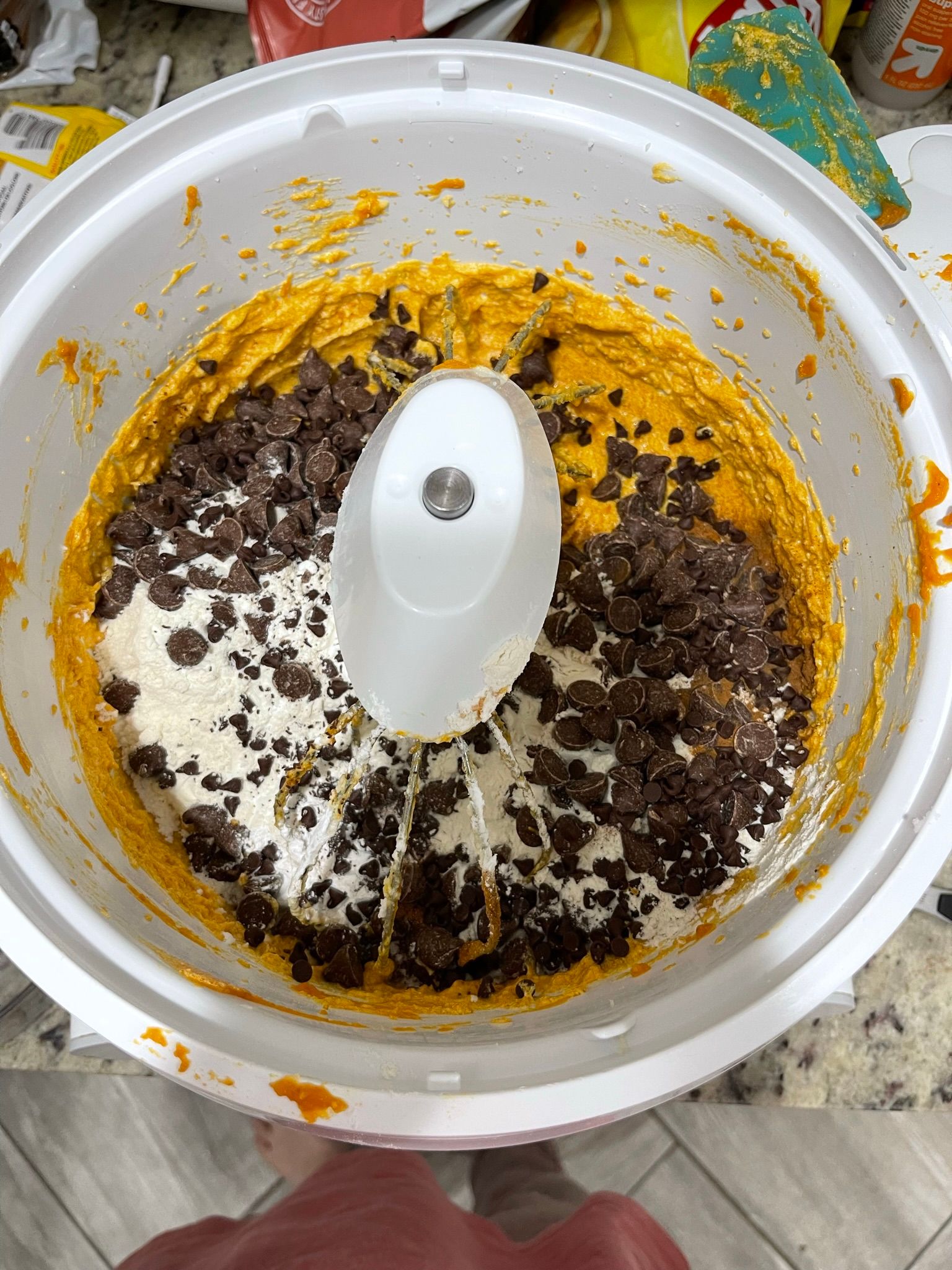 I made our first fall batch of pumpkin chocolate chip cookies!