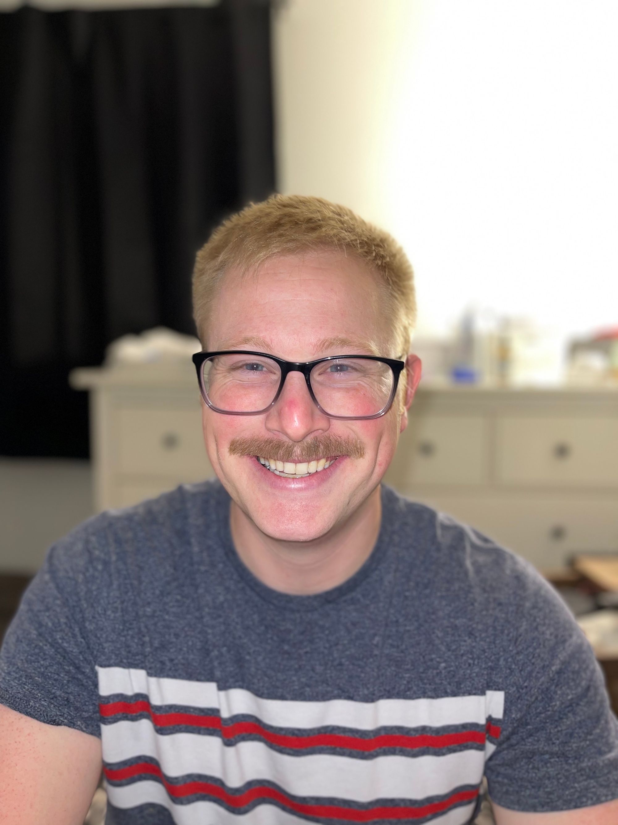 I don't think I've mentioned anything about Logan's facial hair... The residents all grow out their beards and trim them down to mustaches for the interviews. A playful joke on the interviewees. Logan brought up the idea of joining in... but then told me no way because he can't grow a beard. With some encouragement and pointing out that he's never really tried, he agreed to do it. And it has been so fun! The night before the last set of interviews he shaved it down to some handlebars, and I grabbed my eyebrow gel and dyed it. We had a good laugh!