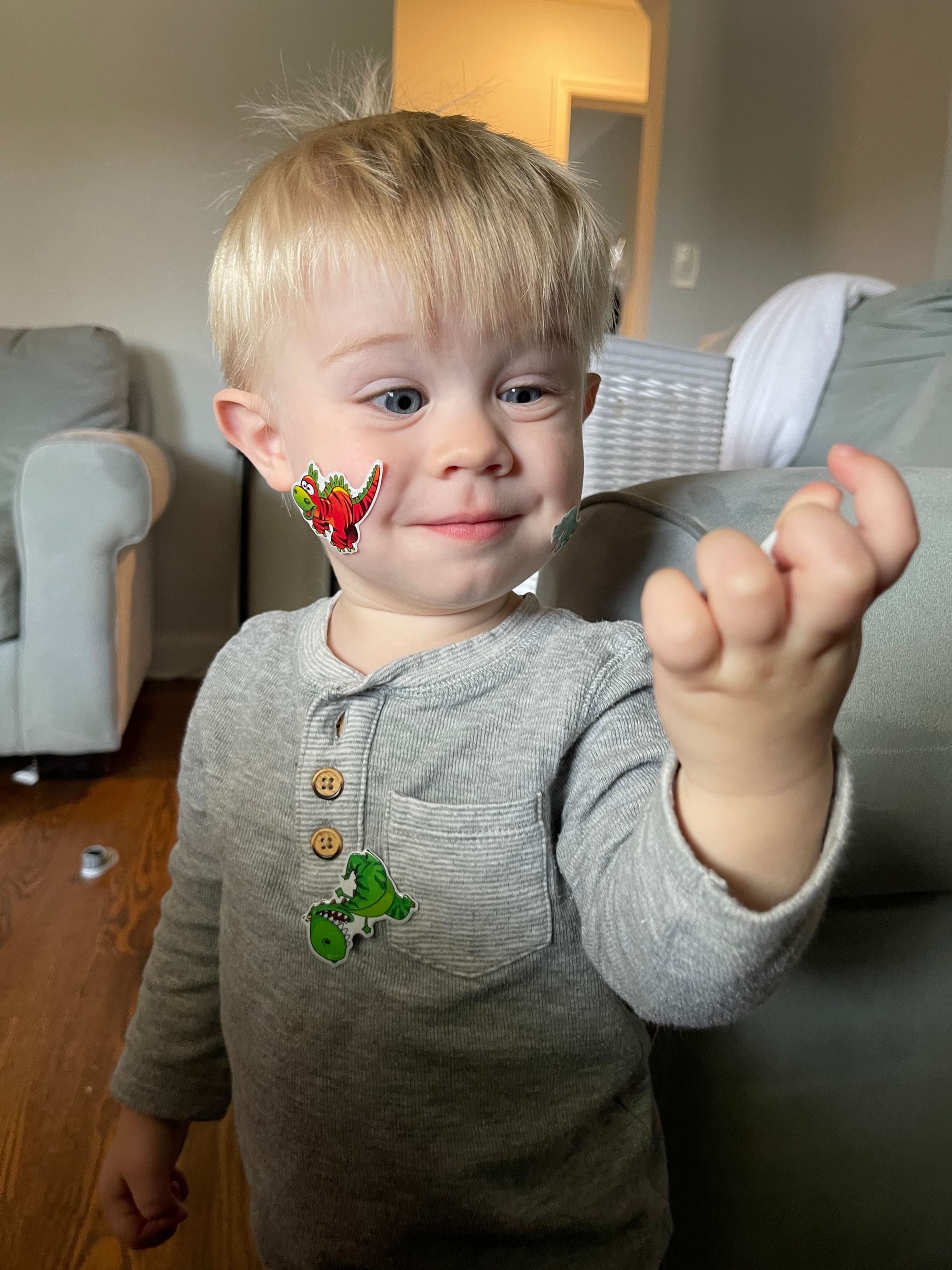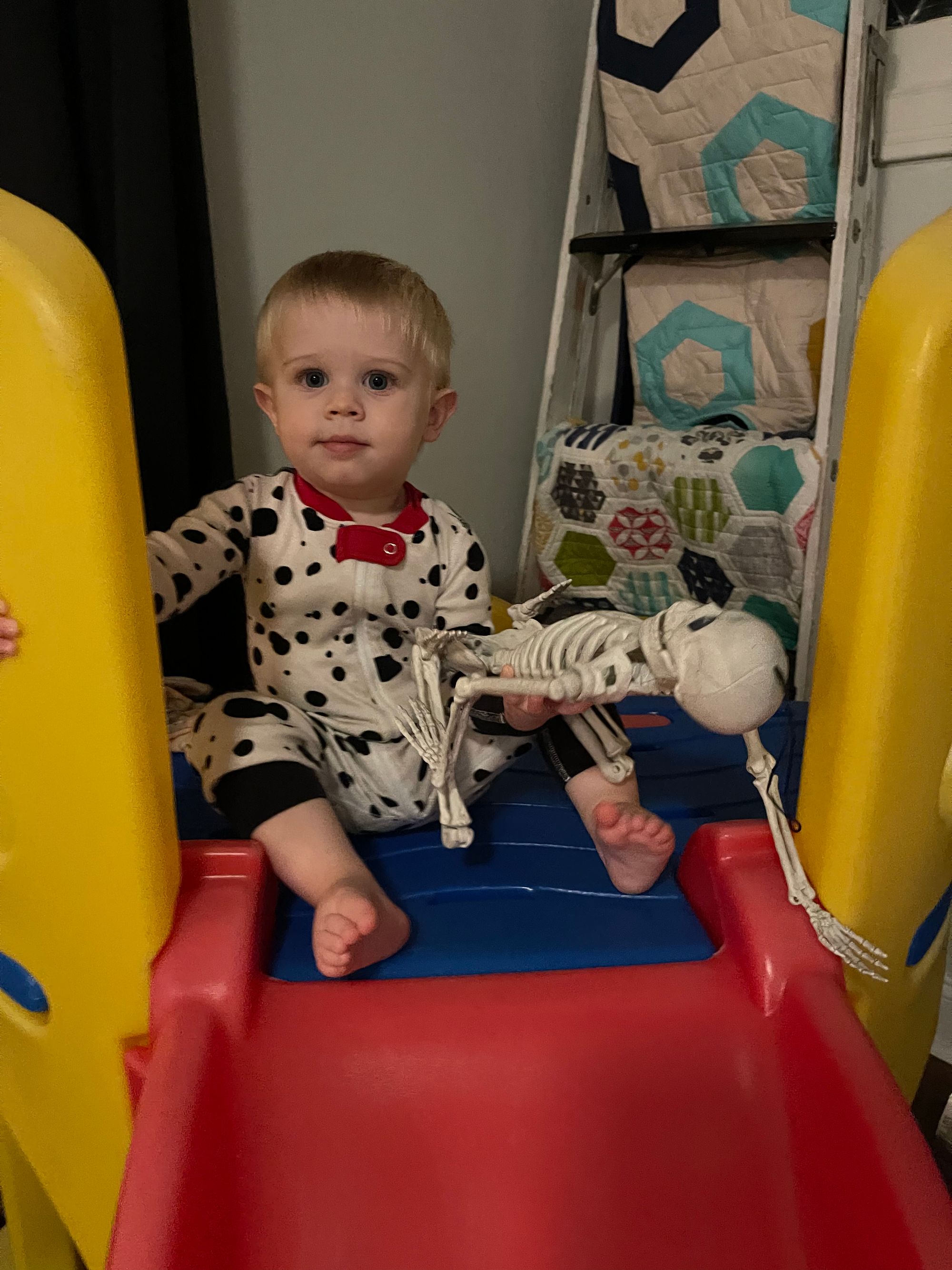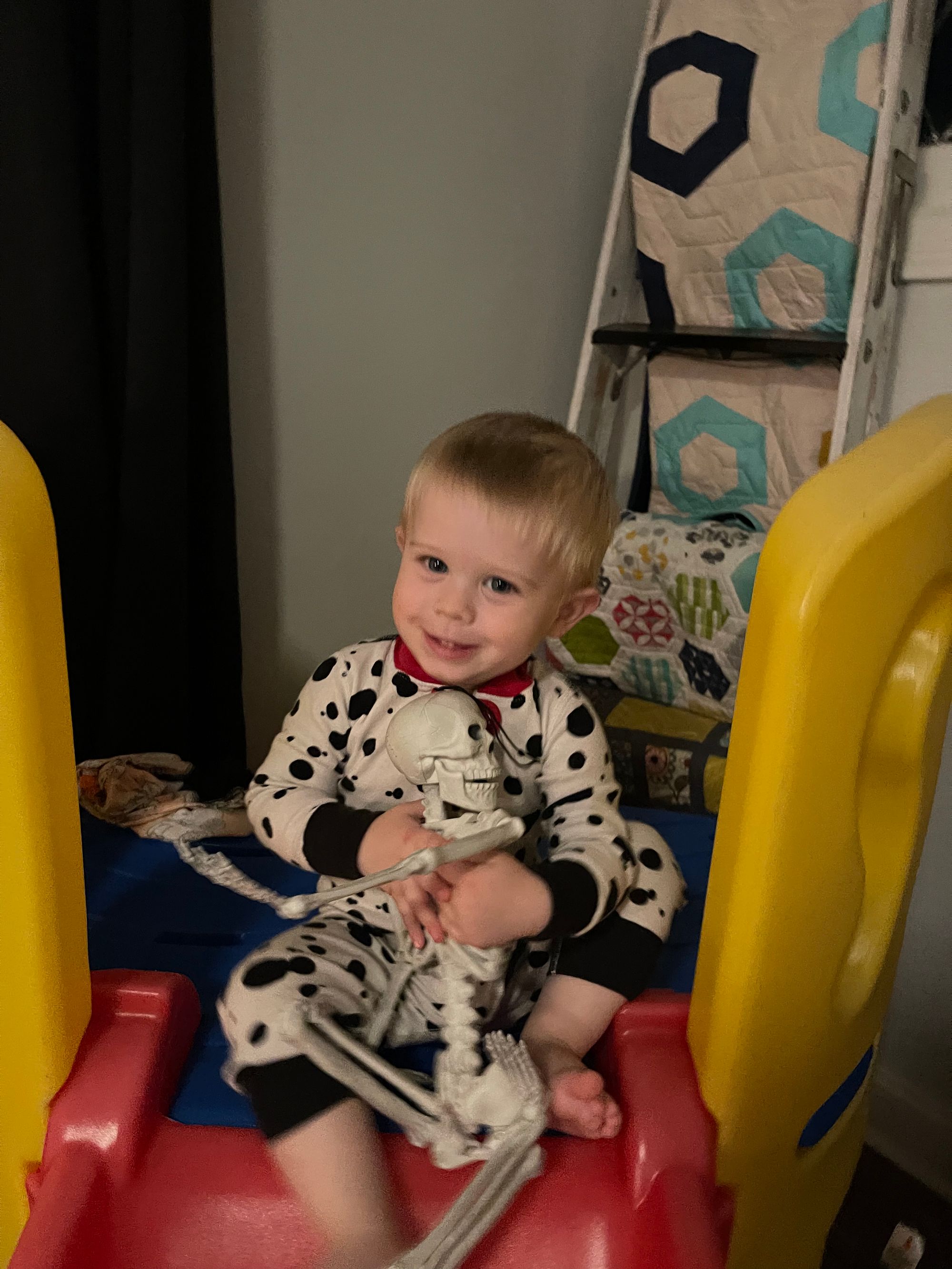 Heidi gave Benson a skeleton to take home (his favorite thing lately) and he has taken him everywhere we go!