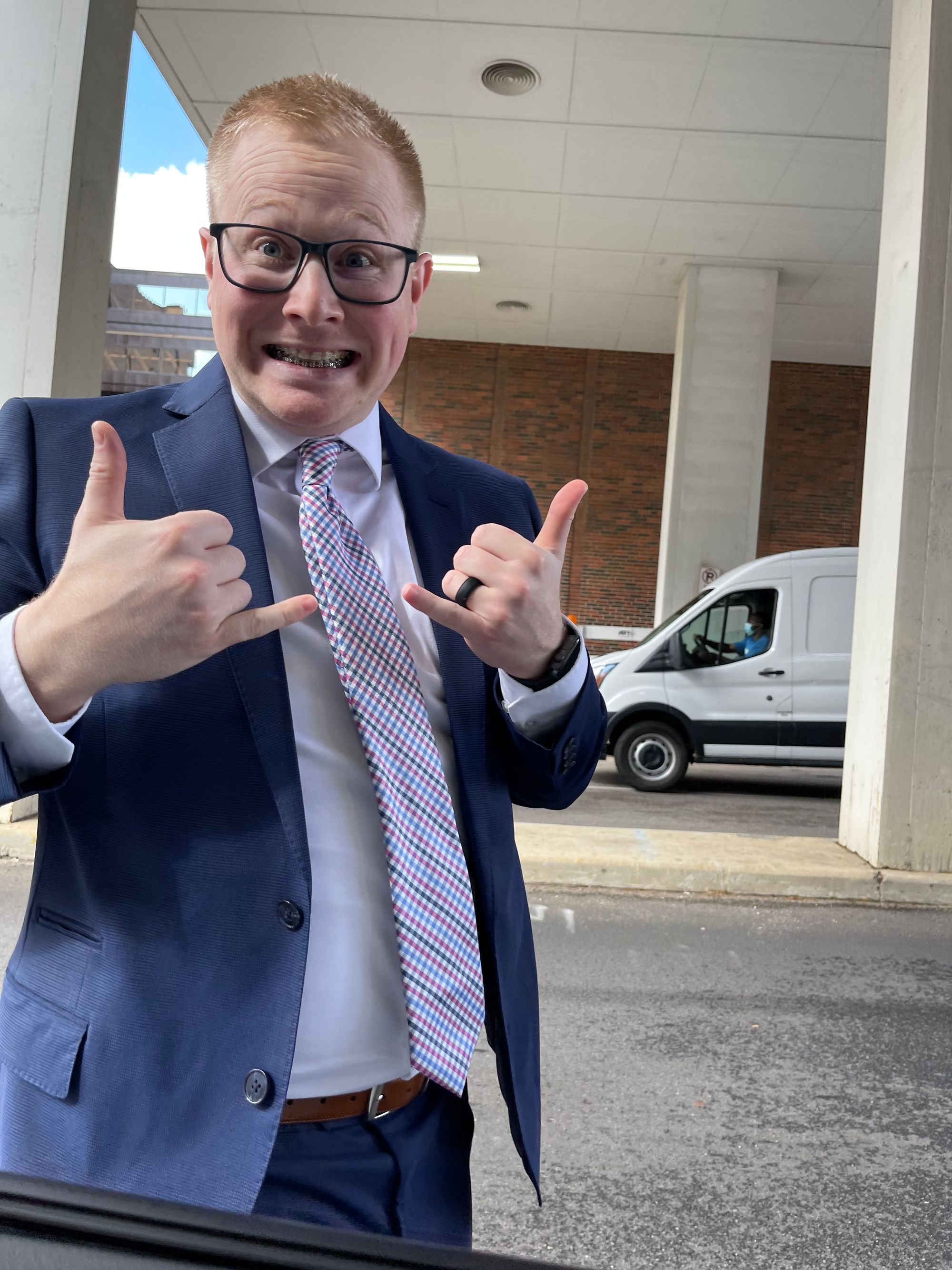 We got Jim N Nicks again for lunch and got Logan ready. We drove a few blocks and dropped Log off, came back to the hotel to relax. A few hours later Log was done and we walked down to meet him. Interview went great! We are so glad we could come and support him.