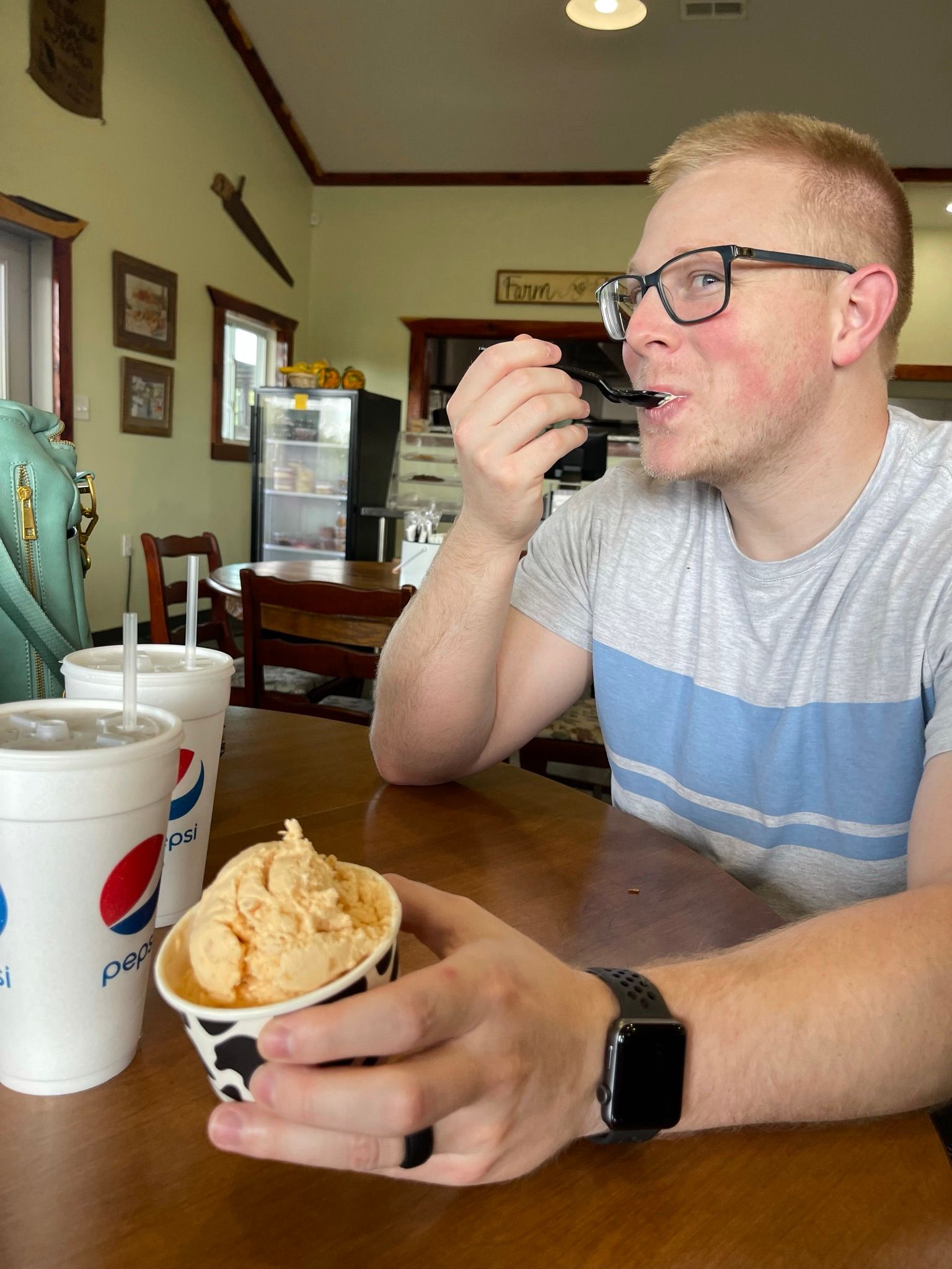 A few hours later they woke up and we were ready for the next break. Lizzie and Josh spent the summer in Huntsville, Alabama and so they had given us some recommendations. It's about an hour and a half outside of Birmingham. I saw a billboard for a Peach Farm right off the freeway, so we quickly exited and found the cutest little farm! We had a great lunch + their peach ice cream was amazing!!!