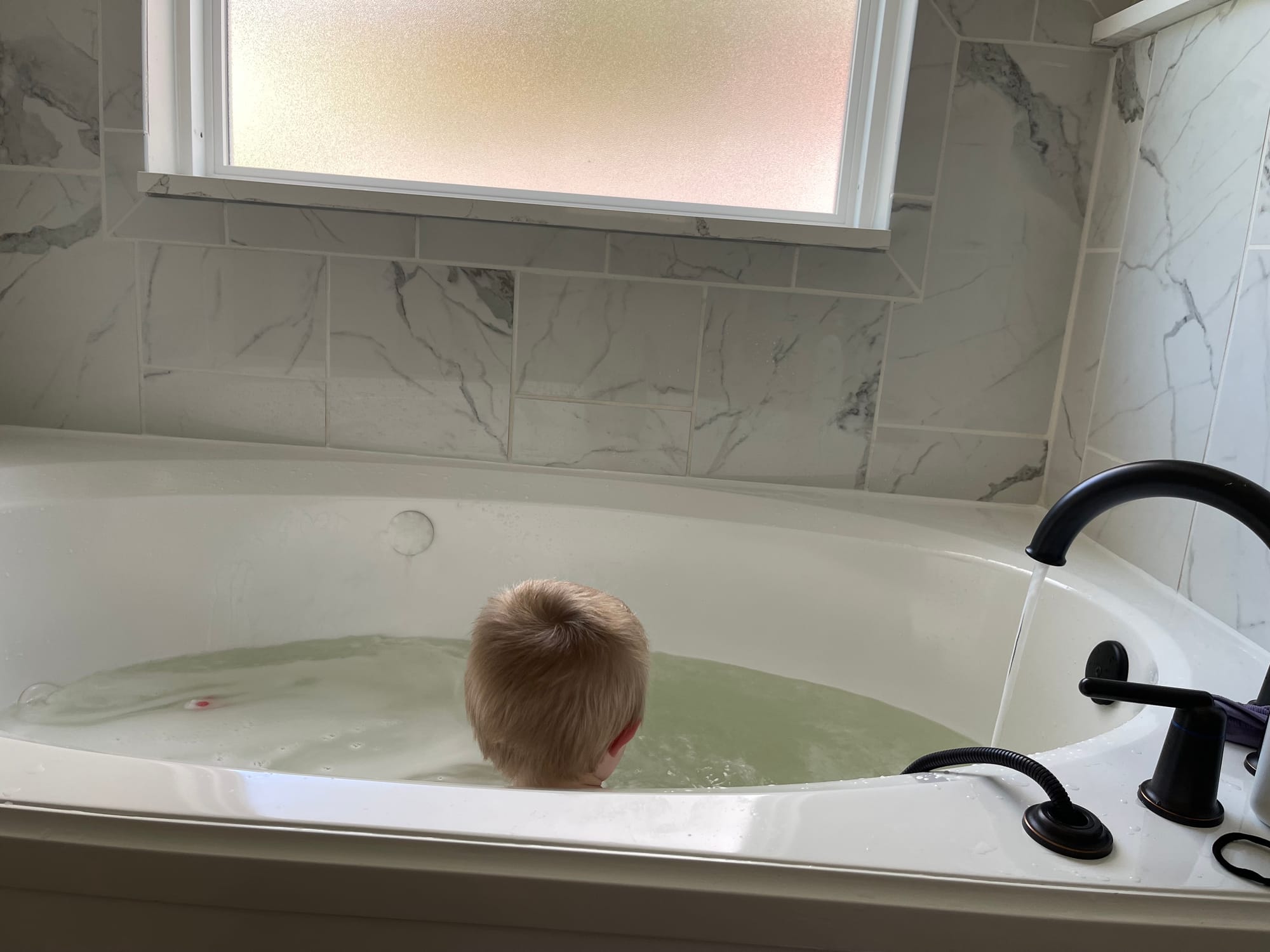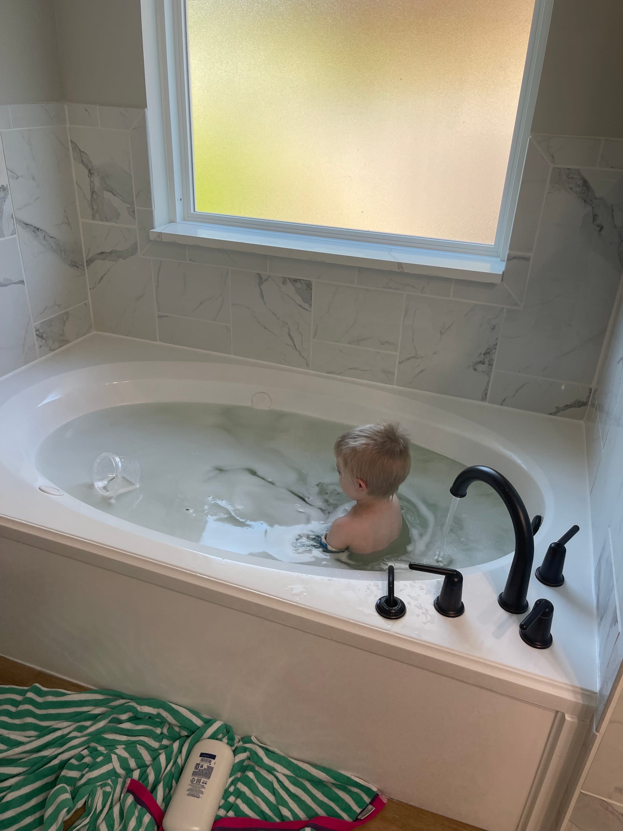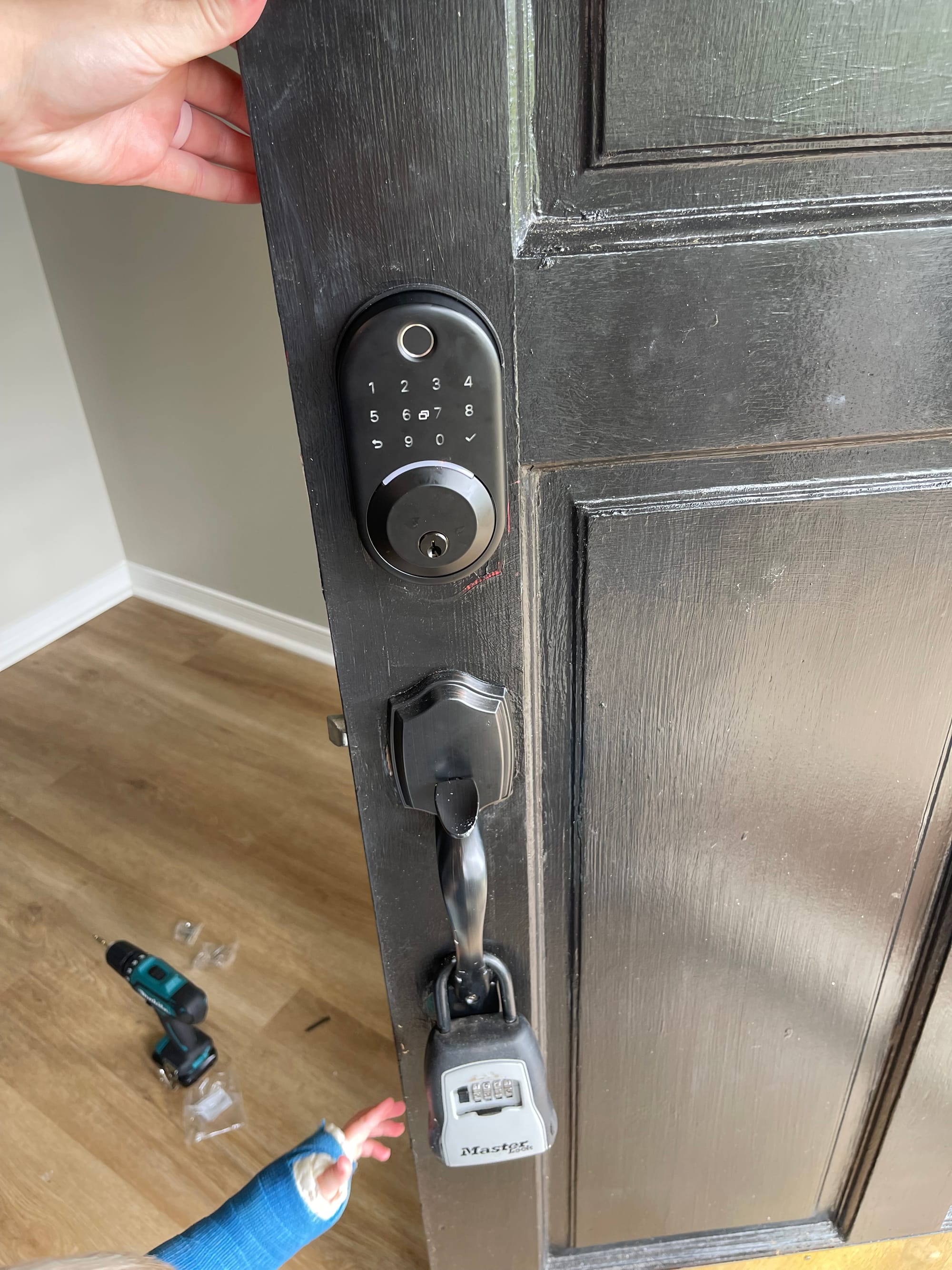 We woke up rather early because we have no blackout curtains. :) I worked on installing a new deadbolt with a keypad and thankfully around 9:30 our water was turned back on!