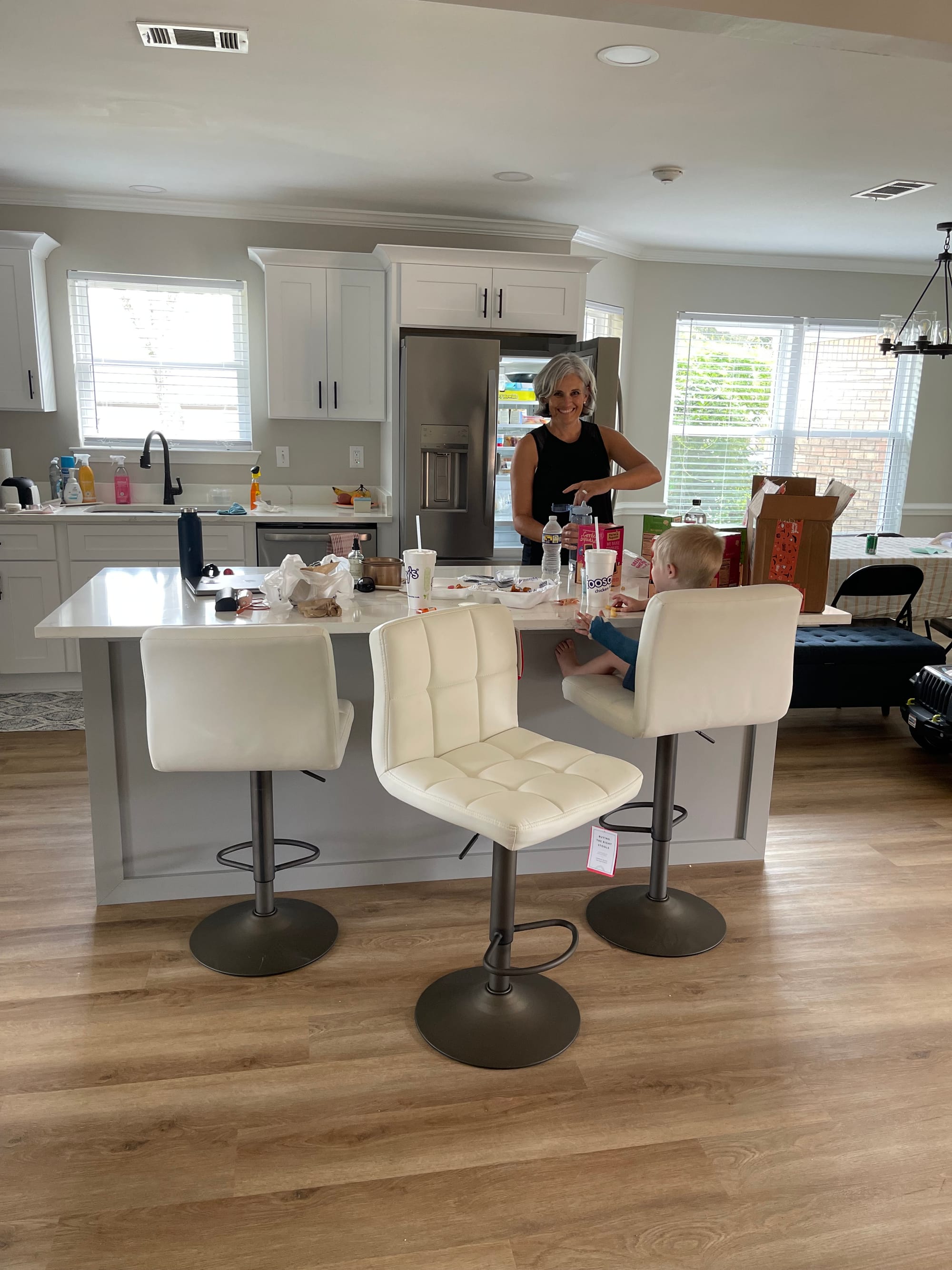 We made an outing looking for barstools. We went to a very sketchy place and bought some, only to get home and they were too tall. Of course! We had bought one from TJ Maxx earlier in the day and it was such a good fit. I went back and bought the other two!