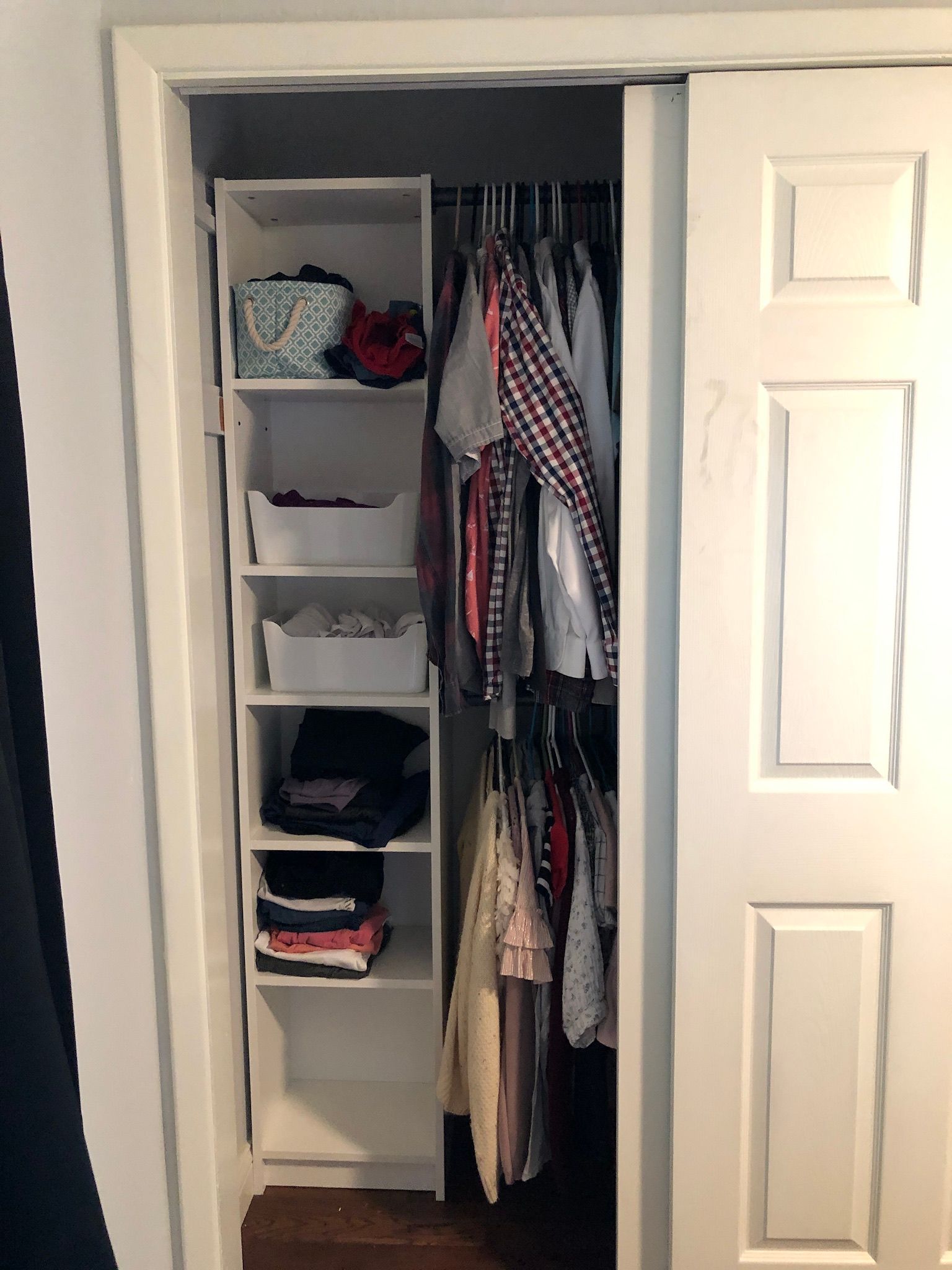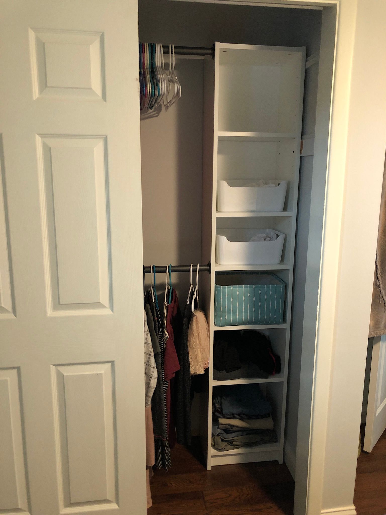 May 24 - We install a custom closet from Ikea! It's a DIY with 2 Billie bookshelves and two rods.. but it turns out awesome!!