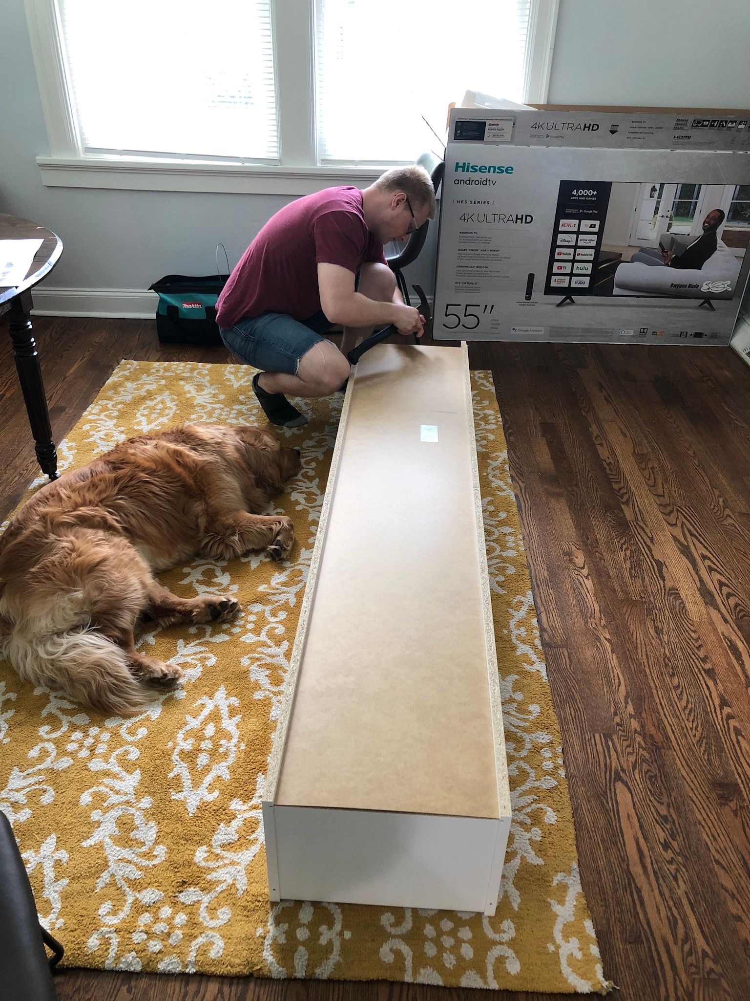 May 20 - We go to Costco for some more rubber mulch, it's on sale for $7.00 a bag, score!!! We also decide to buy a new 55" TV for our living room. We mounted our other TV in our room. These little adulting moments are fun. :)