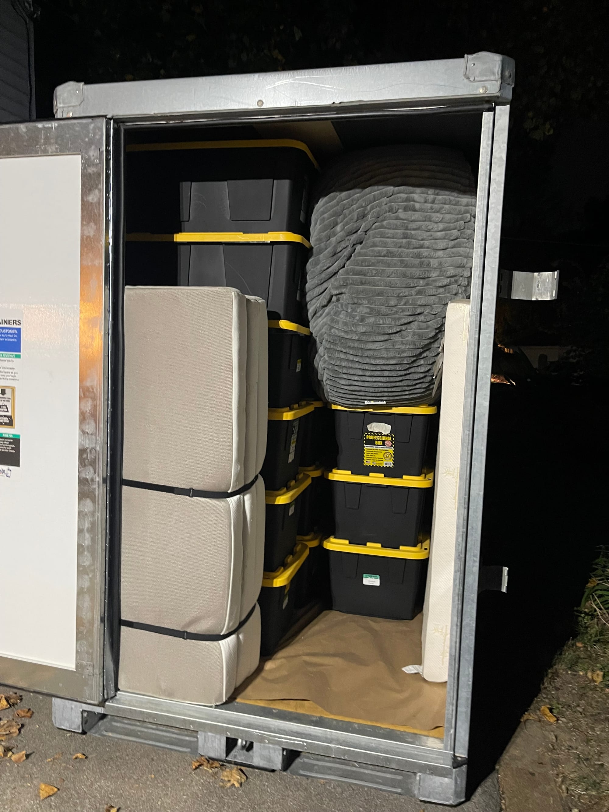 We’ve started planning our upcoming move. Logistically, it’s a little tricky! Logan is officially done Dec 14, but we will have house long before that. We’ve looked at all sorts of options for moving and no matter how we dice it, it’s quite expensive. I found a great moving company, Murphy Family Moving. We scheduled them to come November 21st. In the meantime, we decided to get two UHaul Boxes and fill with things that could go now and get us by at the new house if we stay there. They were dropped off and we had 4 days to fill them up!