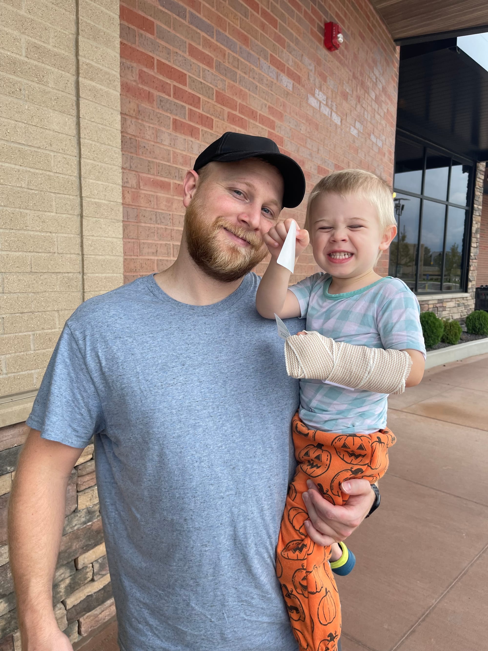 Ben fell and something about his wrist/arm seemed off. We waited about 2 hours one Sunday morning to make a decision what to do and ultimately went to urgent care. Sure enough! Broken. :( Buckle fractures on both the radius and Ulna. They threw a splint on and gave us a referral to ortho.