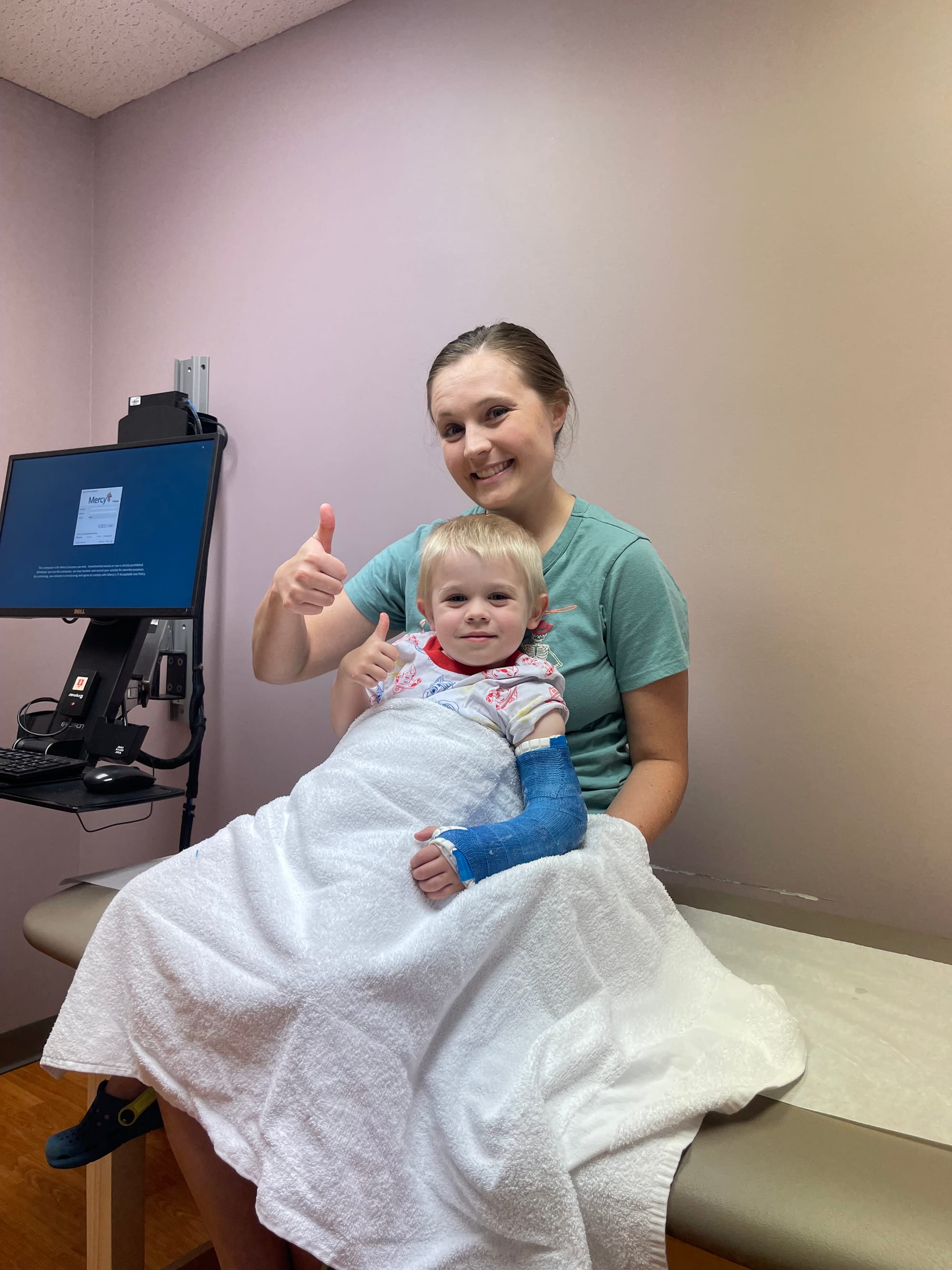 We met Logan at the hospital to get the final cast on. 3 weeks we will be back to get it off.