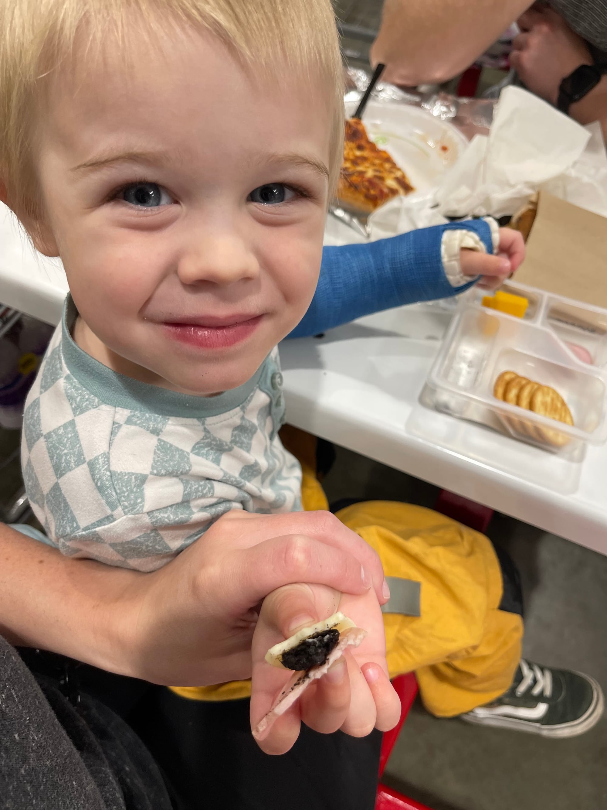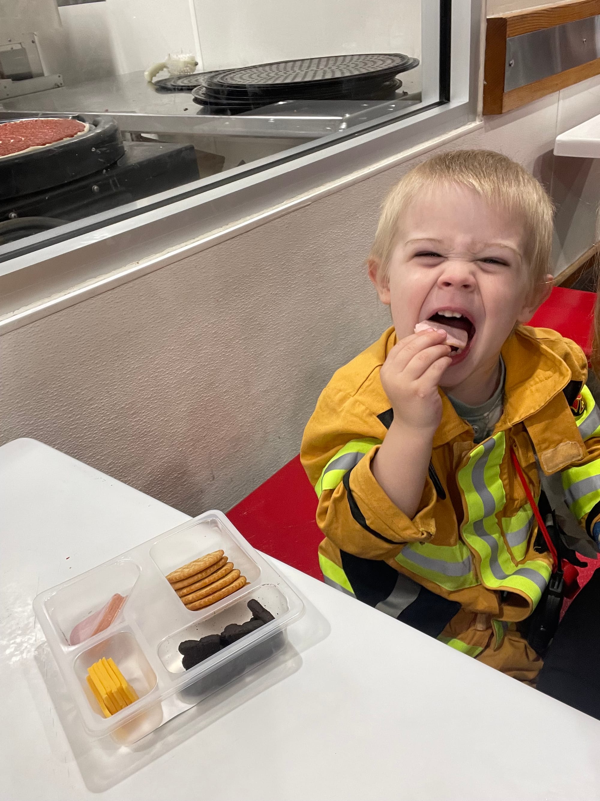 His auntie manny and Lizzie spoiled him with dinner and treats!