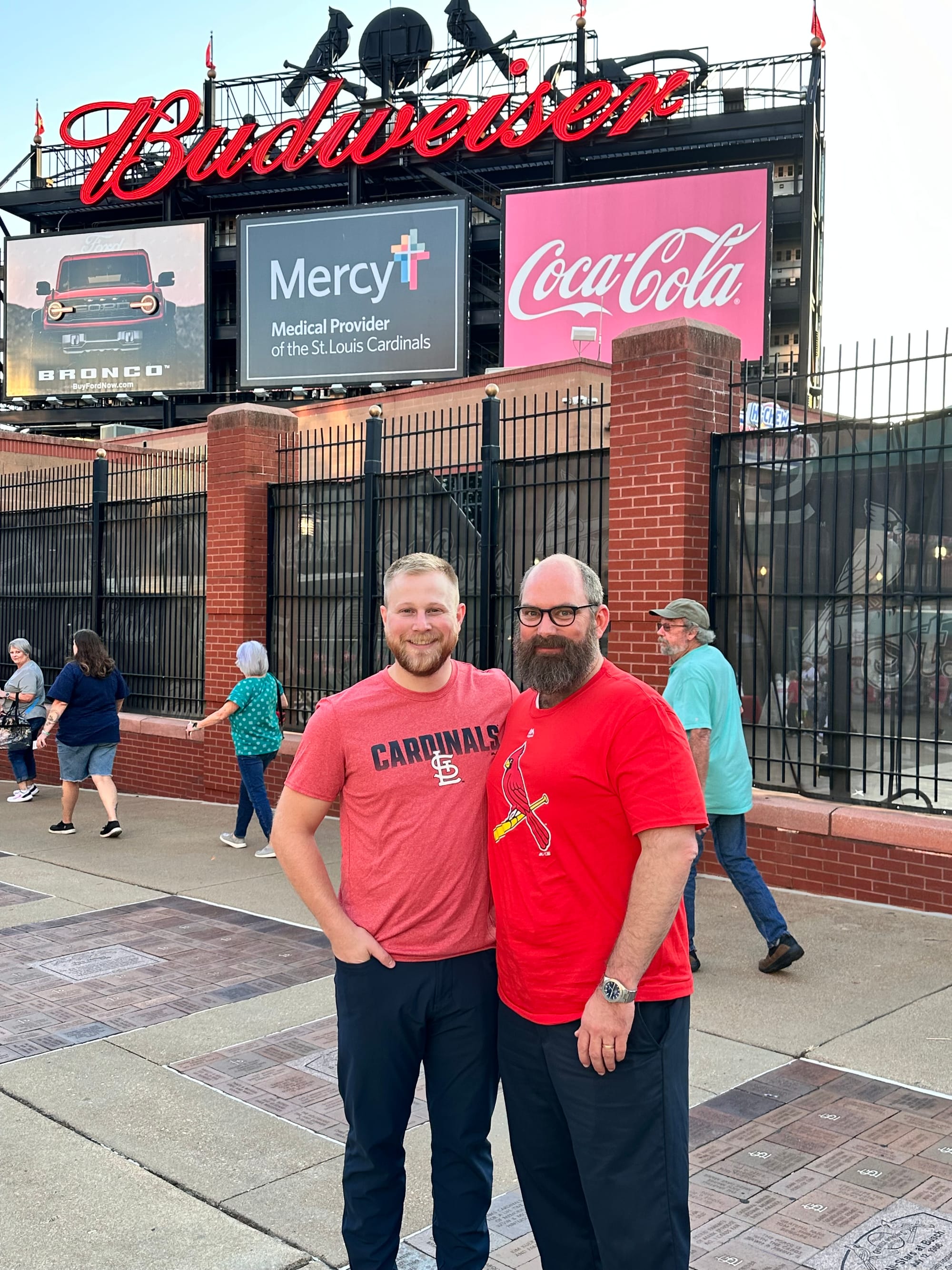 Shane came into town to speak at Logan’s OERF conference. They had a great weekend together and even sat in the green seats at a Card’s game!