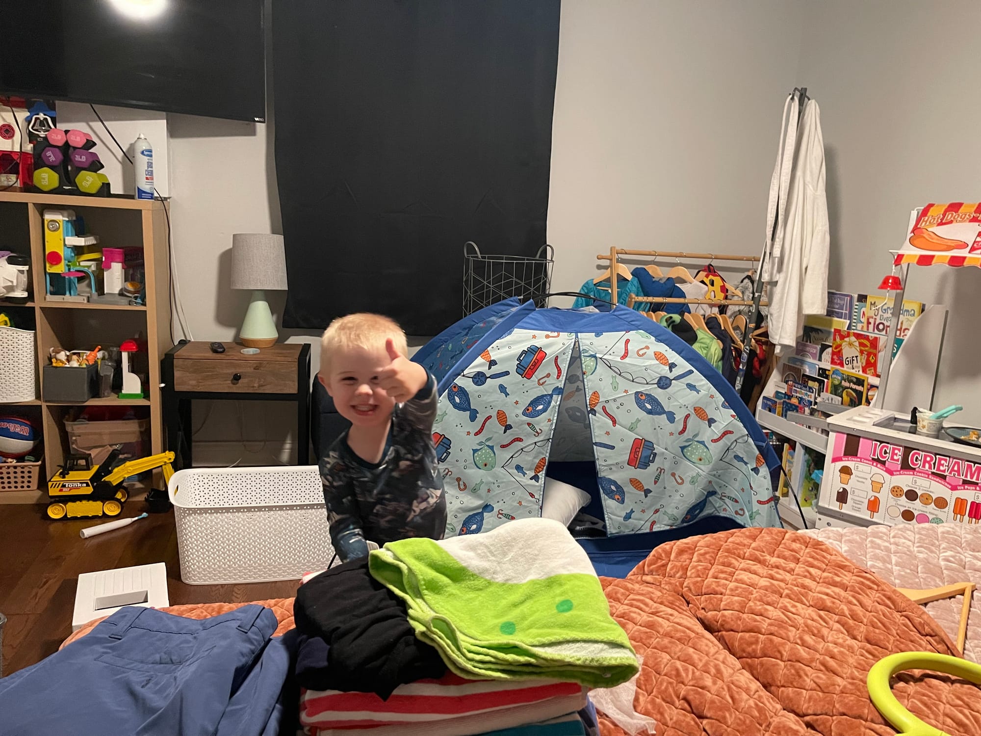 Ben wanted to sleep in his tent, we played around in it and even put it on our bed until he decided he didn’t want to really sleep in it.
