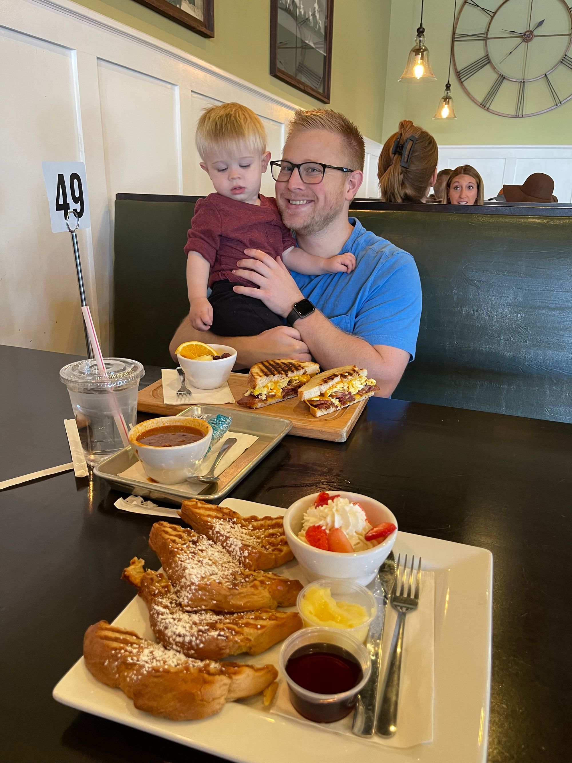 They had an event they were getting ready so it was slowing down our food. Benson was curious as always and we took turns exploring outside with him while we waited.